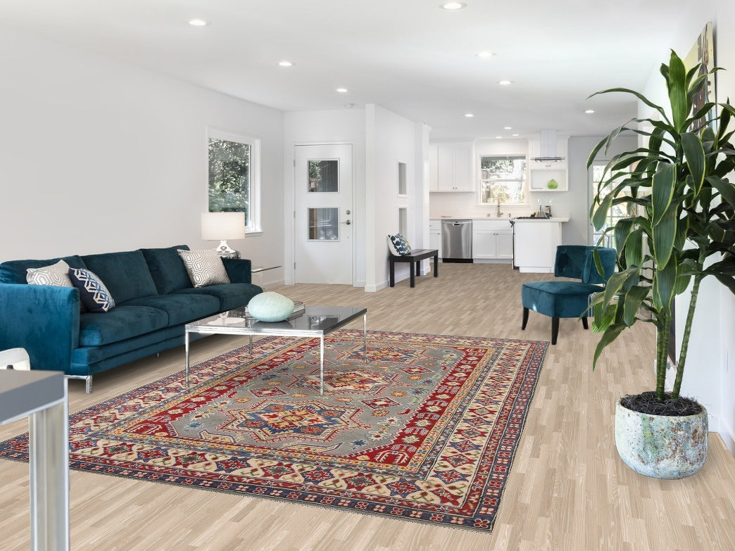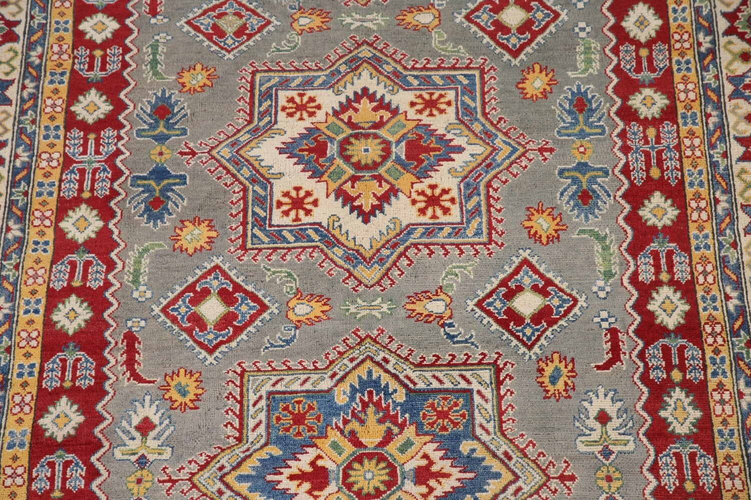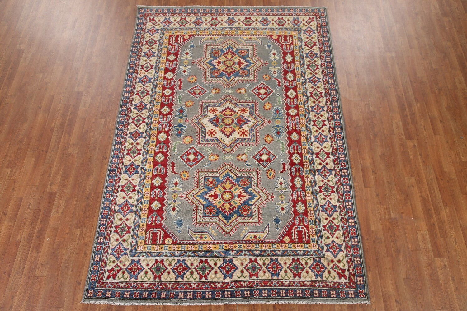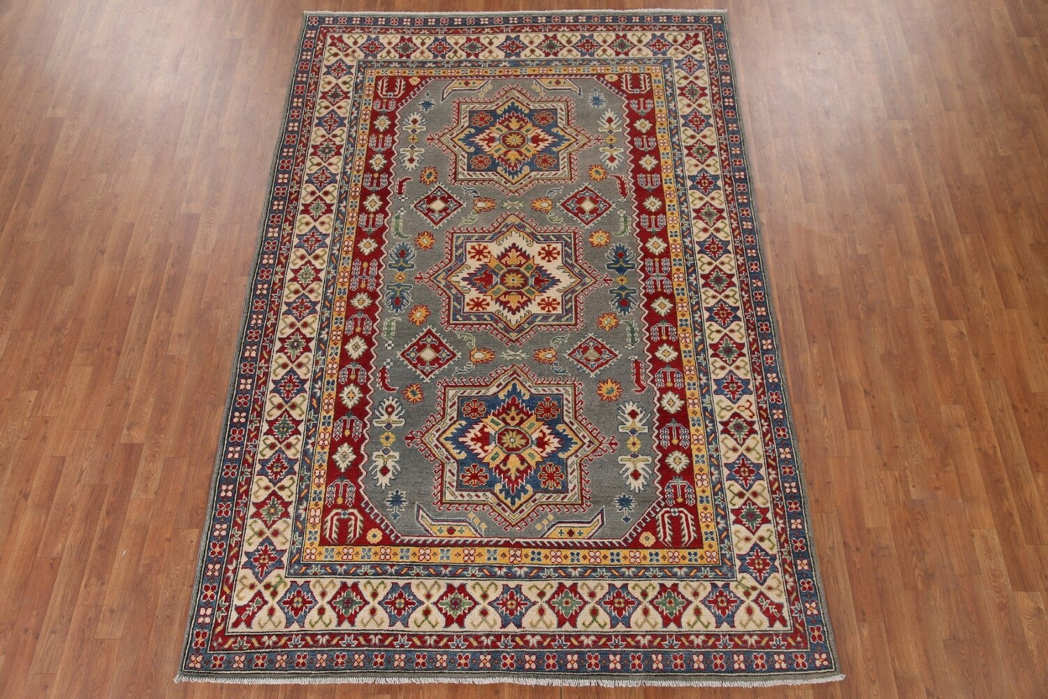 Gray Geometric Kazak Oriental Area Rug 7x10