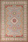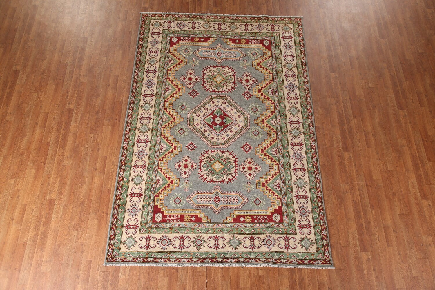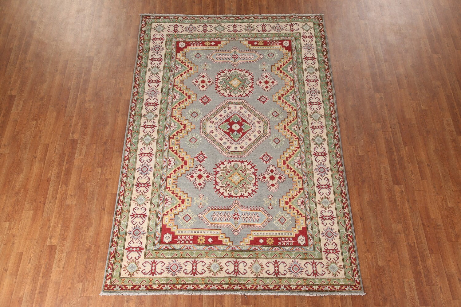 Gray Geometric Kazak Oriental Area Rug 7x10