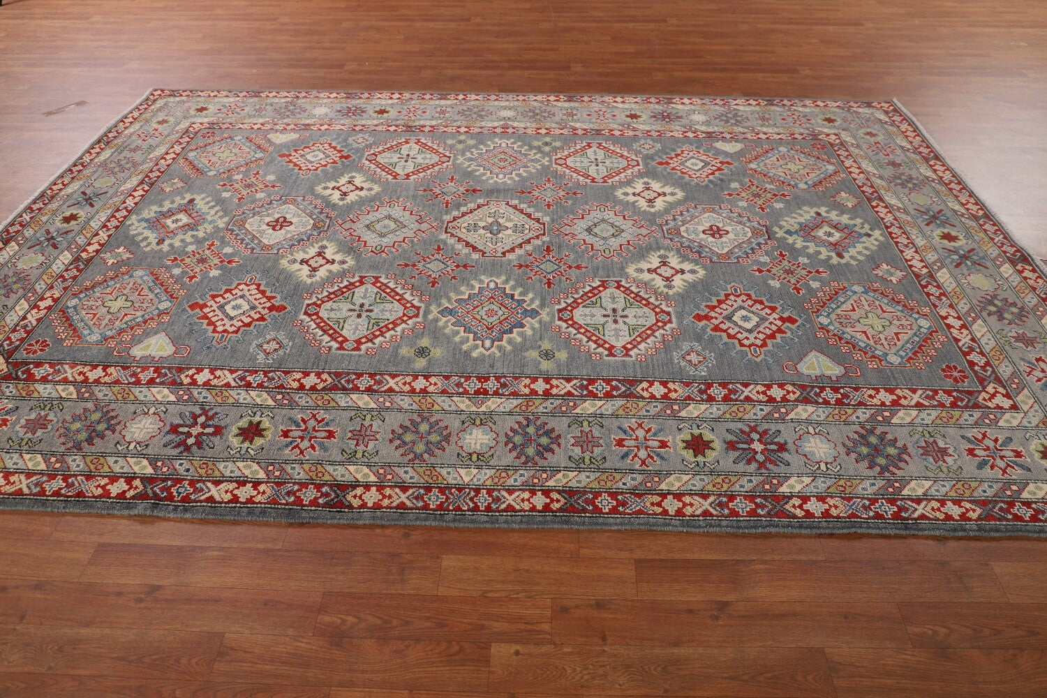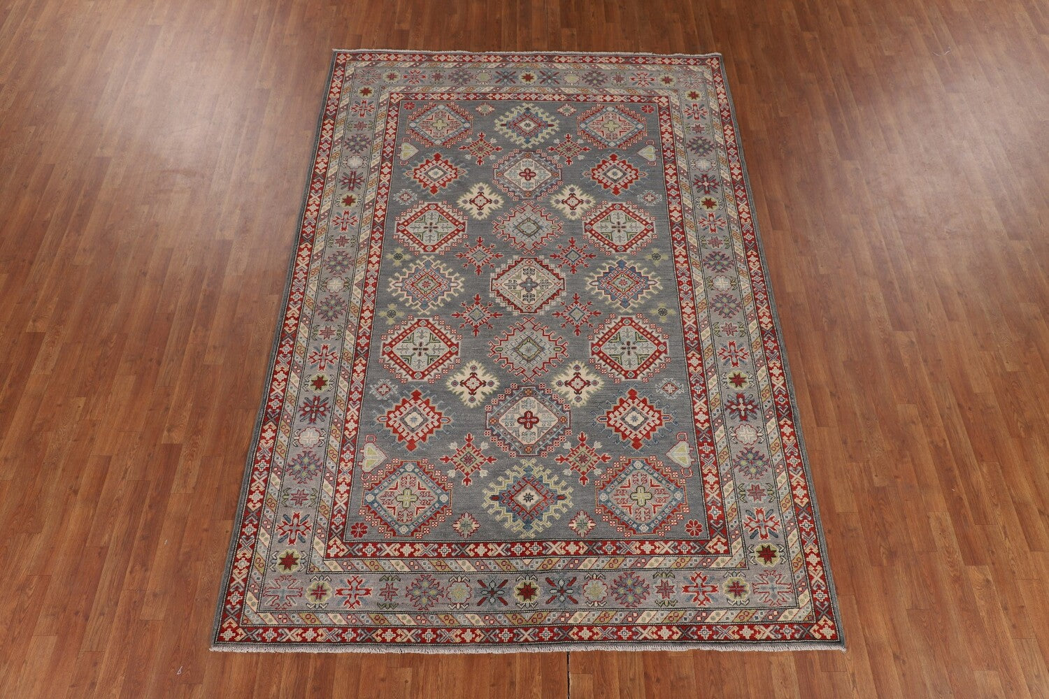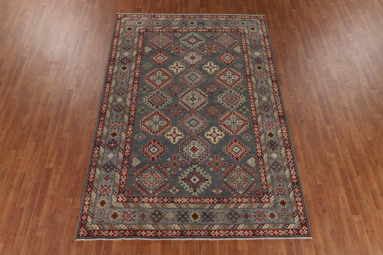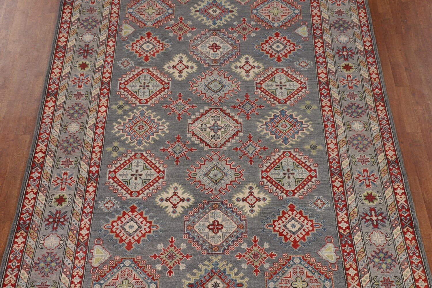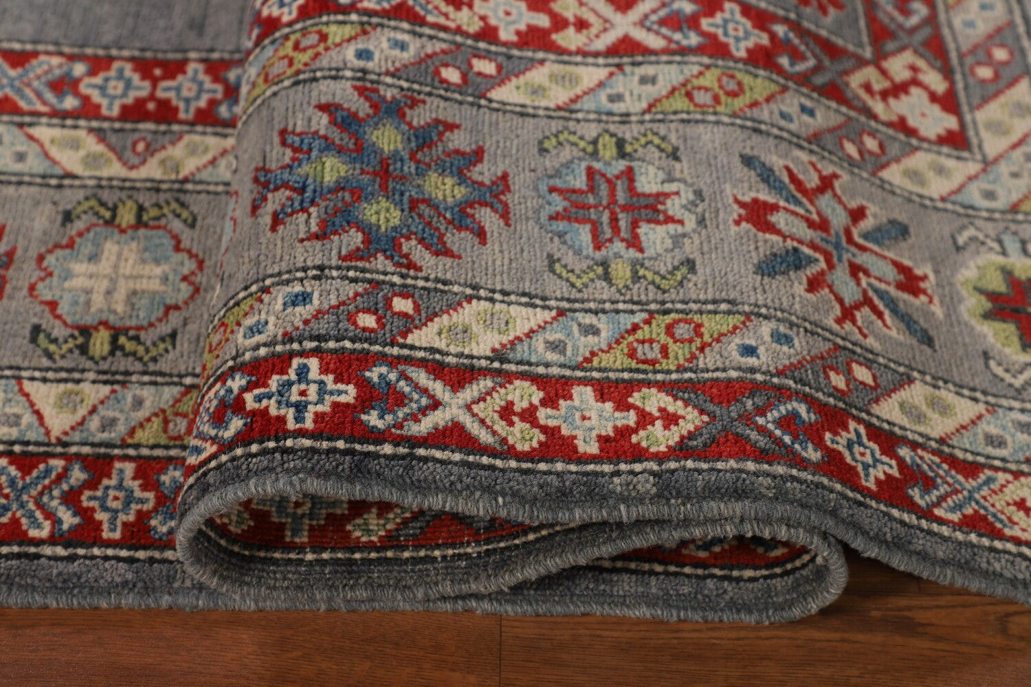 Gray Geometric Kazak Oriental Area Rug 7x10