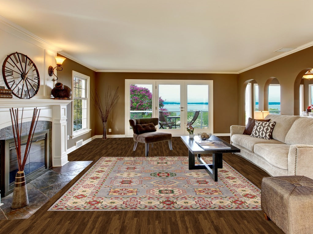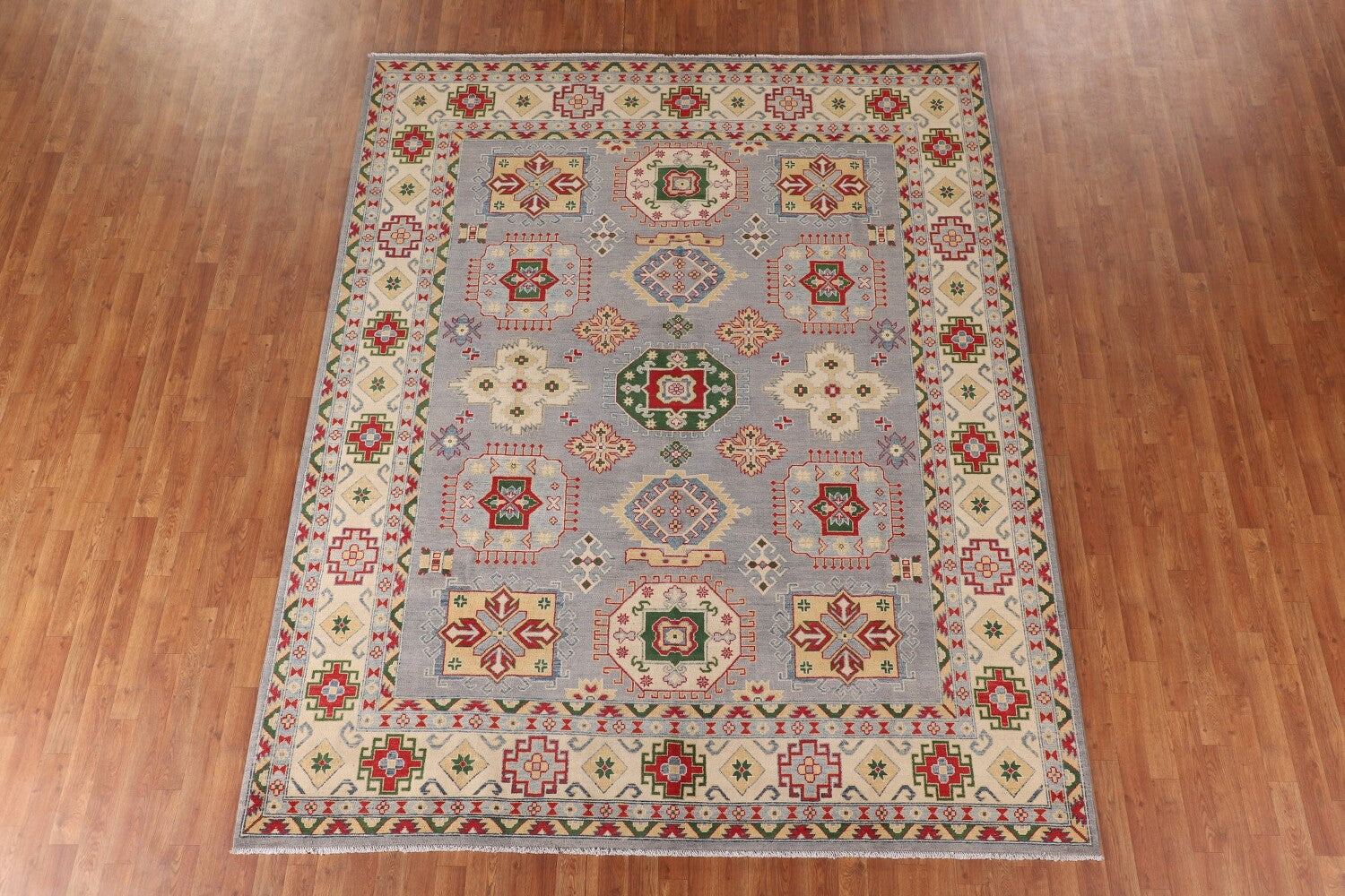 Gray Geometric Kazak Oriental Area Rug 8x10