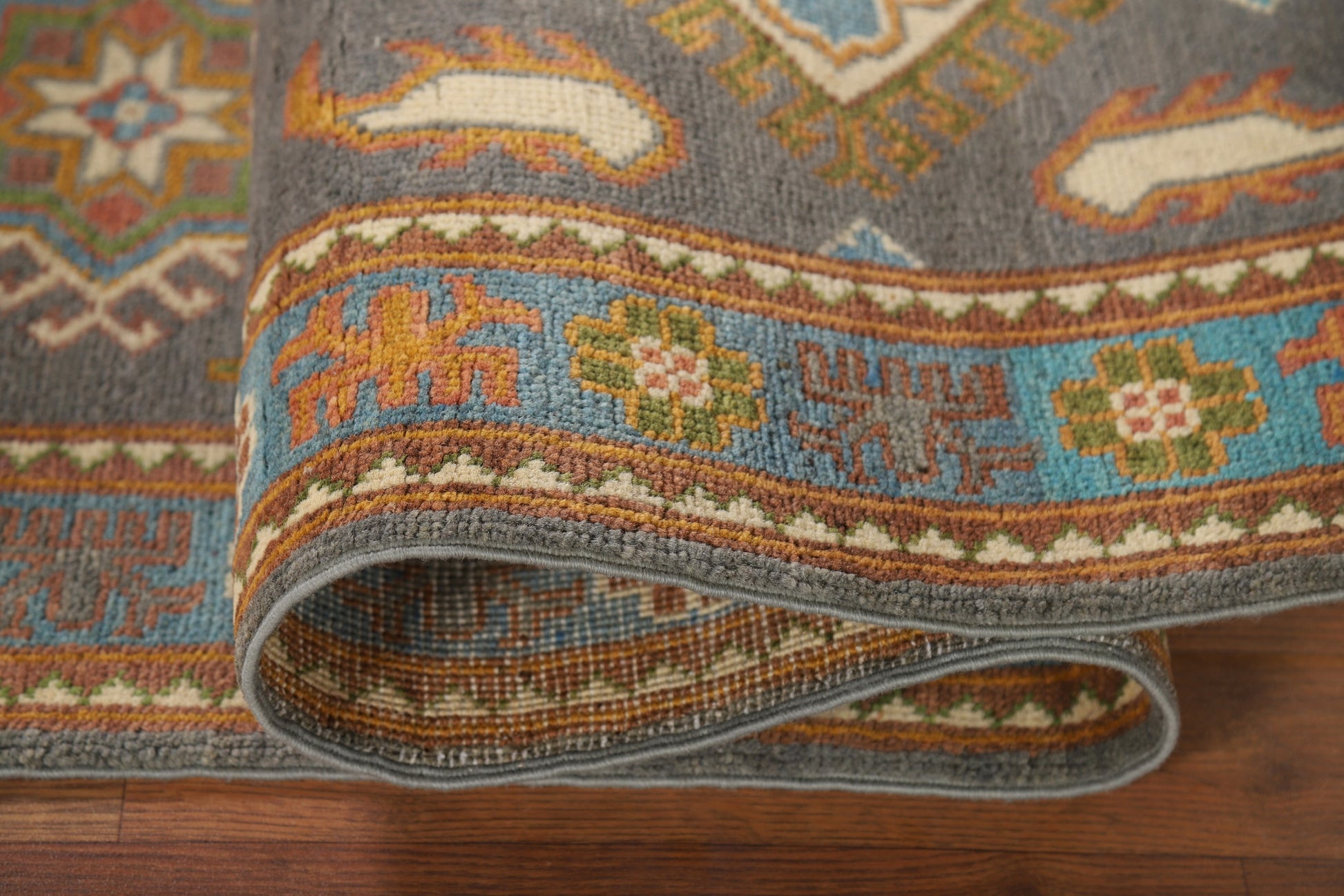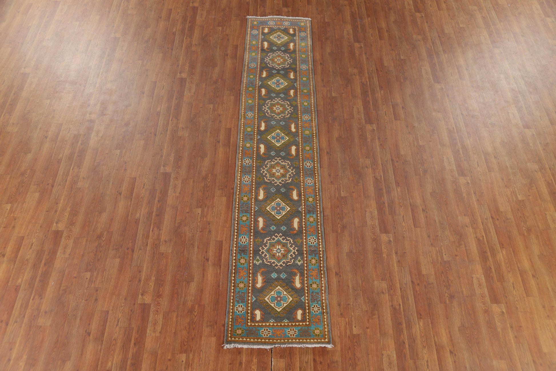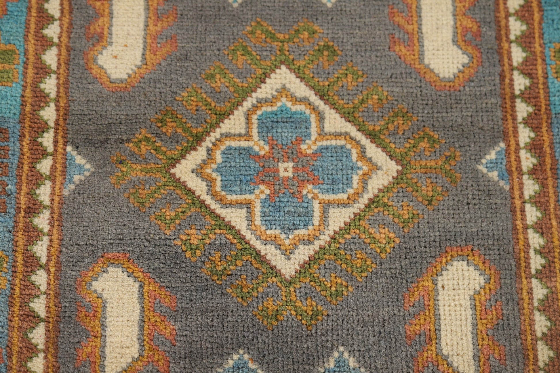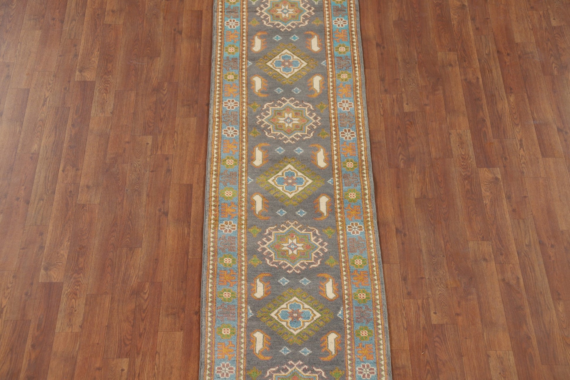 Gray Geometric Kazak Oriental Runner Rug 2x10