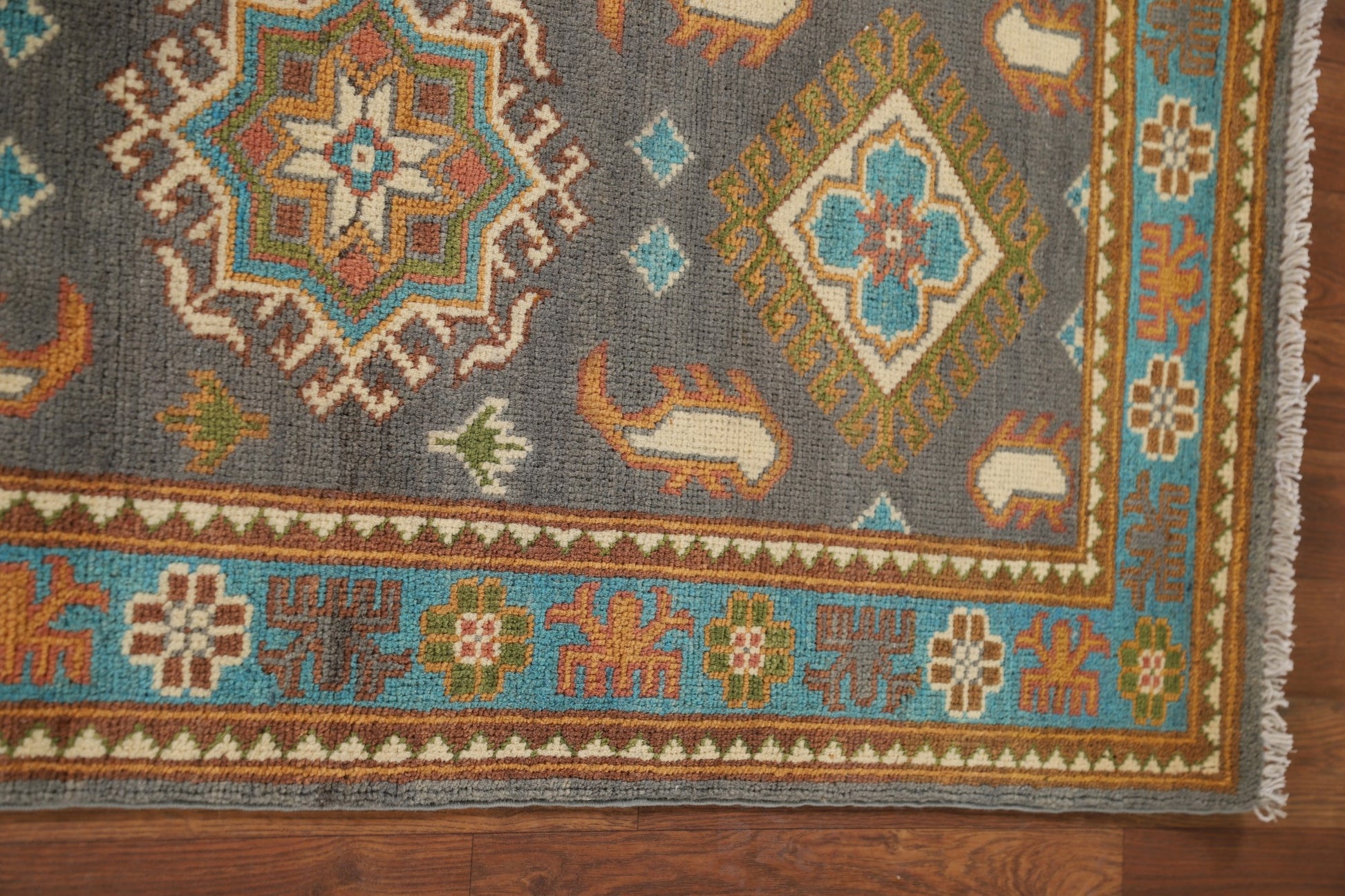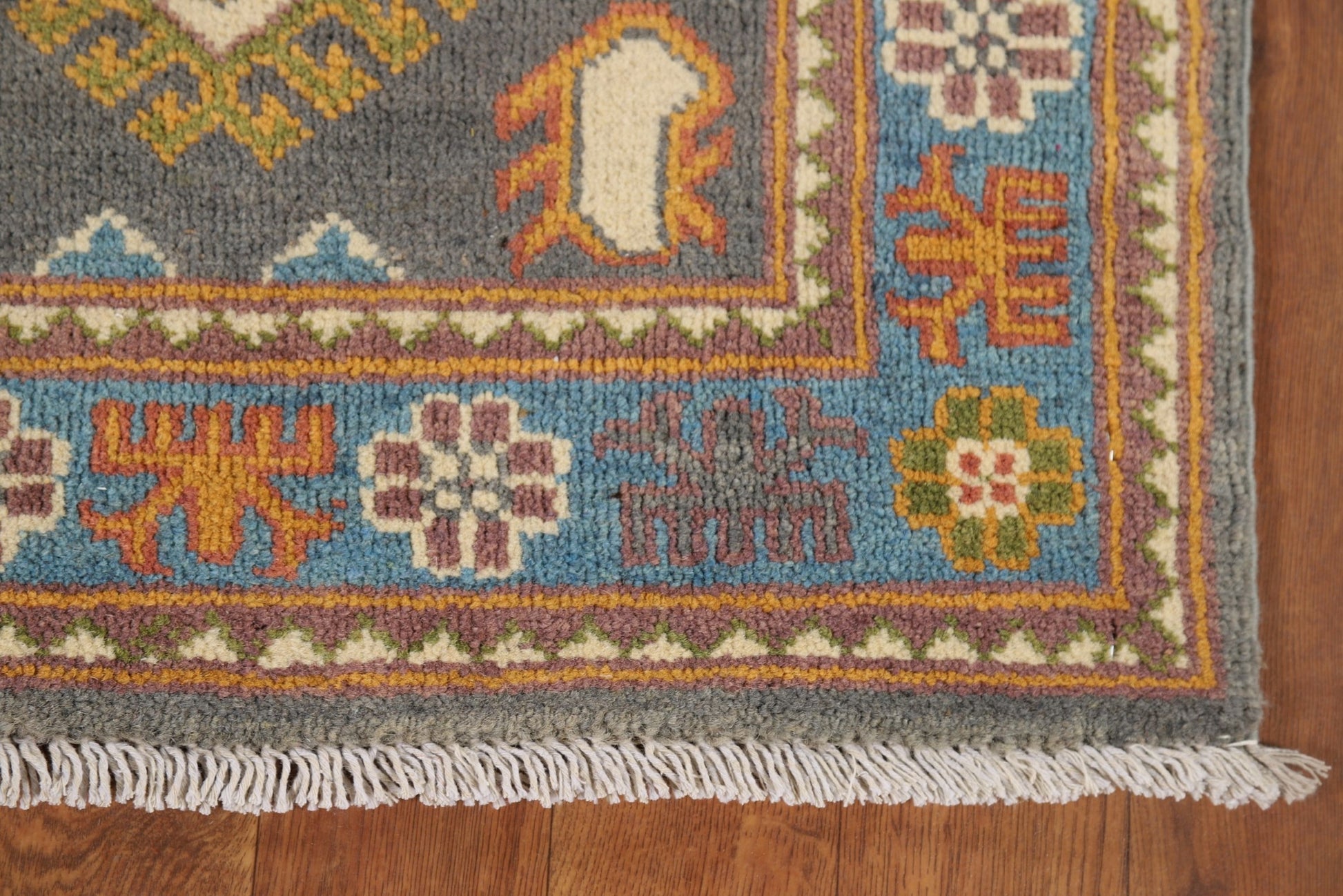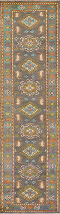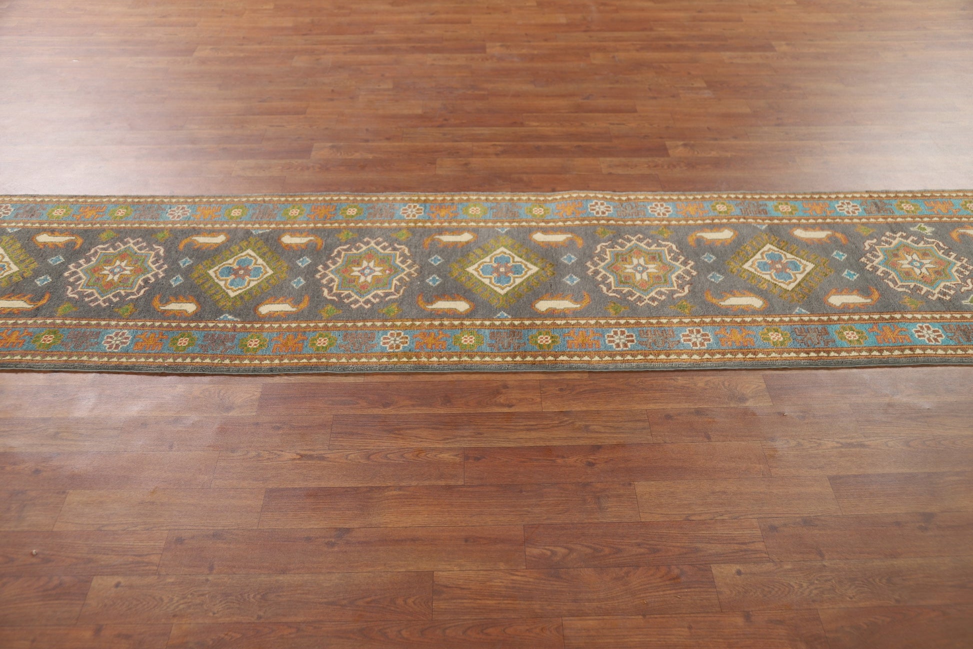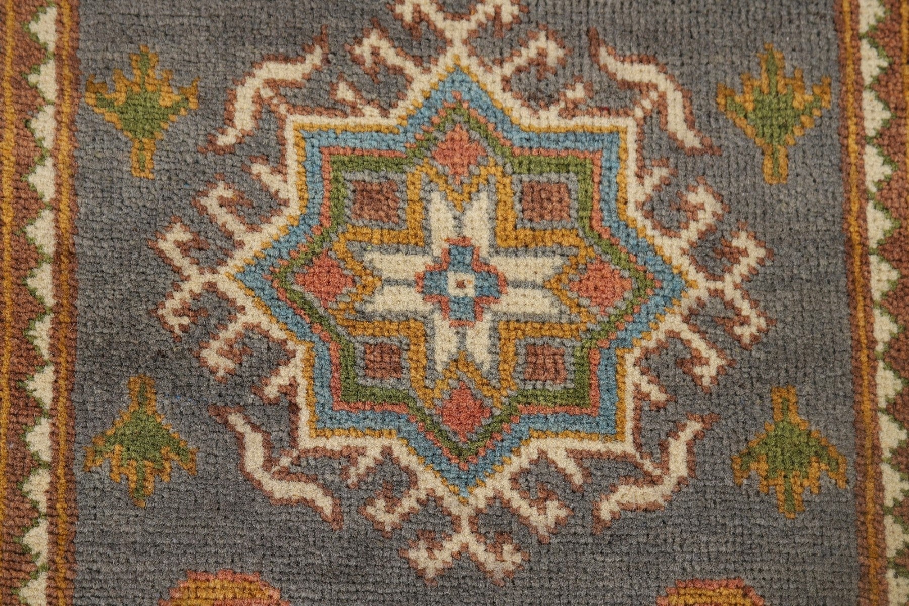 Gray Geometric Kazak Oriental Runner Rug 2x10