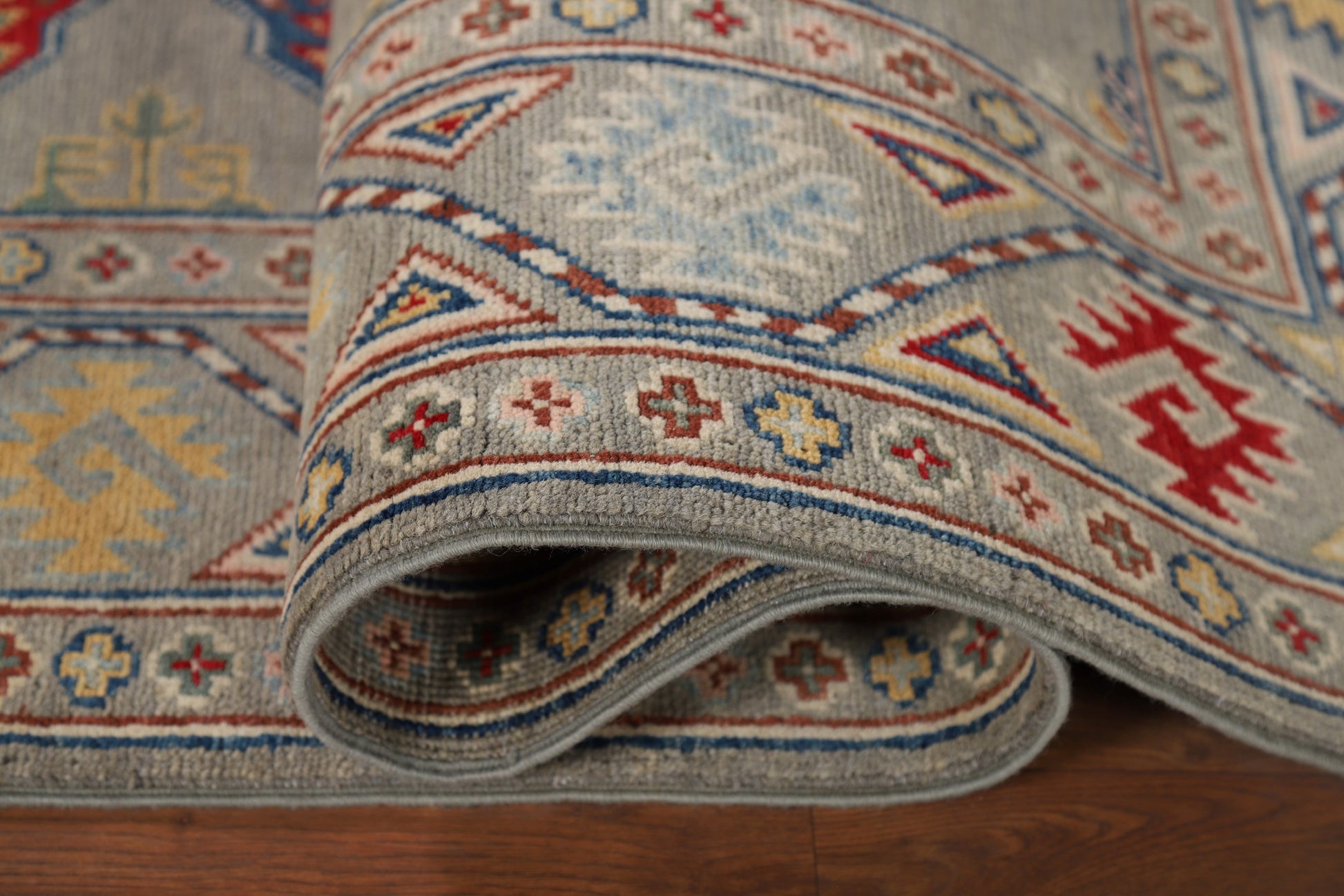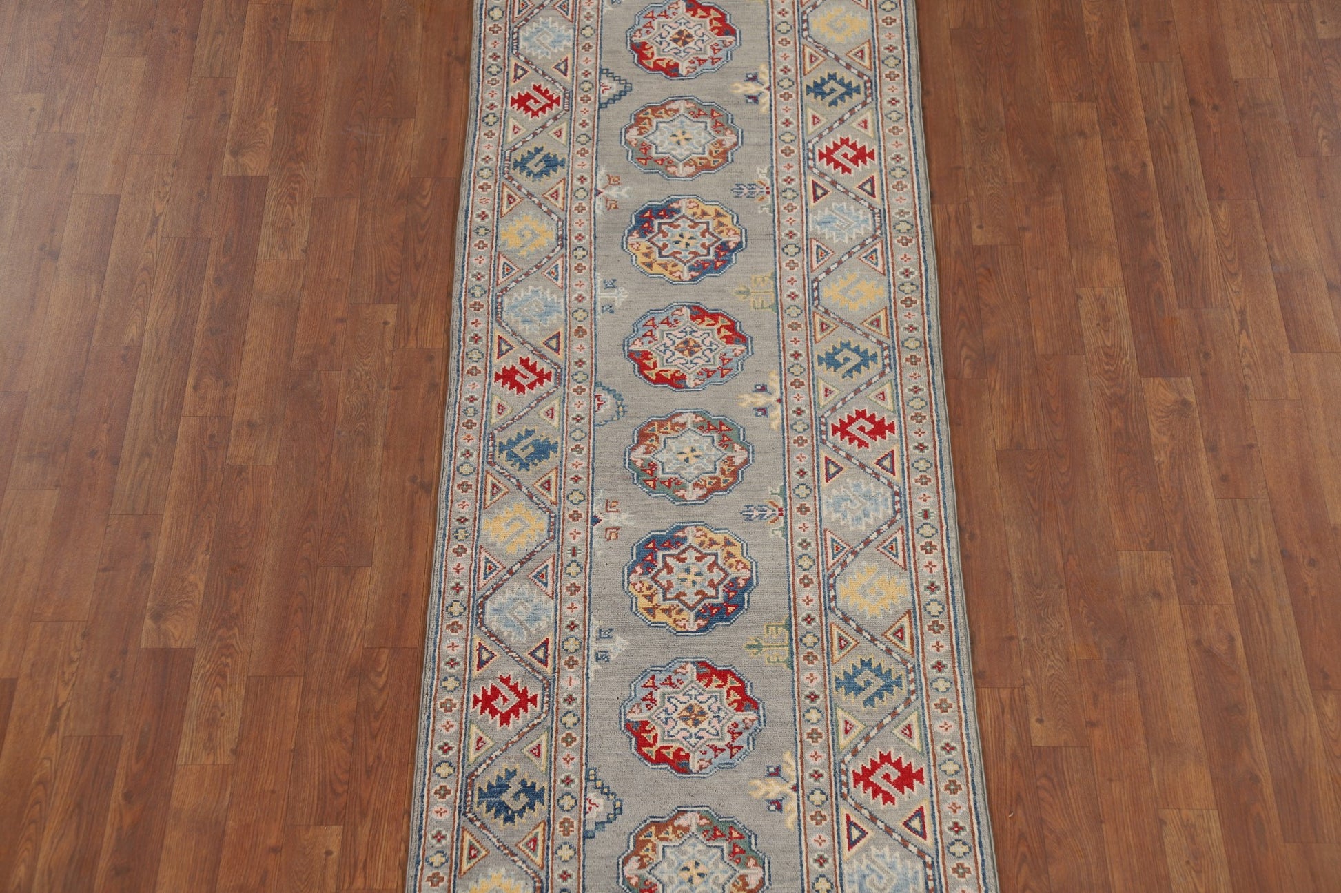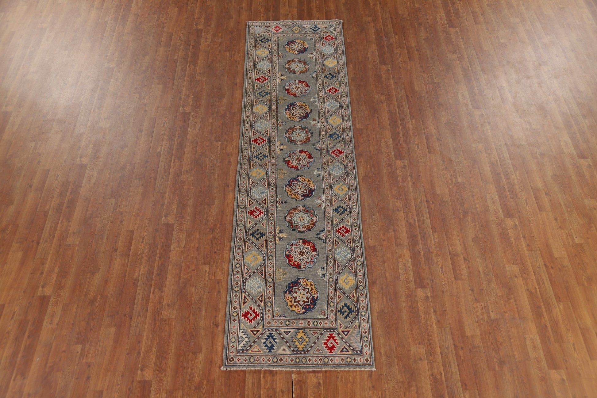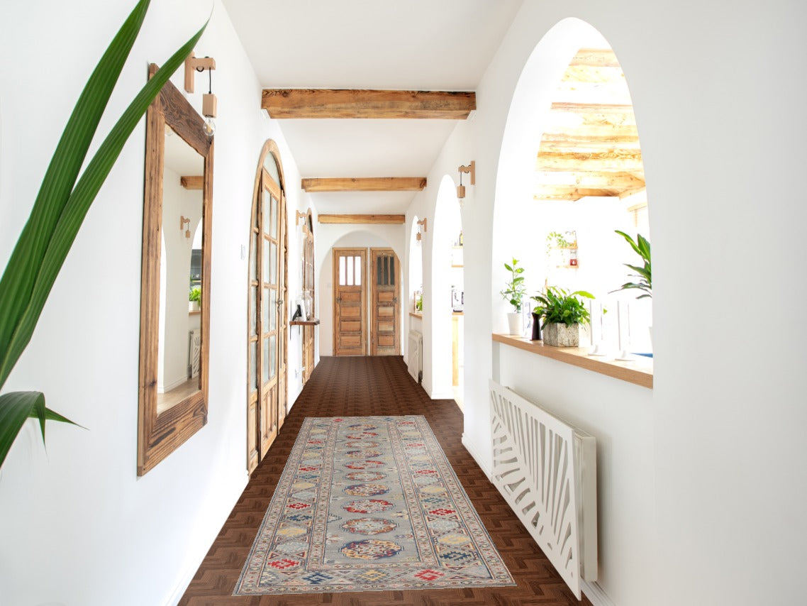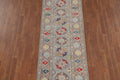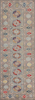 Gray Geometric Kazak Oriental Runner Rug 3x10