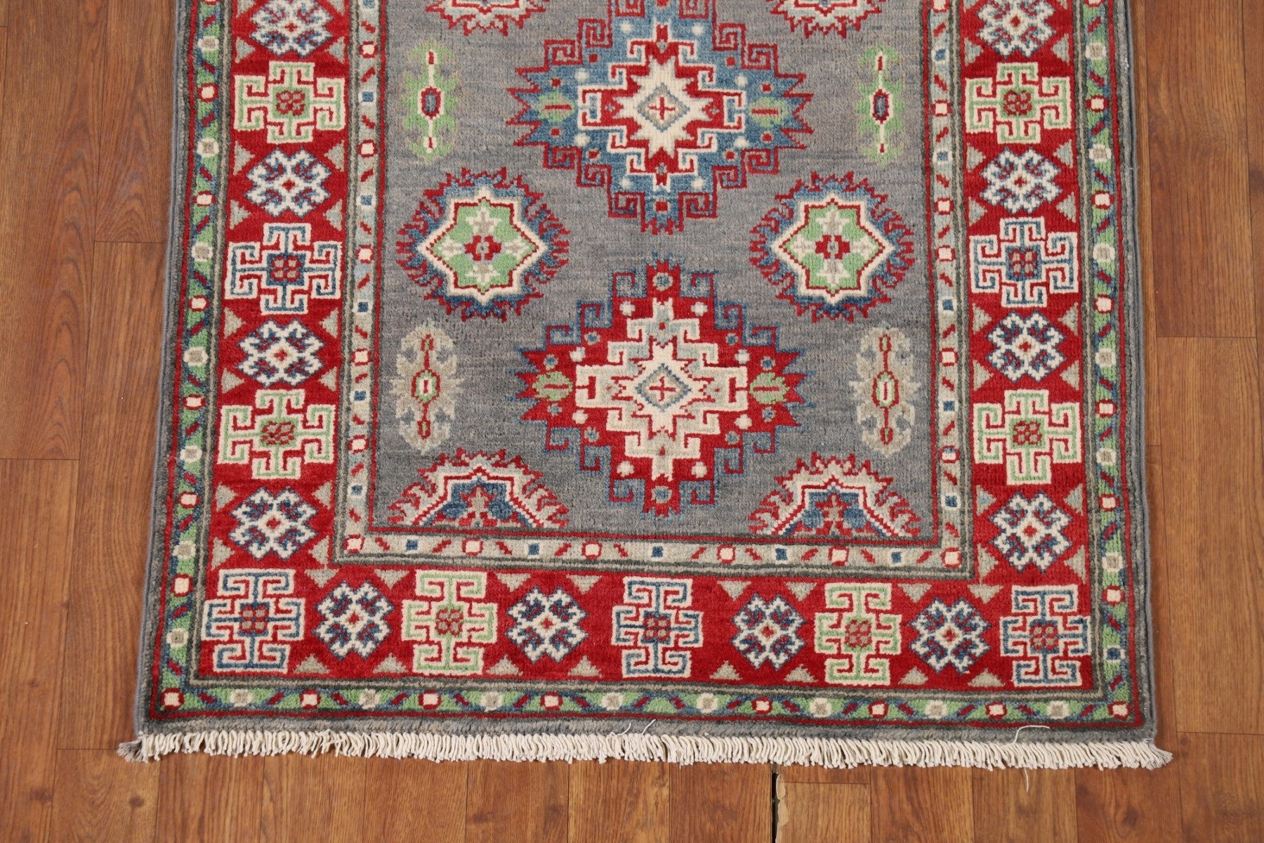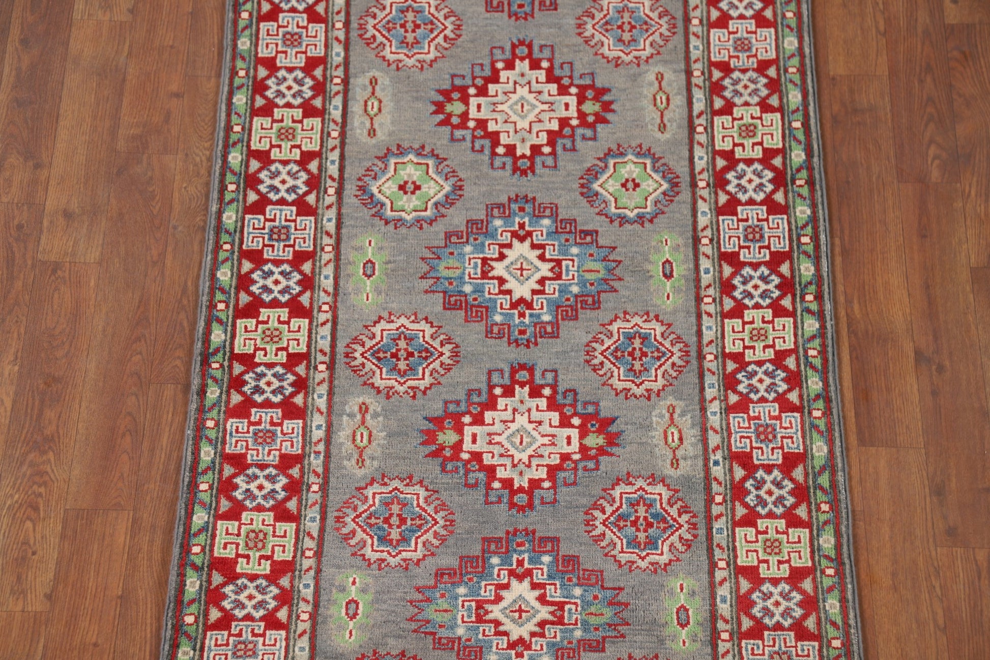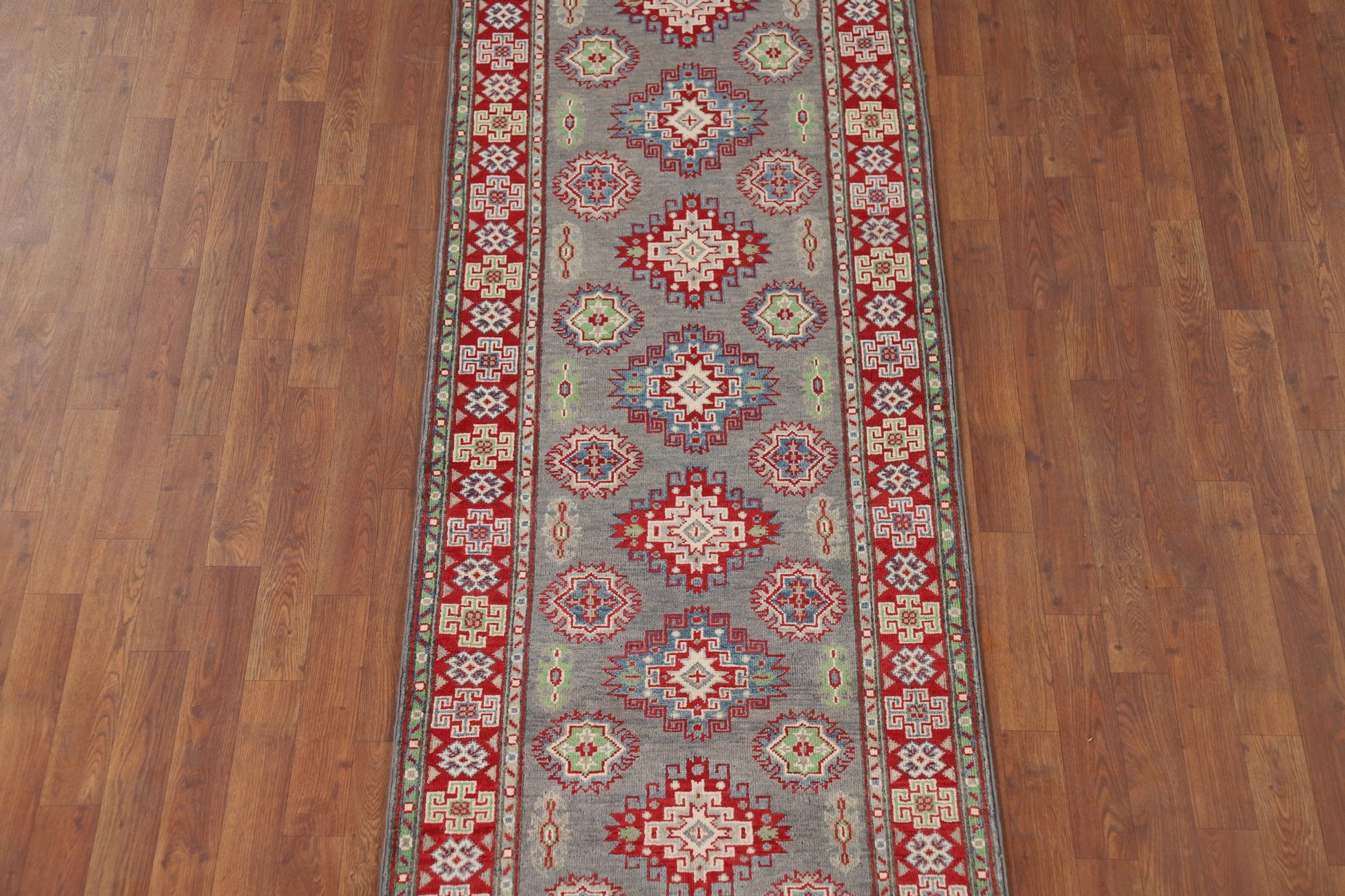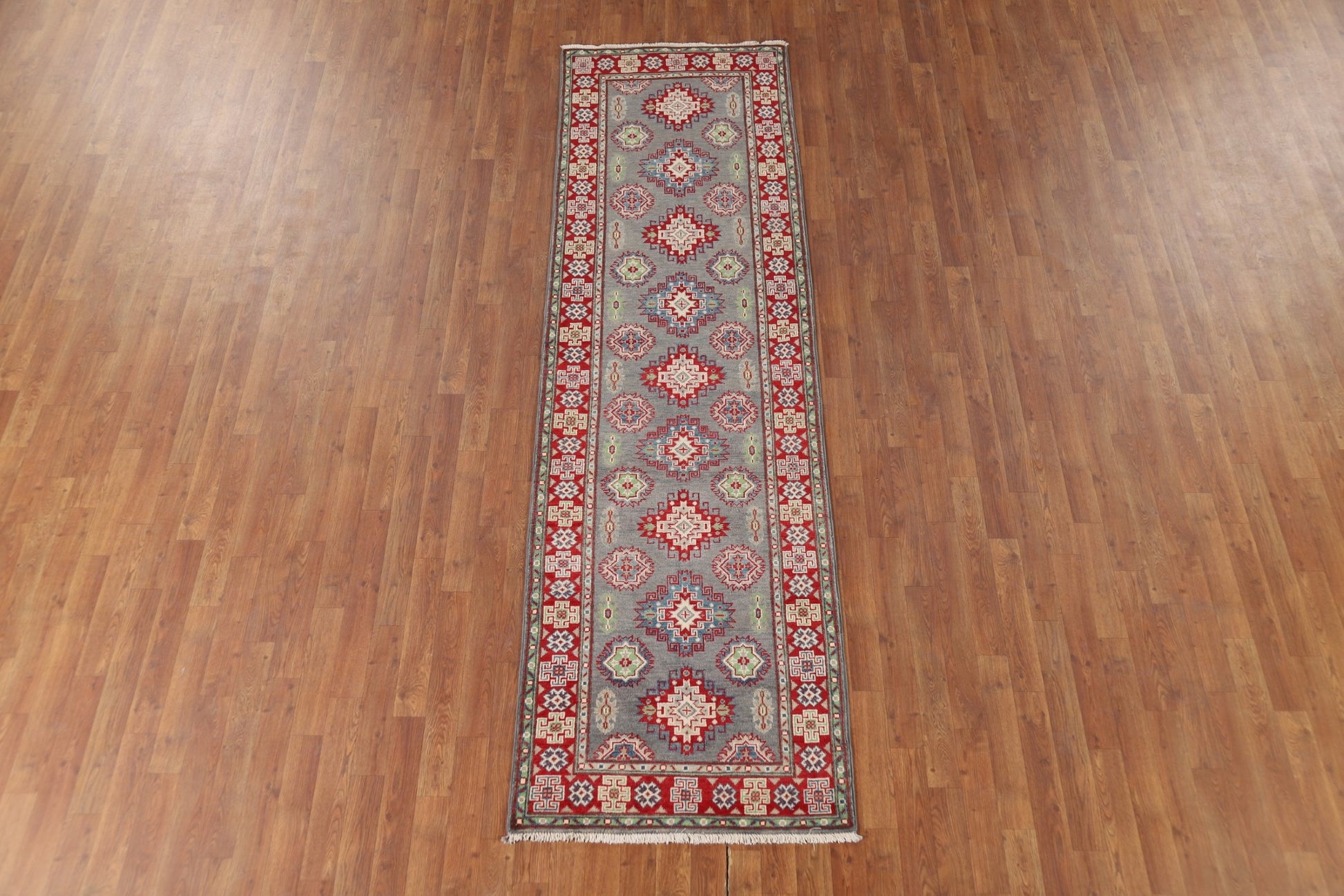 Gray Geometric Kazak Oriental Runner Rug 3x10