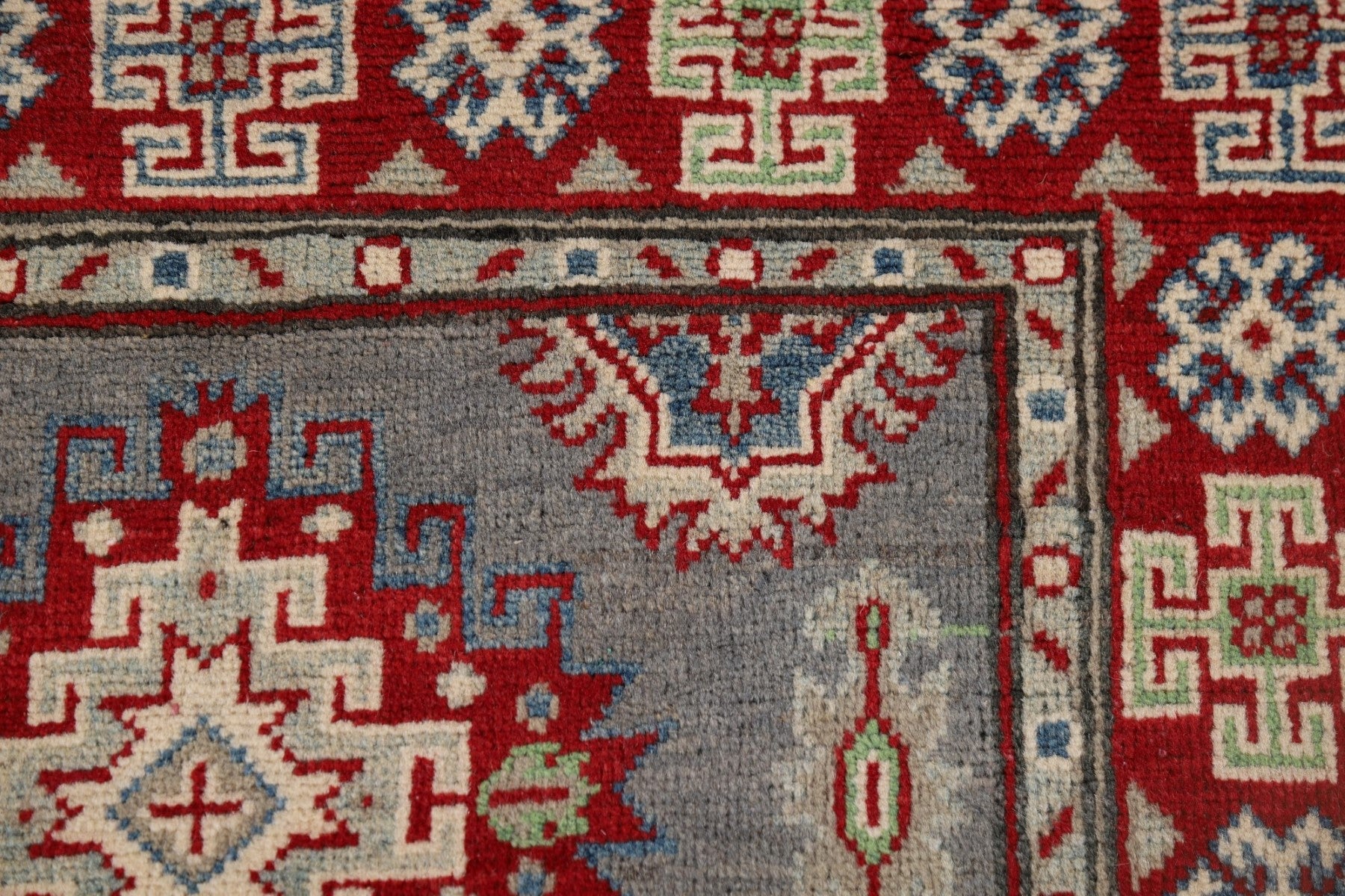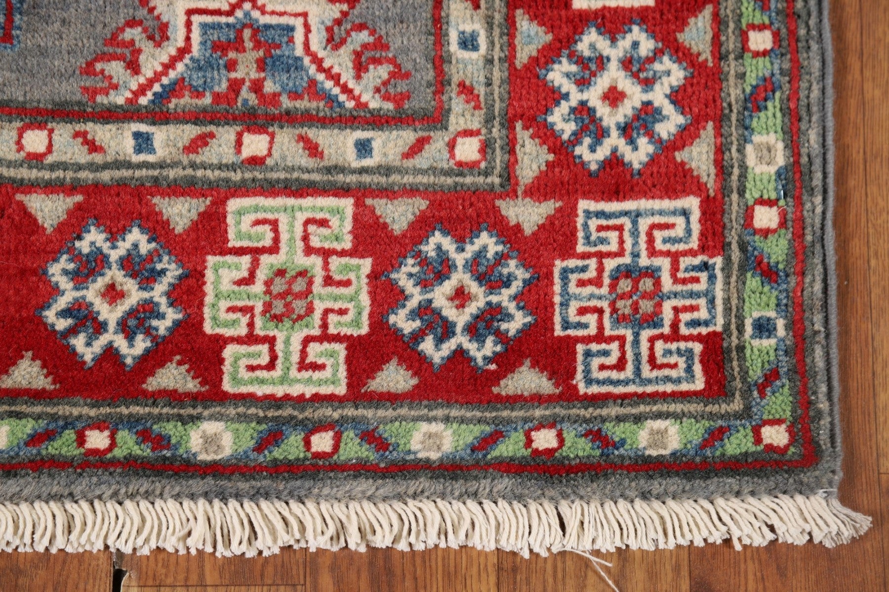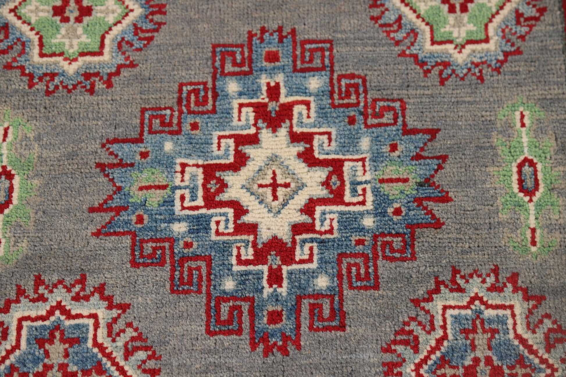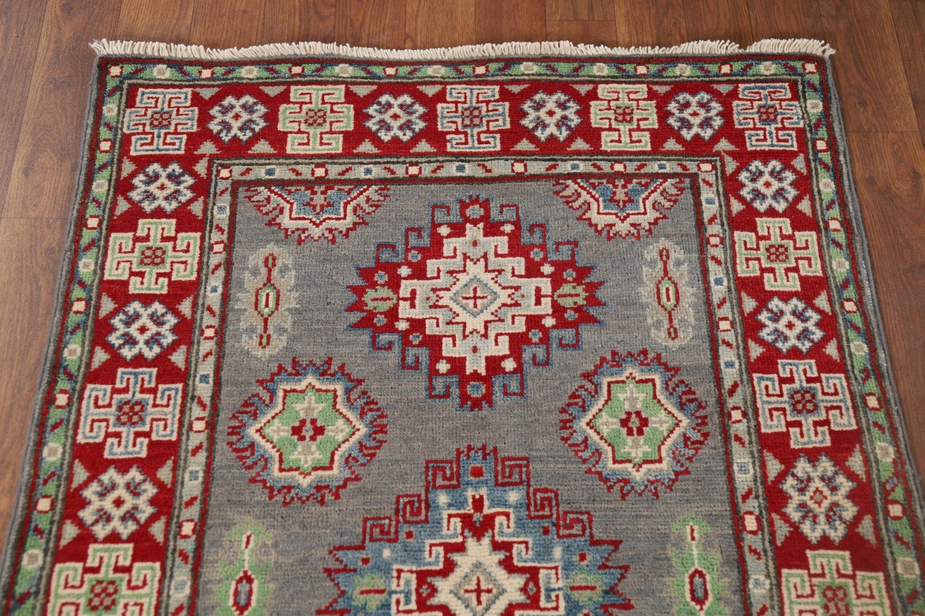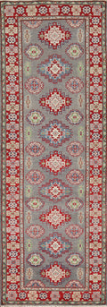 Gray Geometric Kazak Oriental Runner Rug 3x10