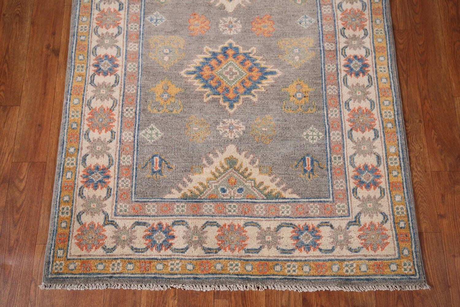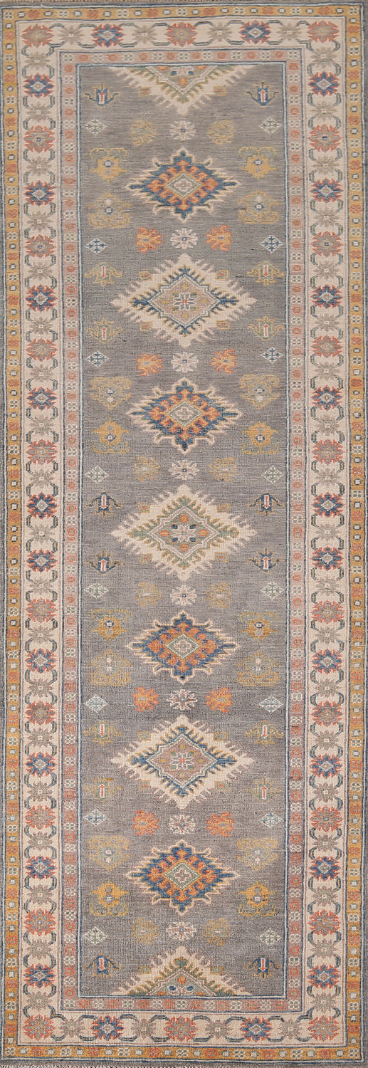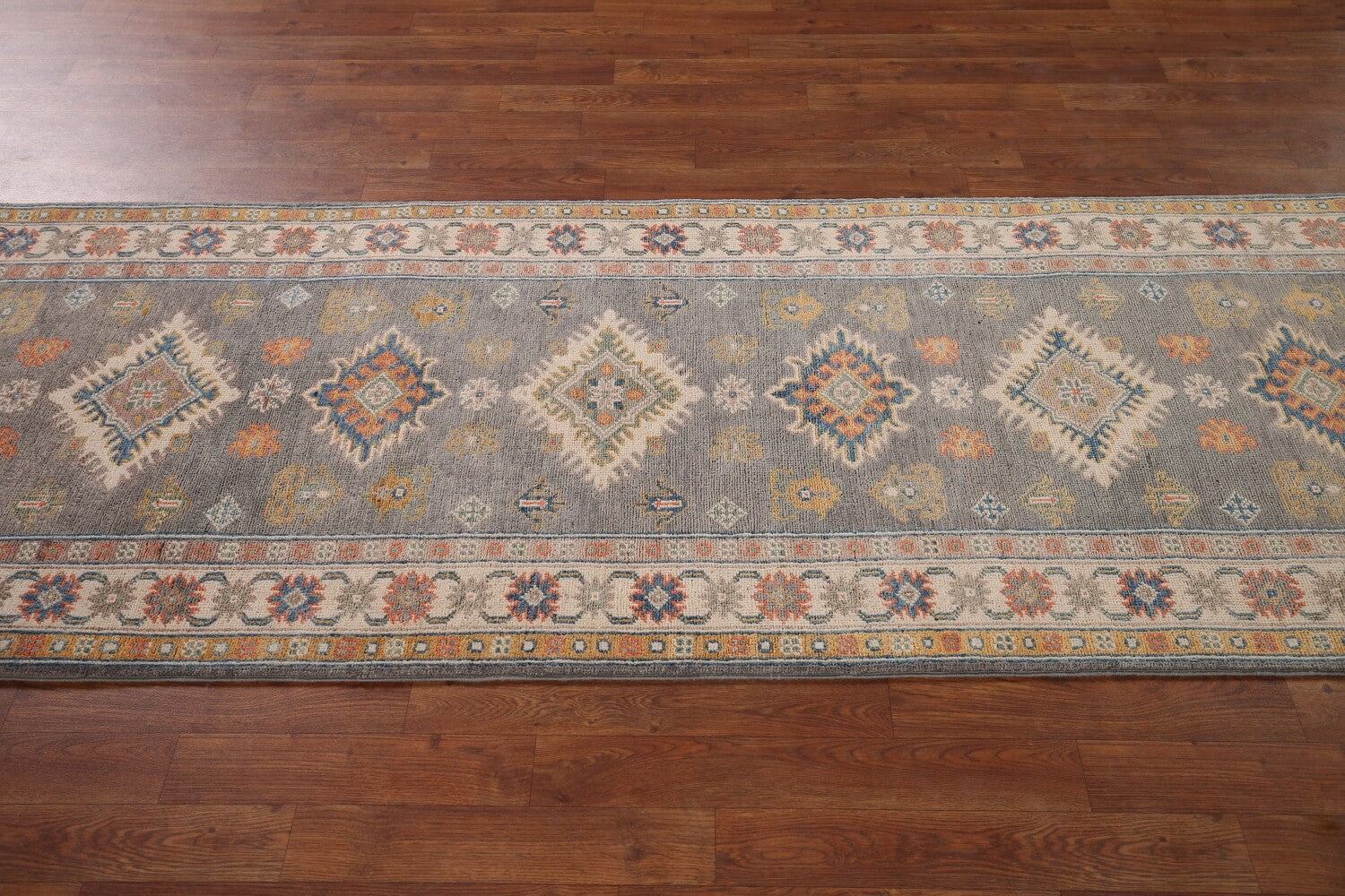 Gray Geometric Kazak Oriental Runner Rug 3x10