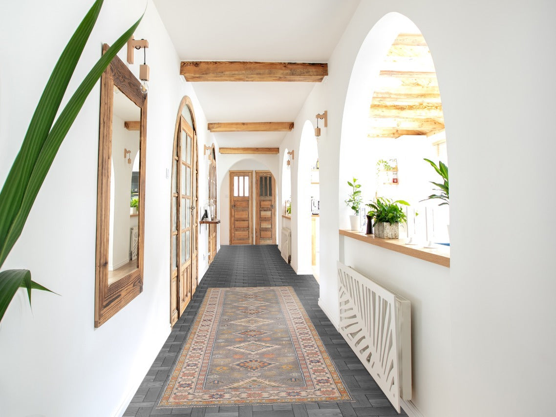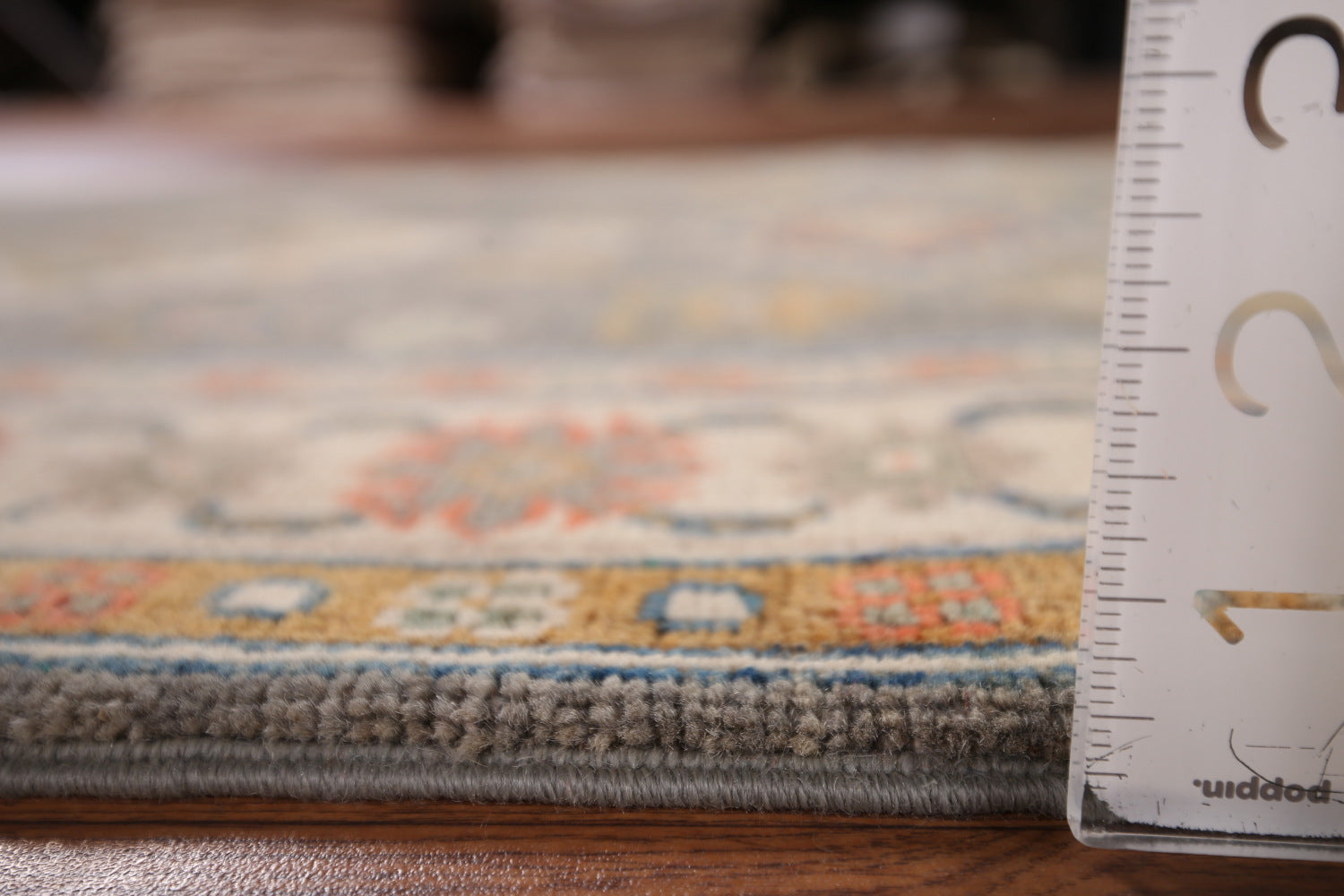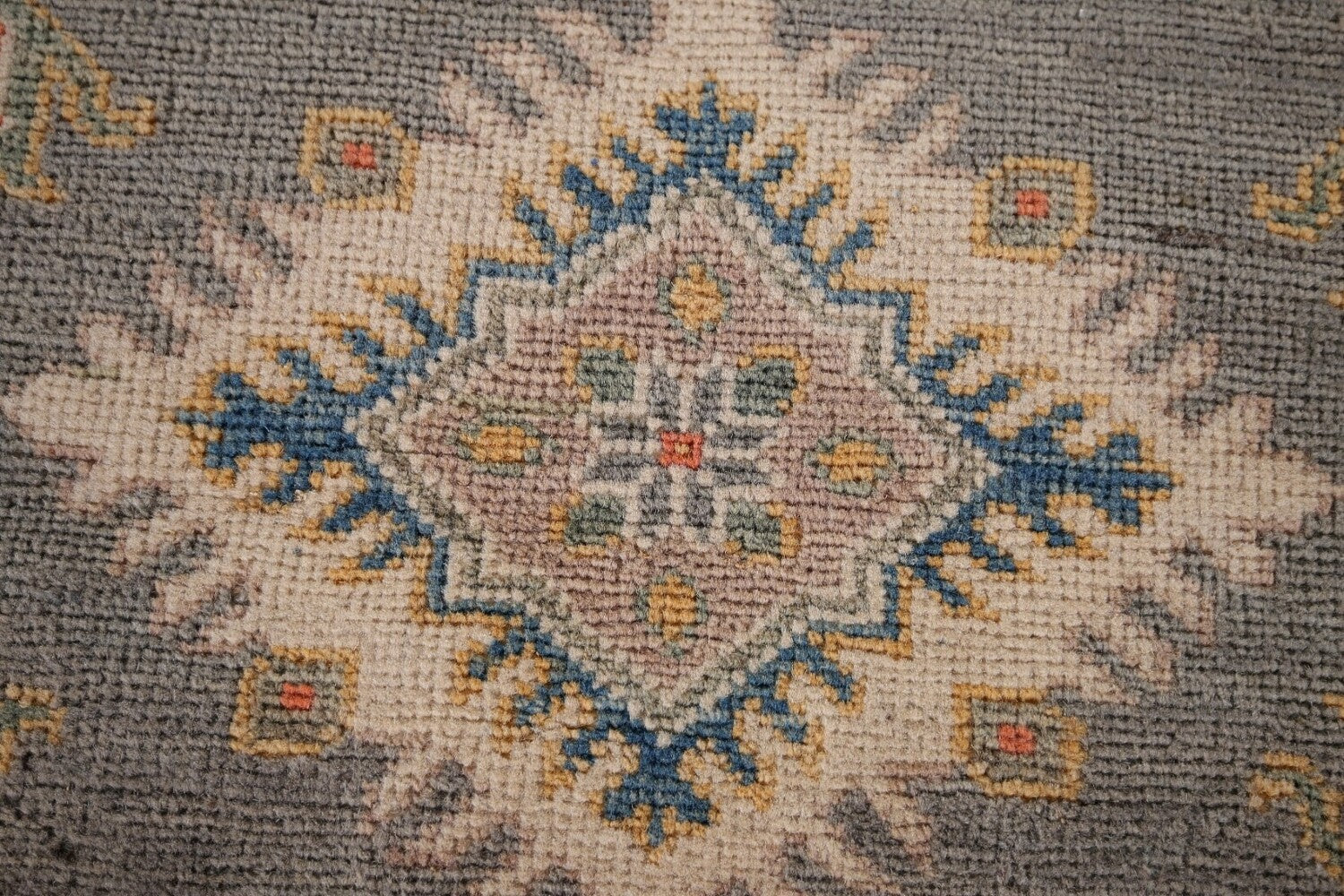 Gray Geometric Kazak Oriental Runner Rug 3x10