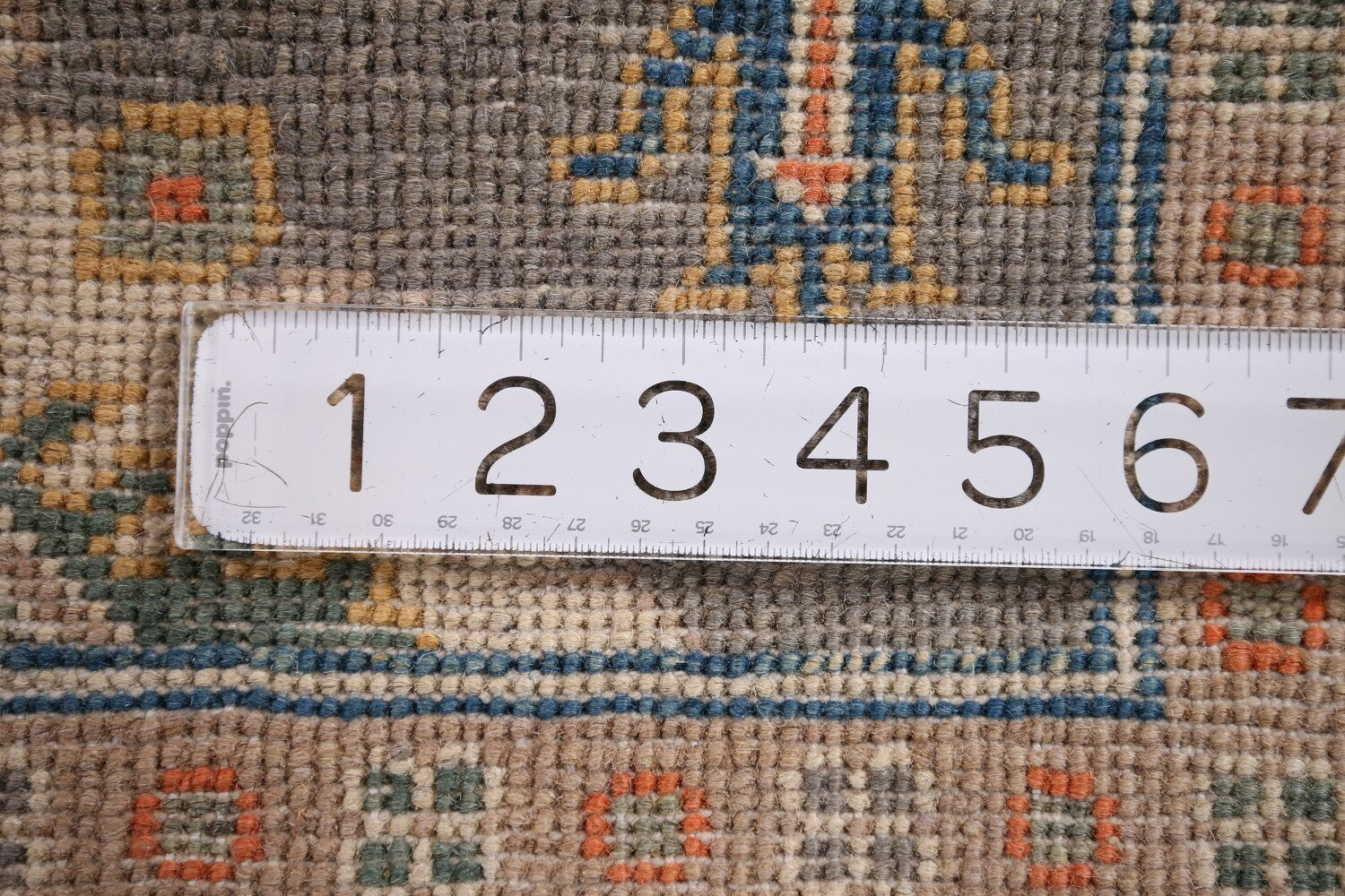 A Beautiful Genuine Pakistan Kazak rug is Hand Knotted by skillful weavers in Pakistan with 100% Wool Material. This rug is in New, First Quality condition. dimensions are 9' 10'' X 2' 10'' in foot and 300 X 86 in centimeter. the primary color is Greys & Charcoal.