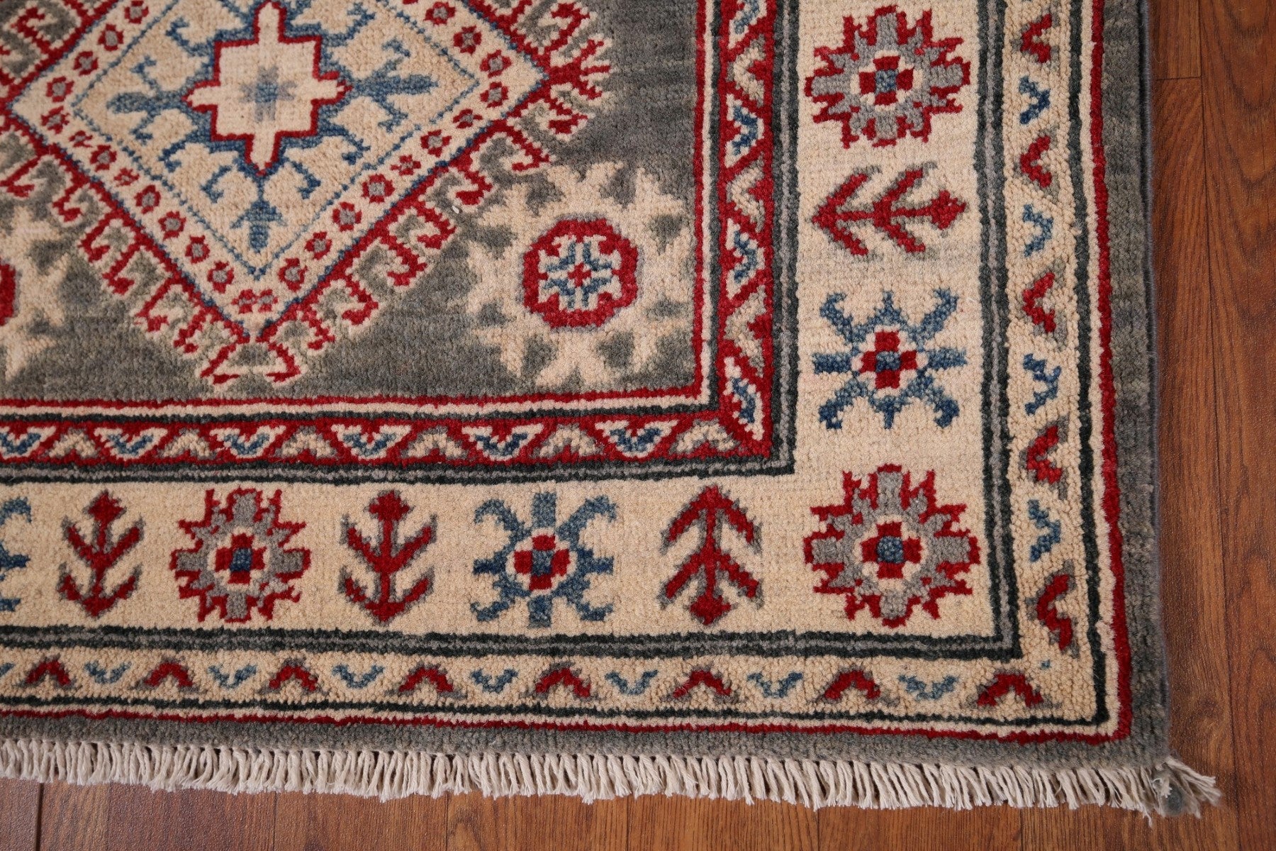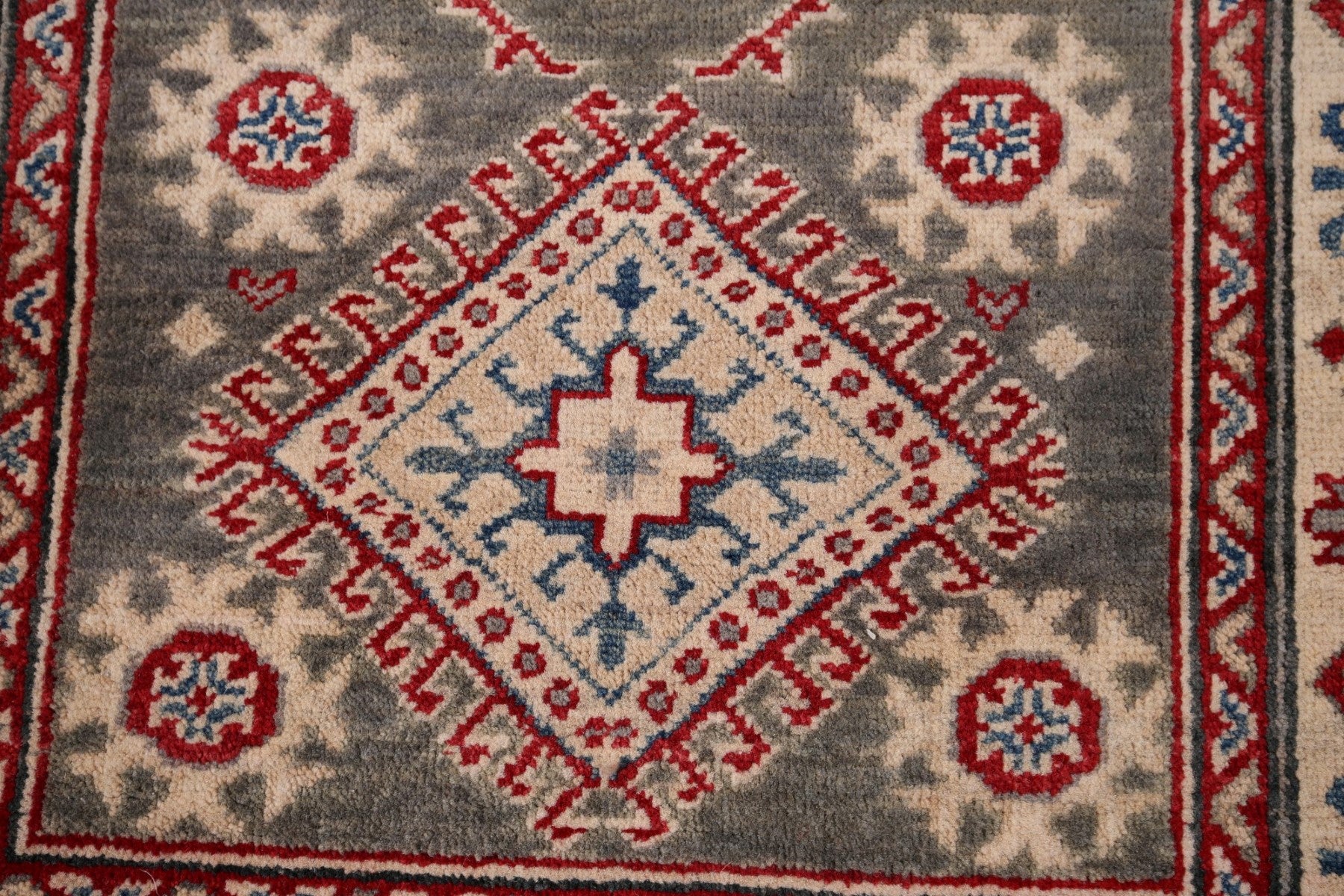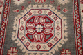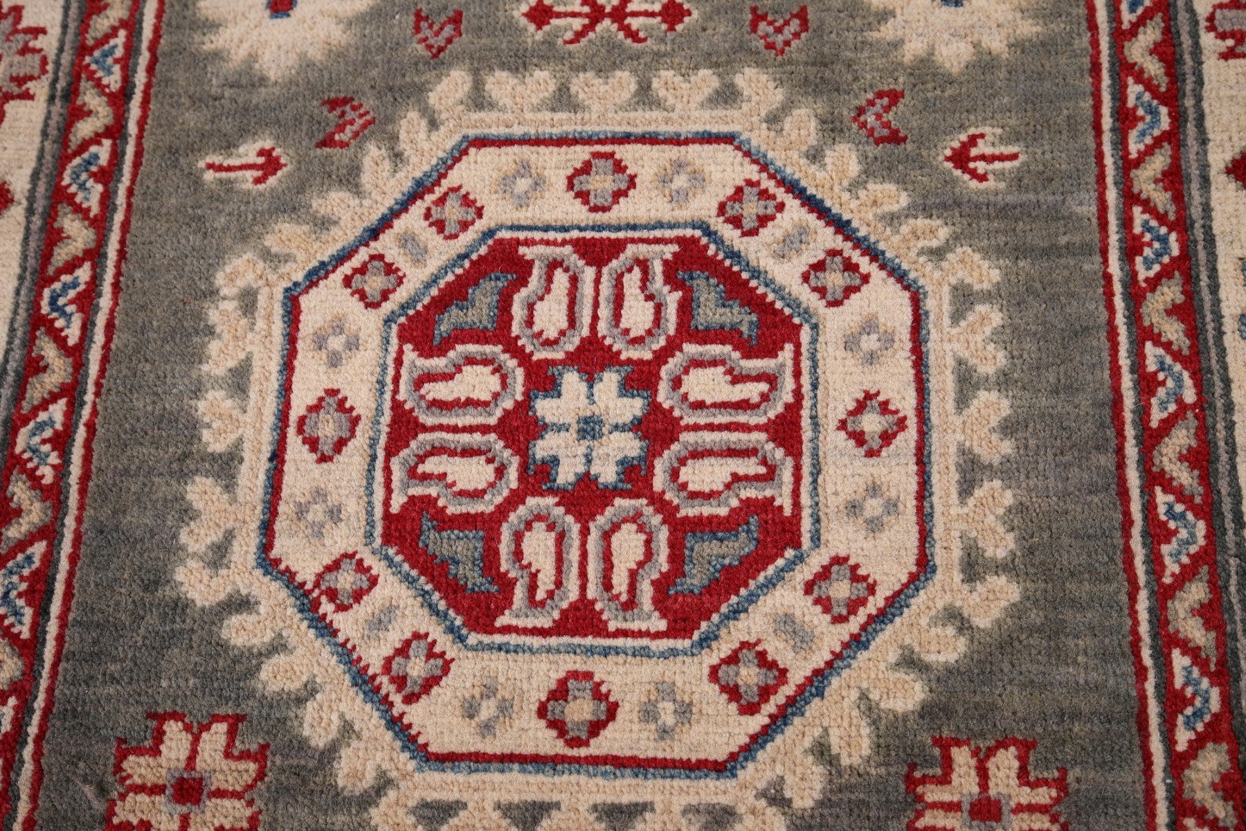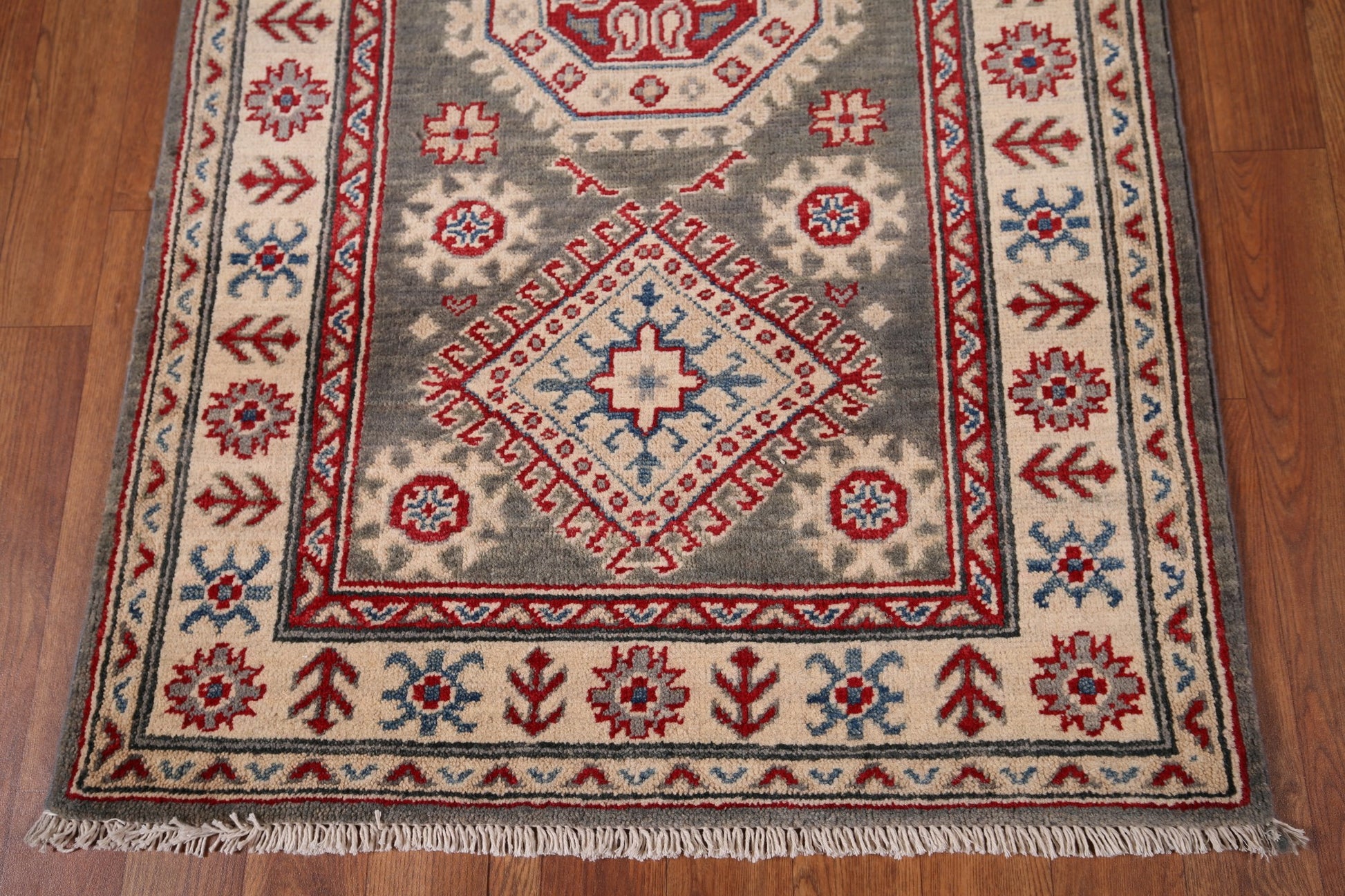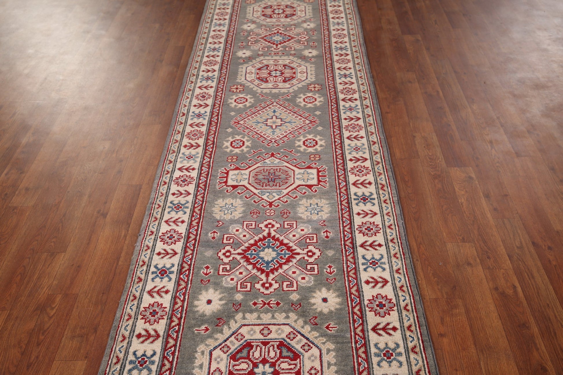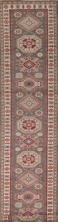 Gray Geometric Kazak Oriental Runner Rug 3x16