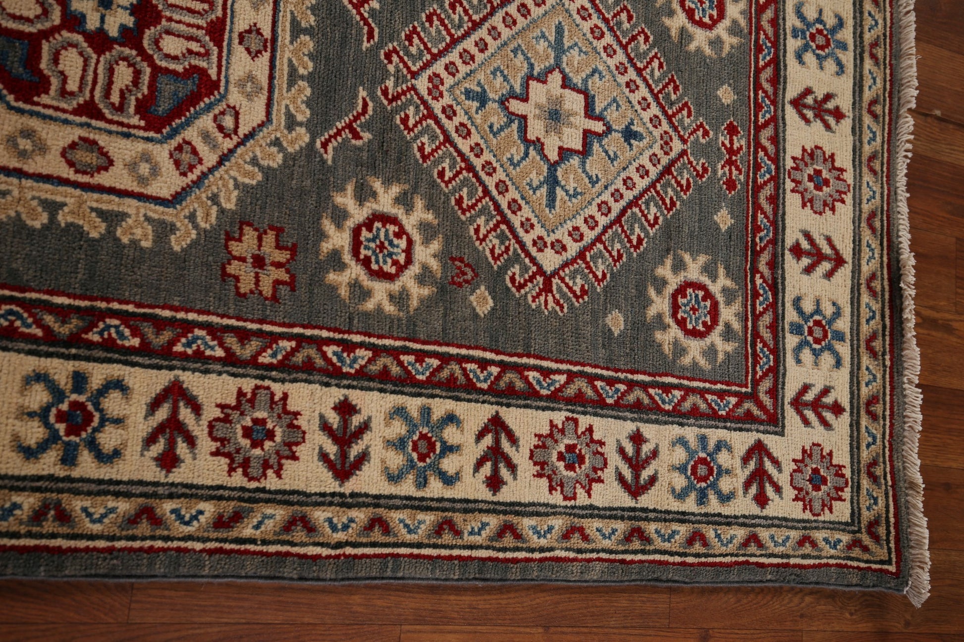 A Beautiful Genuine Pakistan Kazak rug is Hand Knotted by skillful weavers in Pakistan with 100% Wool Material. This rug is in New, First Quality condition. dimensions are 16' 4'' X 2' 8'' in foot and 498 X 81 in centimeter. the primary color is Greys & Charcoal.