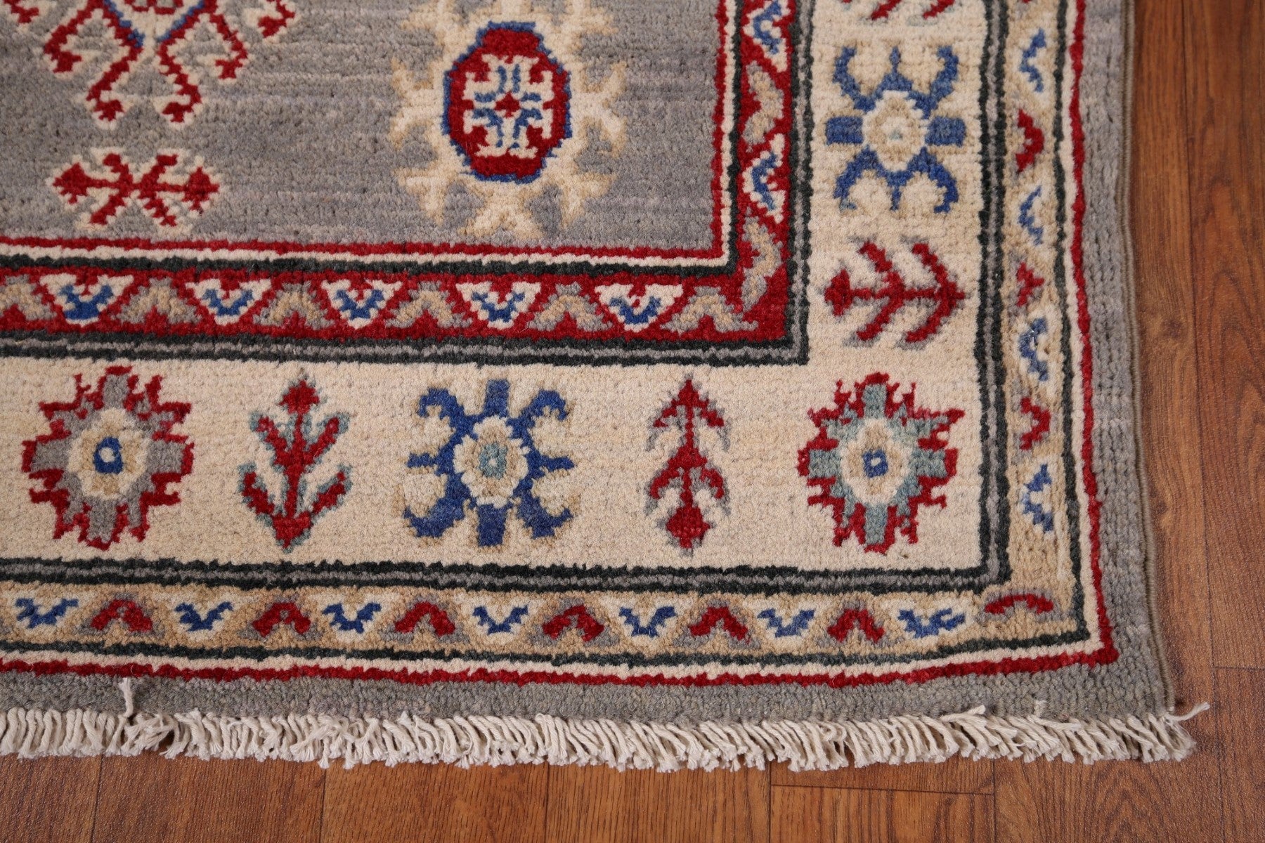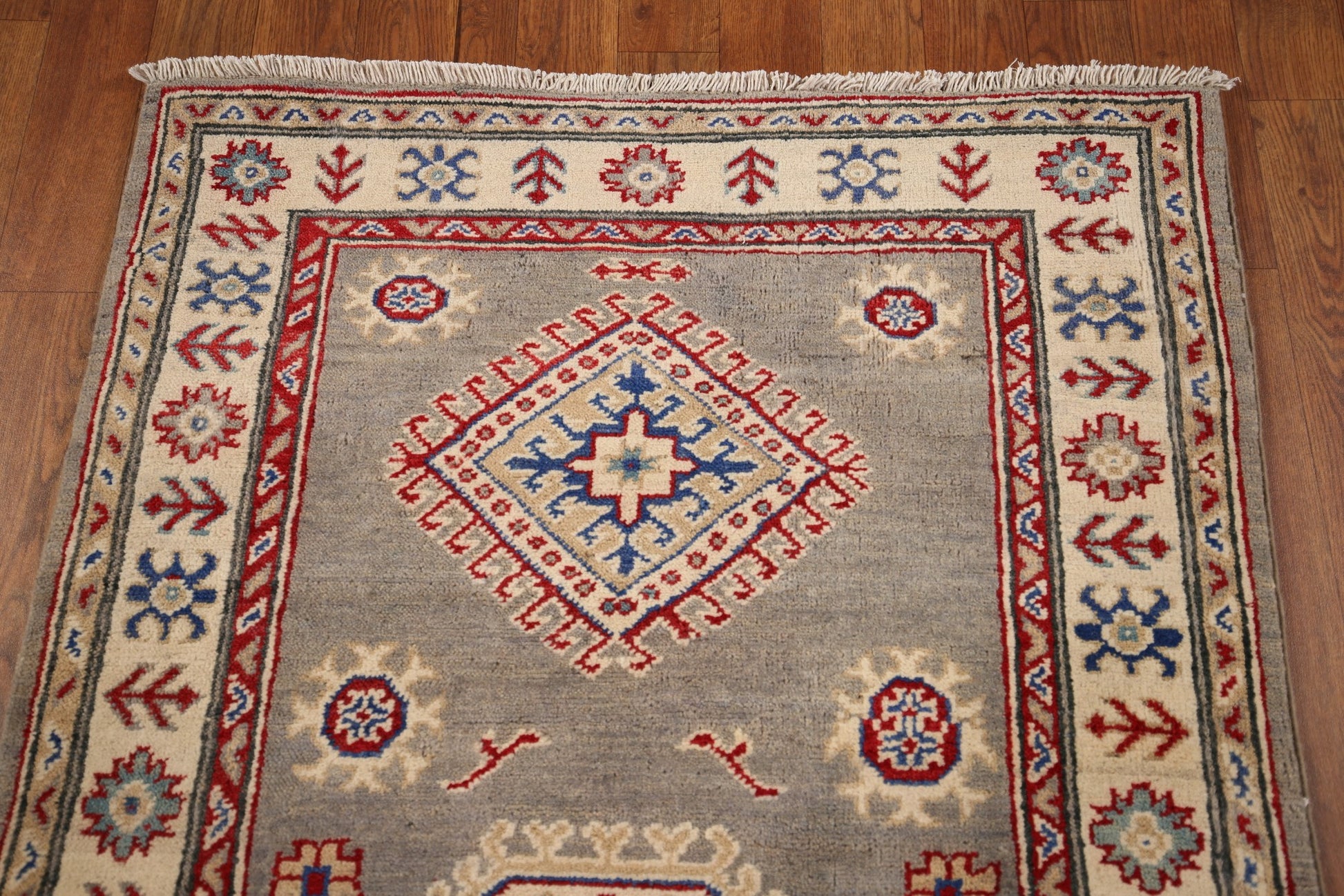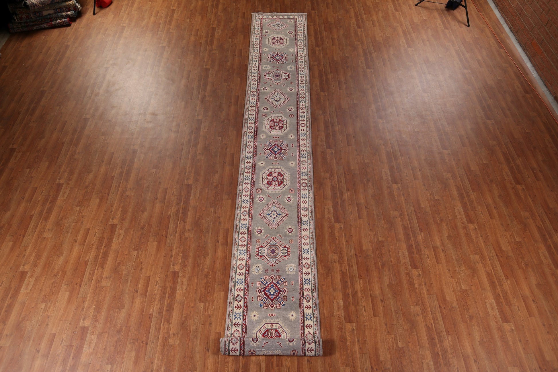 Gray Geometric Kazak Oriental Runner Rug 3x19