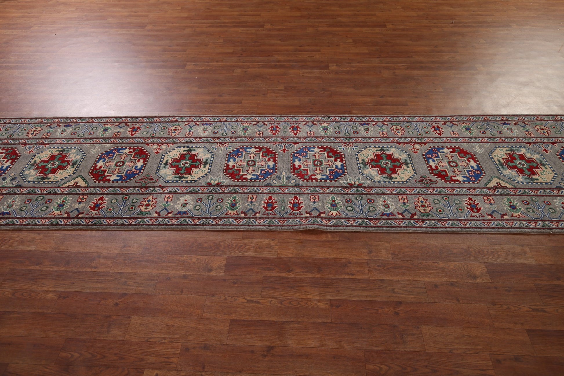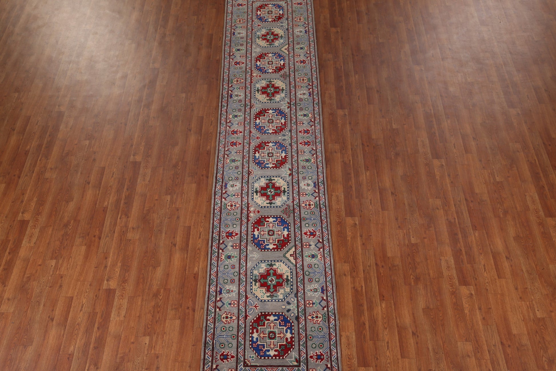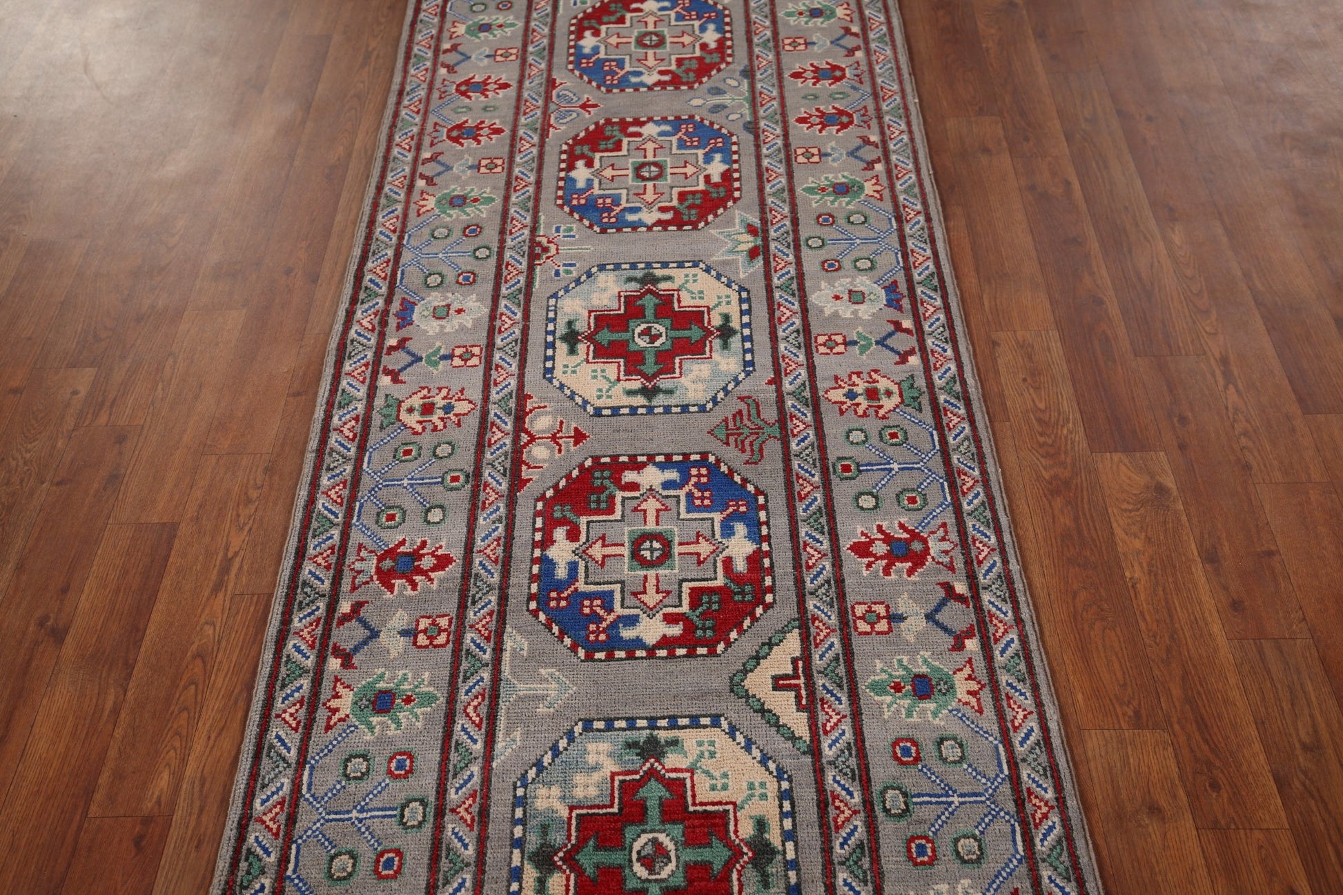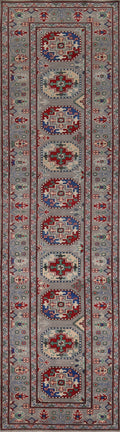 Gray Geometric Kazak Runner Rug 3x13