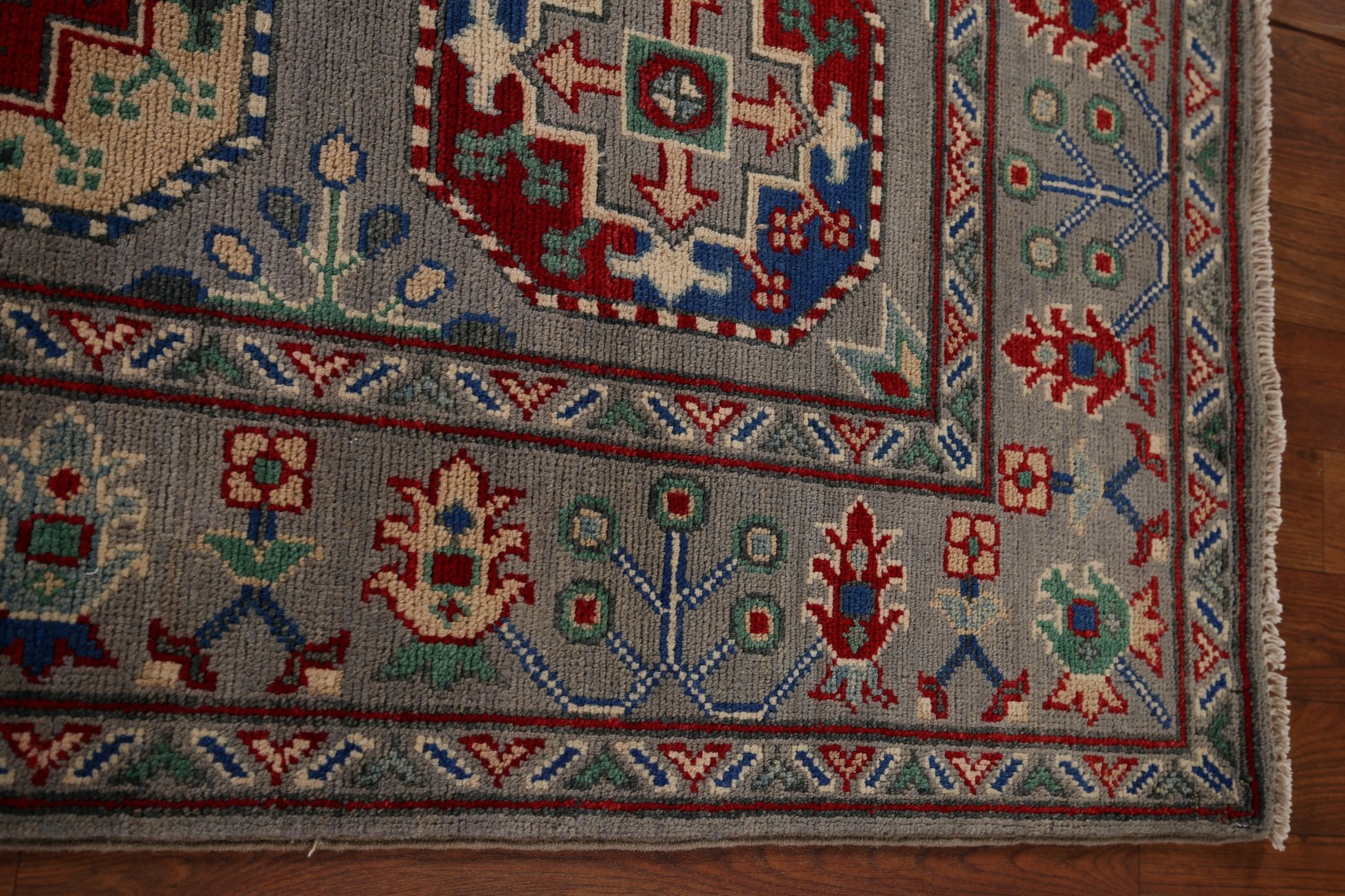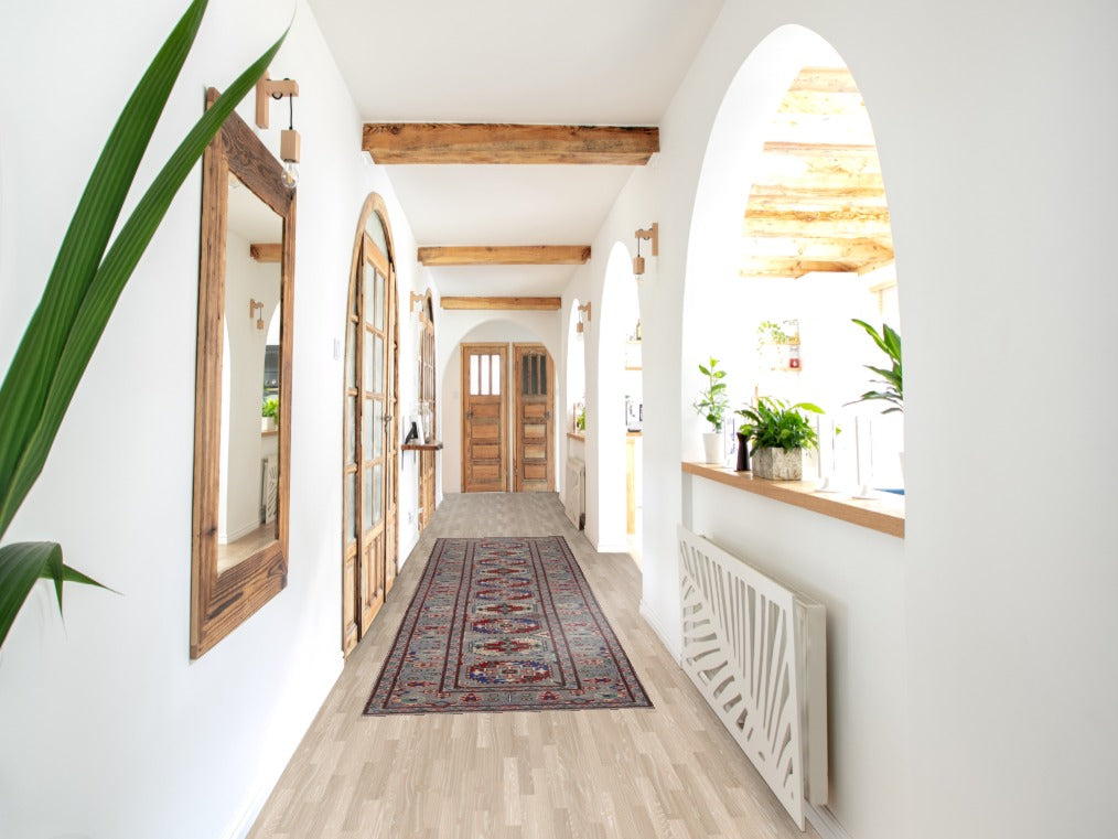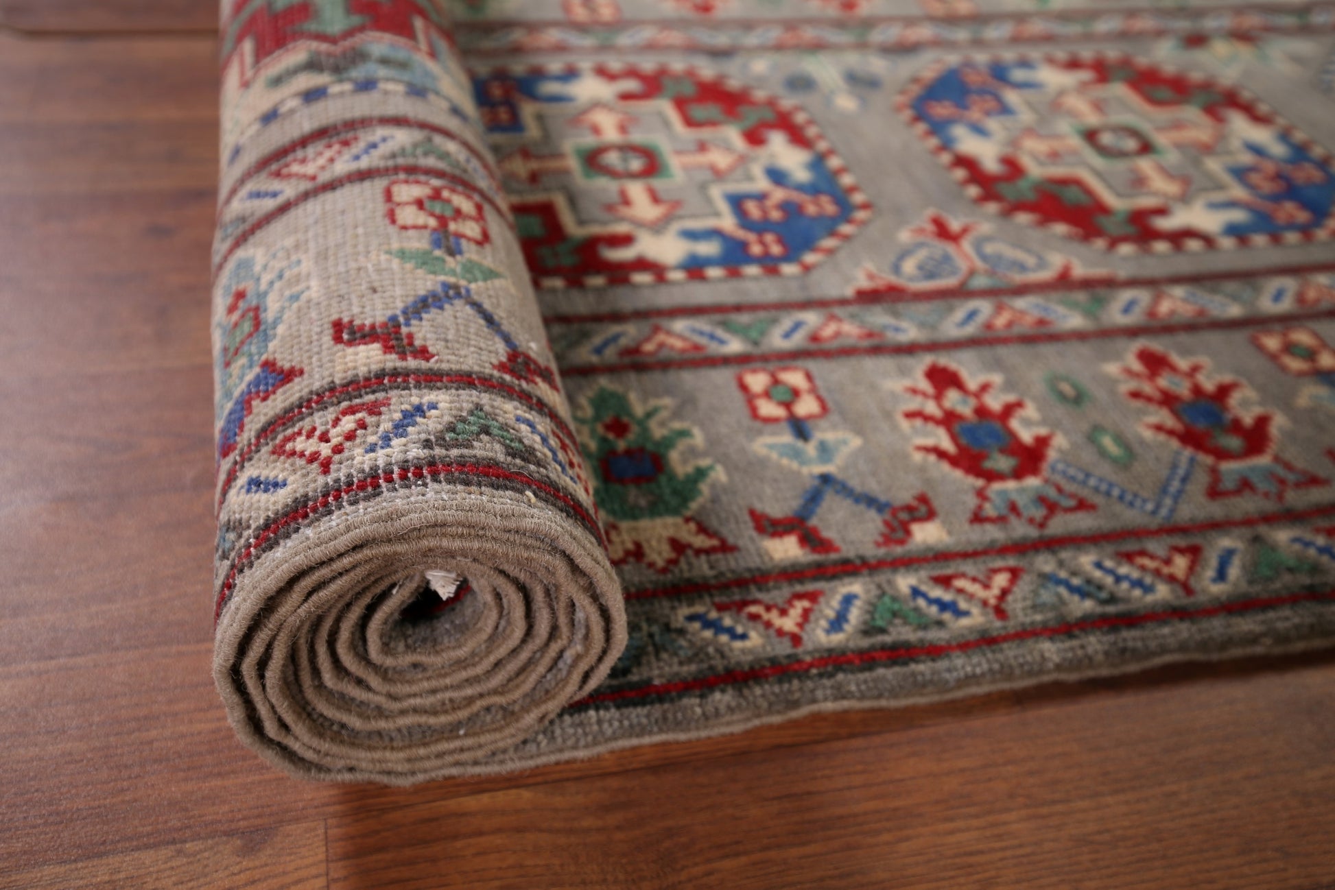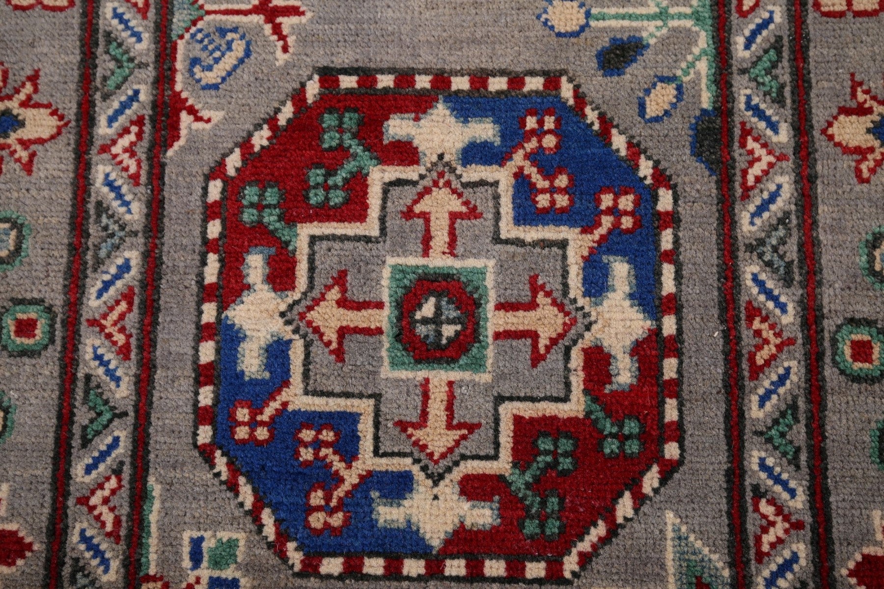 Gray Geometric Kazak Runner Rug 3x13