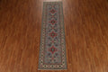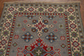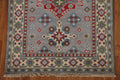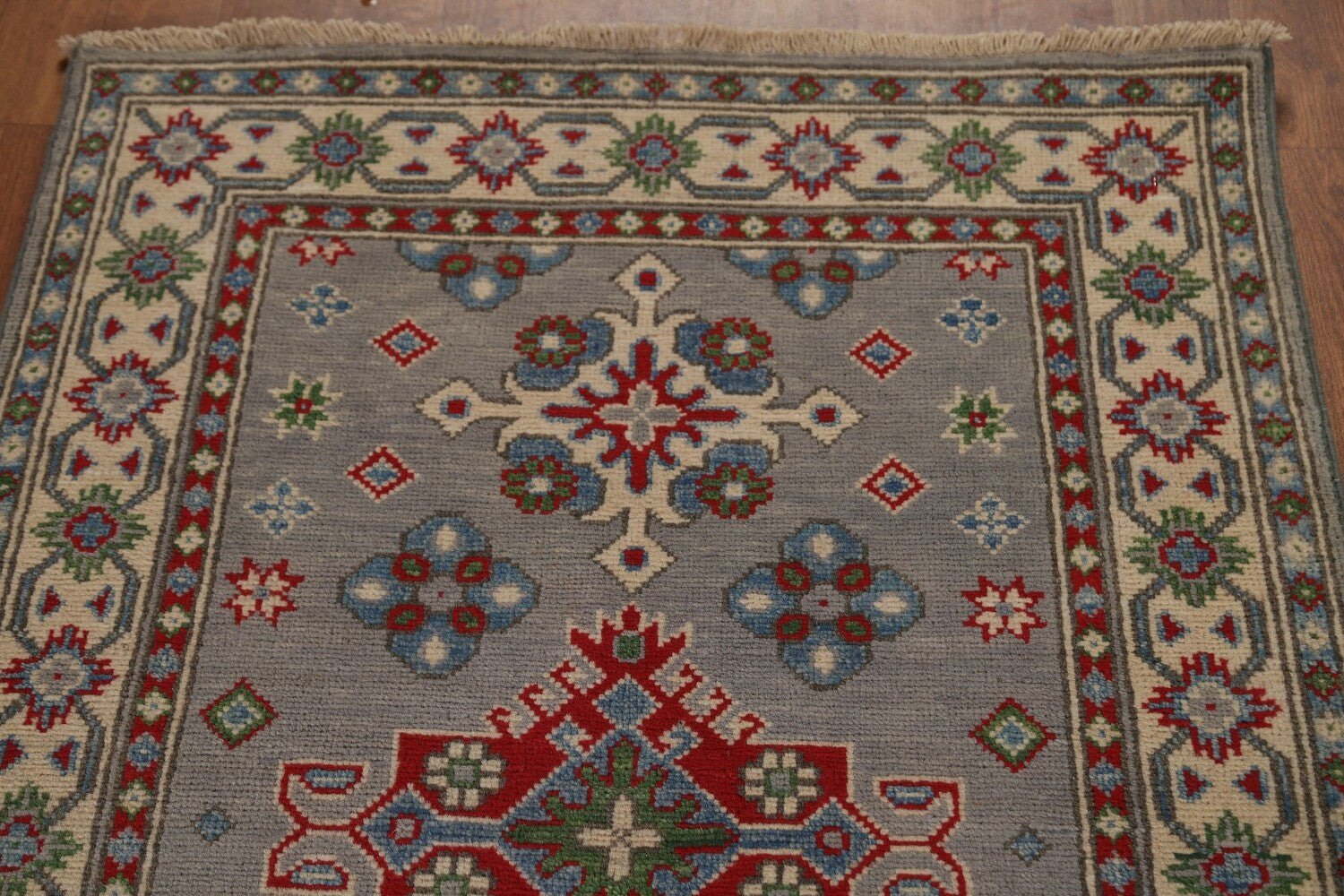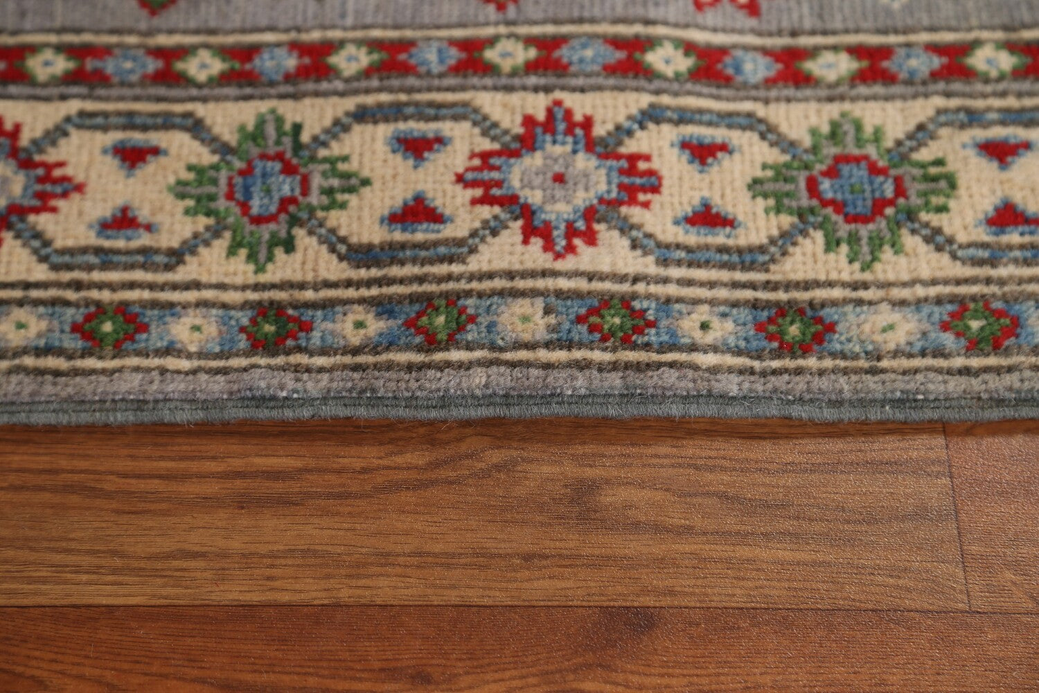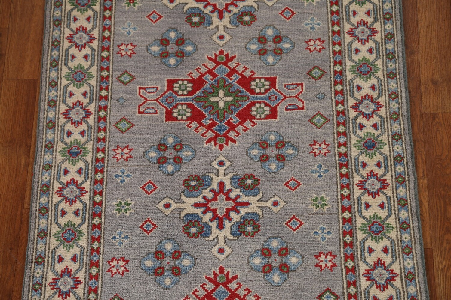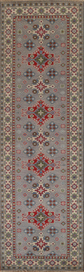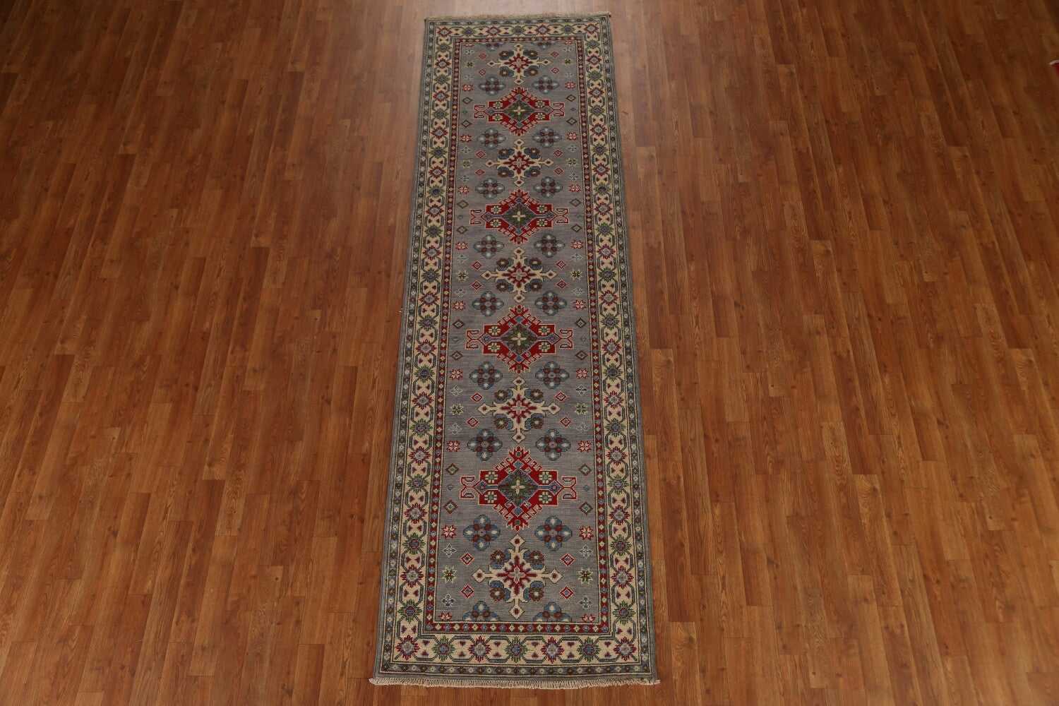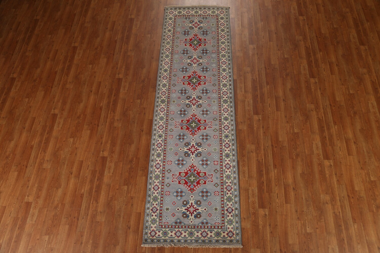 Gray Geometric Kazak Wool Runner Rug 3x10