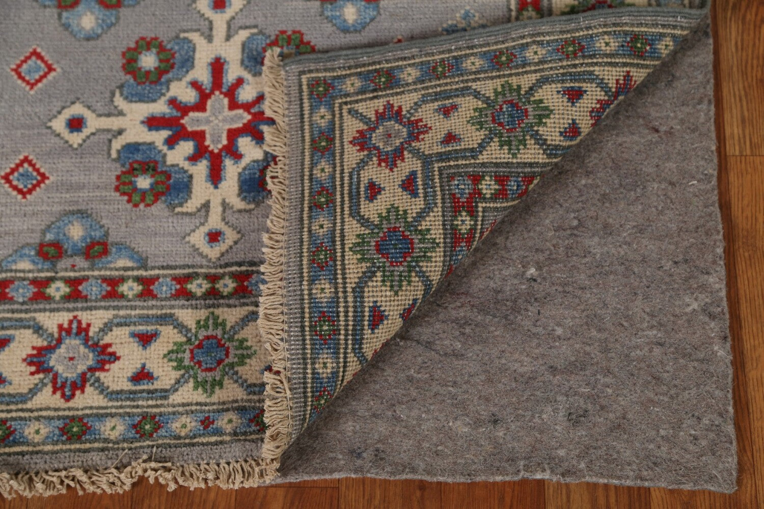 A Beautiful Genuine Pakistan Kazak rug is Hand Knotted by skillful weavers in Pakistan with 100% Wool Material. This rug is in New, First Quality condition. dimensions are 9' 10'' X 2' 10'' in foot and 300 X 86 in centimeter. the primary color is Greys & Charcoal.