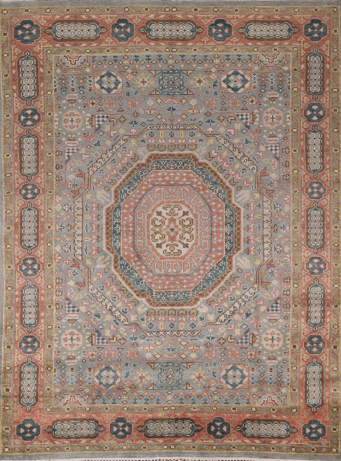 A Beautiful Genuine India Khotan rug is Hand Knotted by skillful weavers in India with 100% Wool Material. This rug is in New, First Quality condition. dimensions are 9' 10'' X 7' 9'' in foot and 300 X 236 in centimeter. the primary color is Greys & Charcoal.