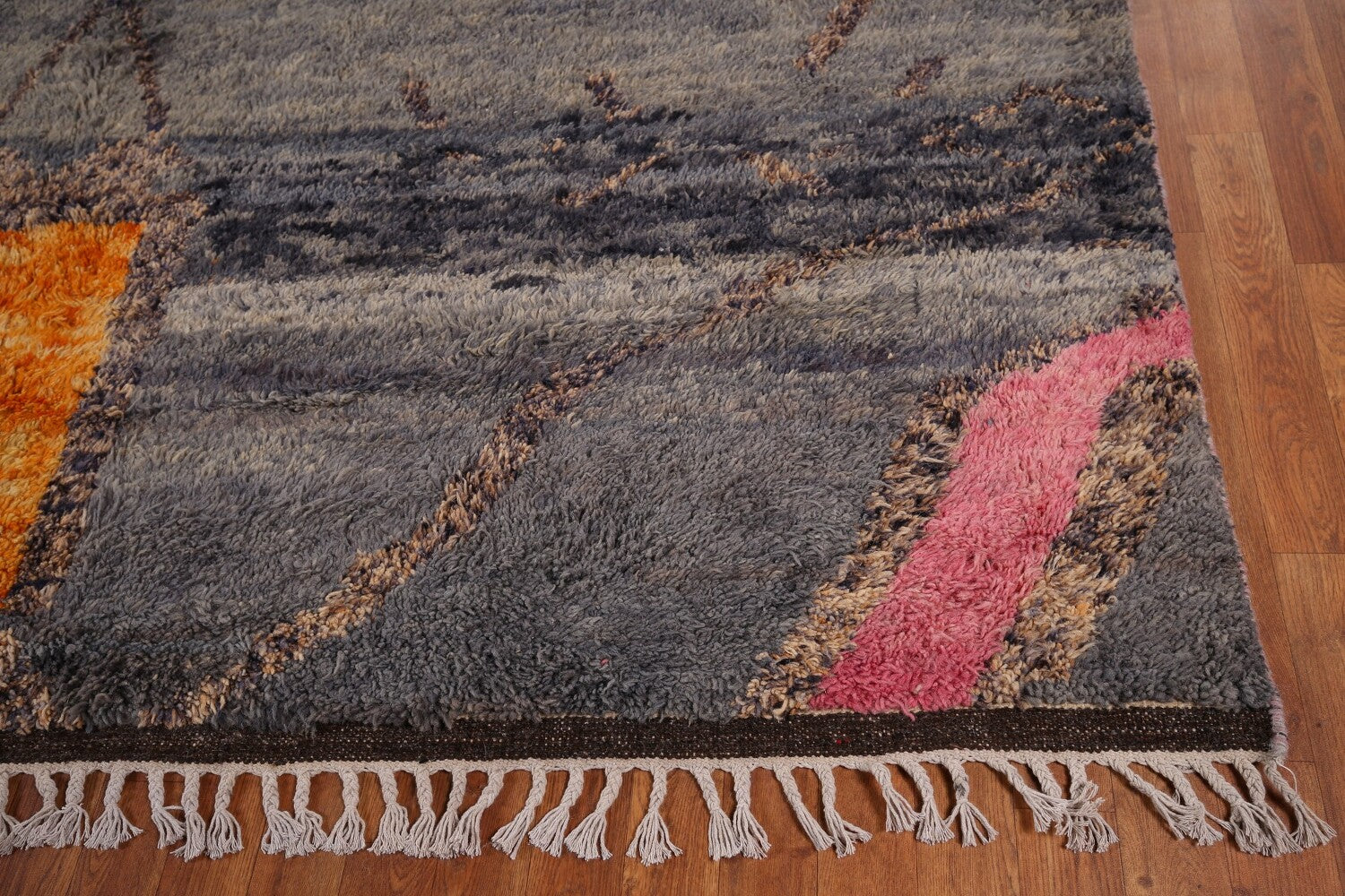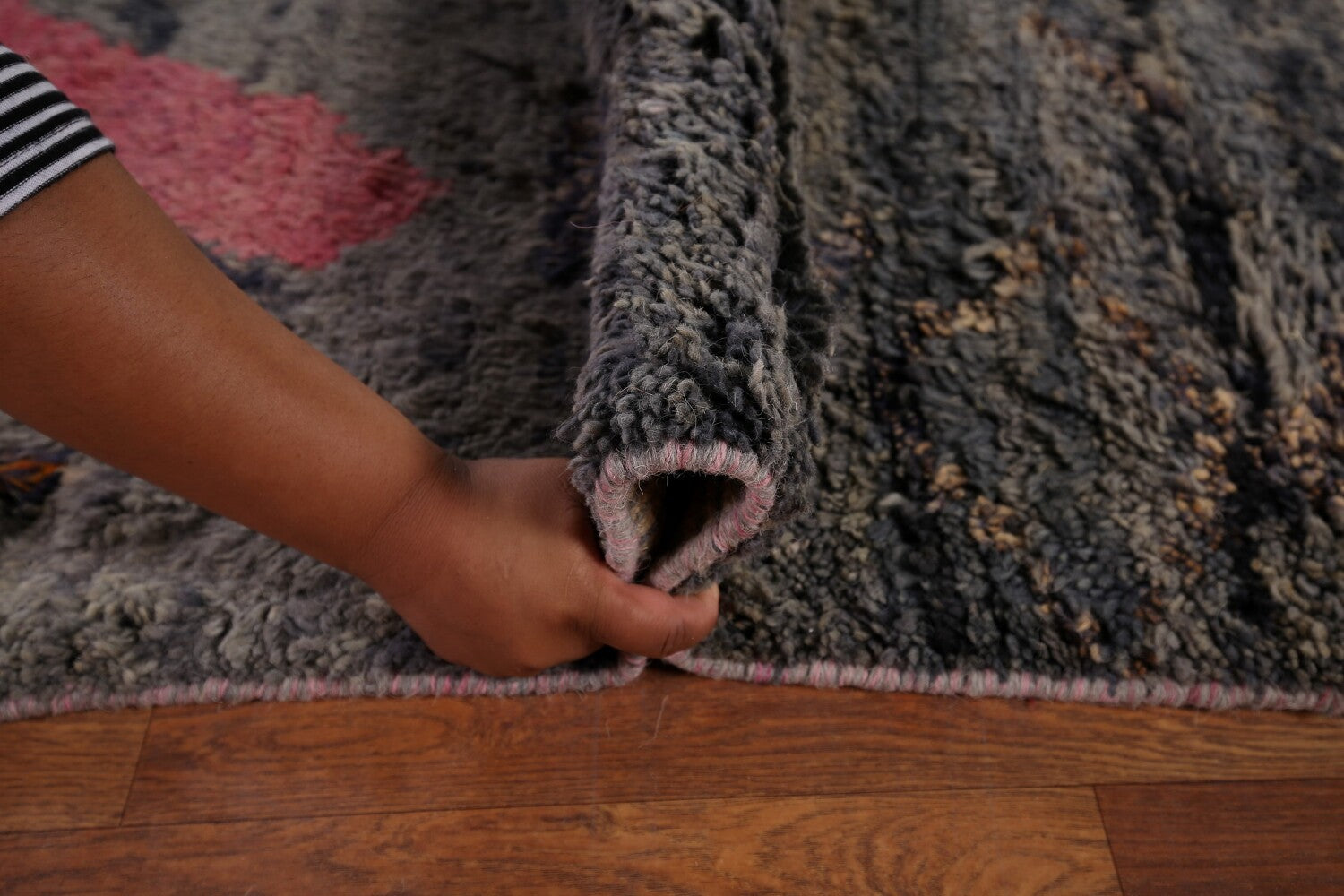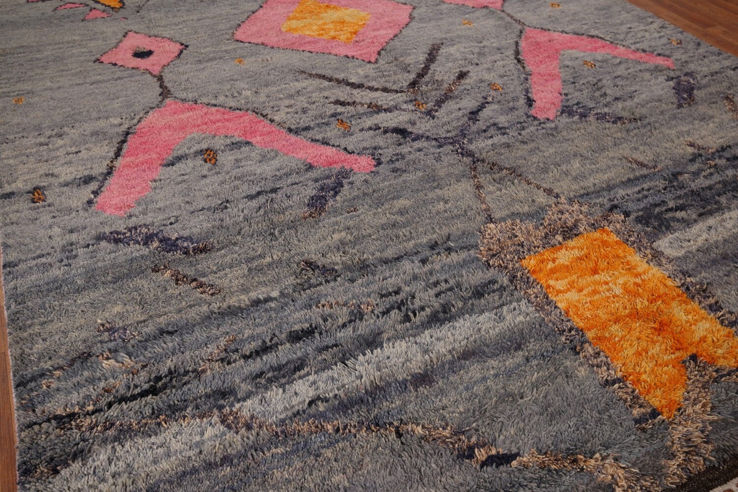 A Beautiful Genuine Pakistan Moroccan rug is Hand Knotted by skillful weavers in Pakistan with 100% Wool Material. This rug is in condition. dimensions are 12' 3'' X 9' 0'' in foot and 373 X 274 in centimeter. the primary color is Greys & Charcoal.