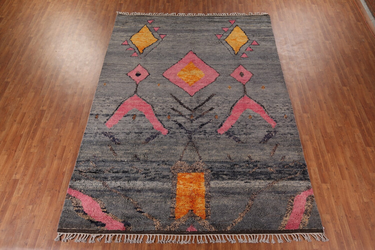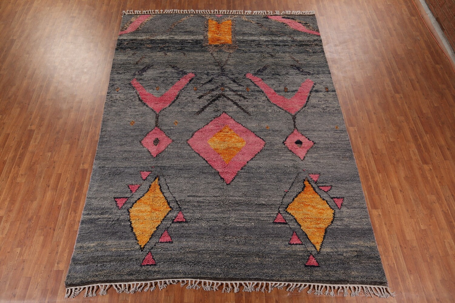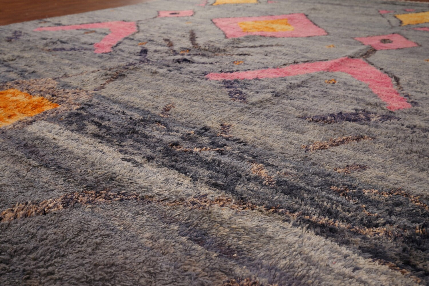 A Beautiful Genuine Pakistan Moroccan rug is Hand Knotted by skillful weavers in Pakistan with 100% Wool Material. This rug is in condition. dimensions are 12' 3'' X 9' 0'' in foot and 373 X 274 in centimeter. the primary color is Greys & Charcoal.