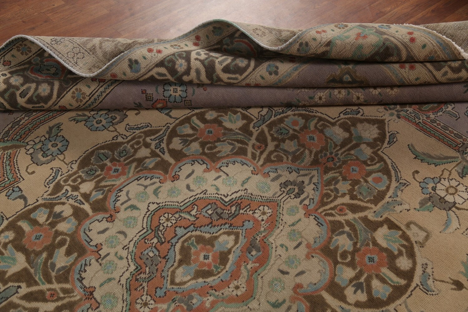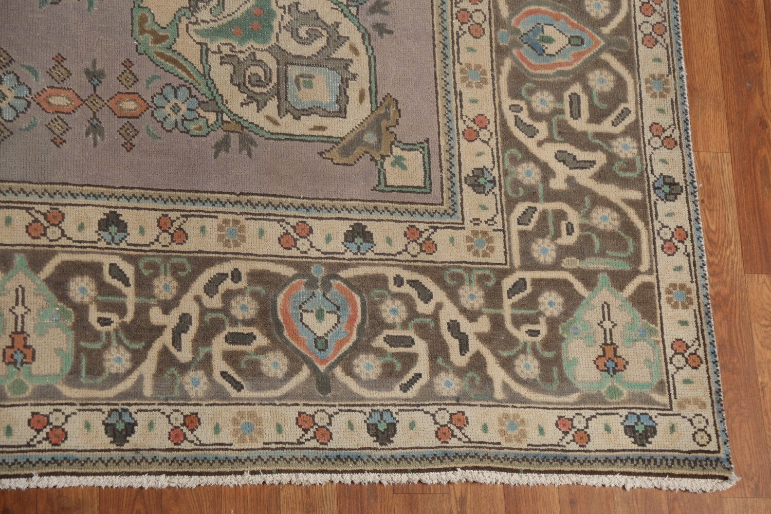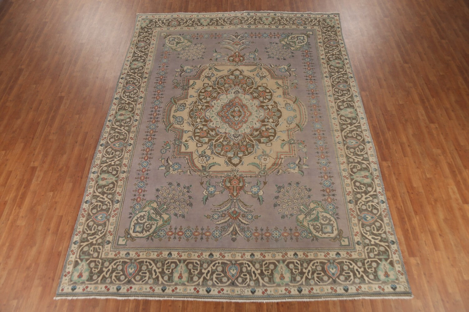 A Beautiful Genuine Persia ( Persia ) Tabriz rug is Hand Knotted by skillful weavers in Persia ( Persia ) with 100% Wool Material. This rug is in Very Good (Low Pile-Abrash) condition. dimensions are 12' 11'' X 9' 10'' in foot and 394 X 300 in centimeter. the primary color is Greys & Charcoal.