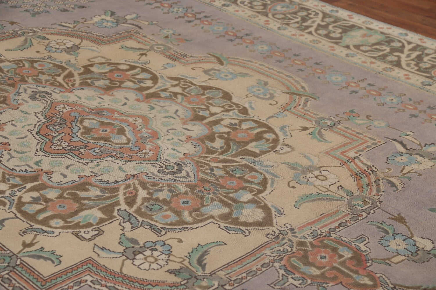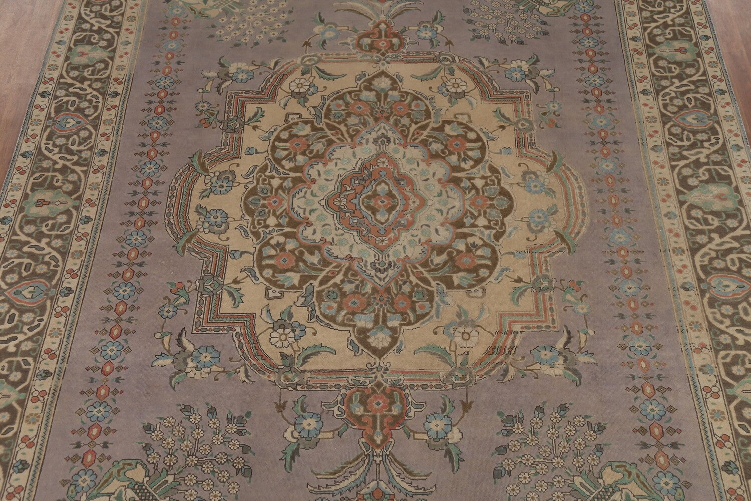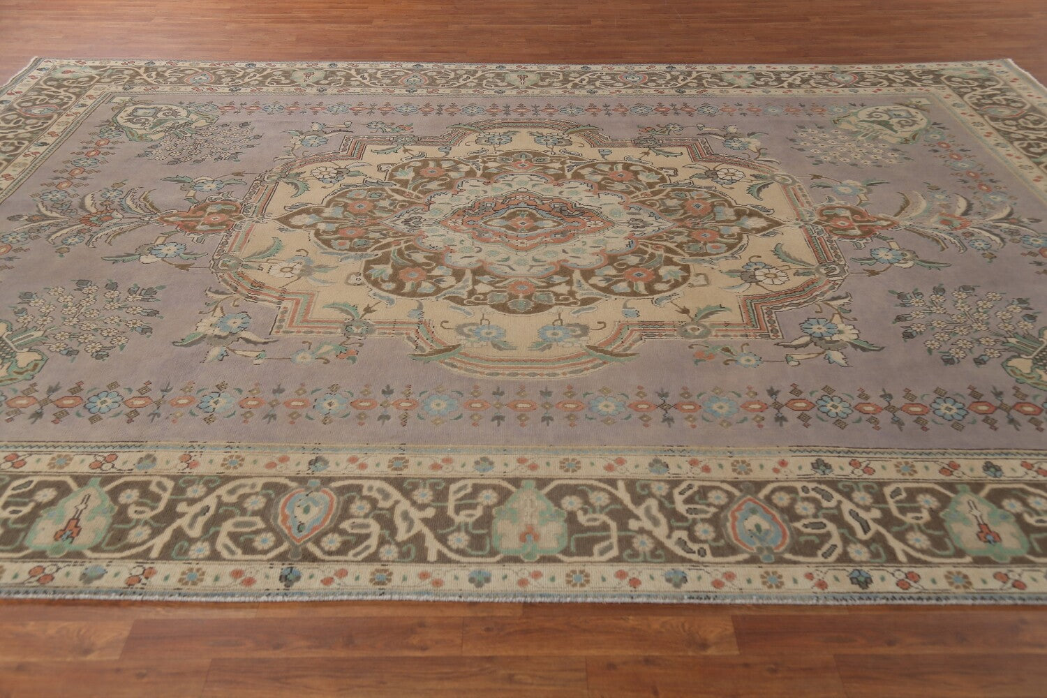 A Beautiful Genuine Persia ( Persia ) Tabriz rug is Hand Knotted by skillful weavers in Persia ( Persia ) with 100% Wool Material. This rug is in Very Good (Low Pile-Abrash) condition. dimensions are 12' 11'' X 9' 10'' in foot and 394 X 300 in centimeter. the primary color is Greys & Charcoal.