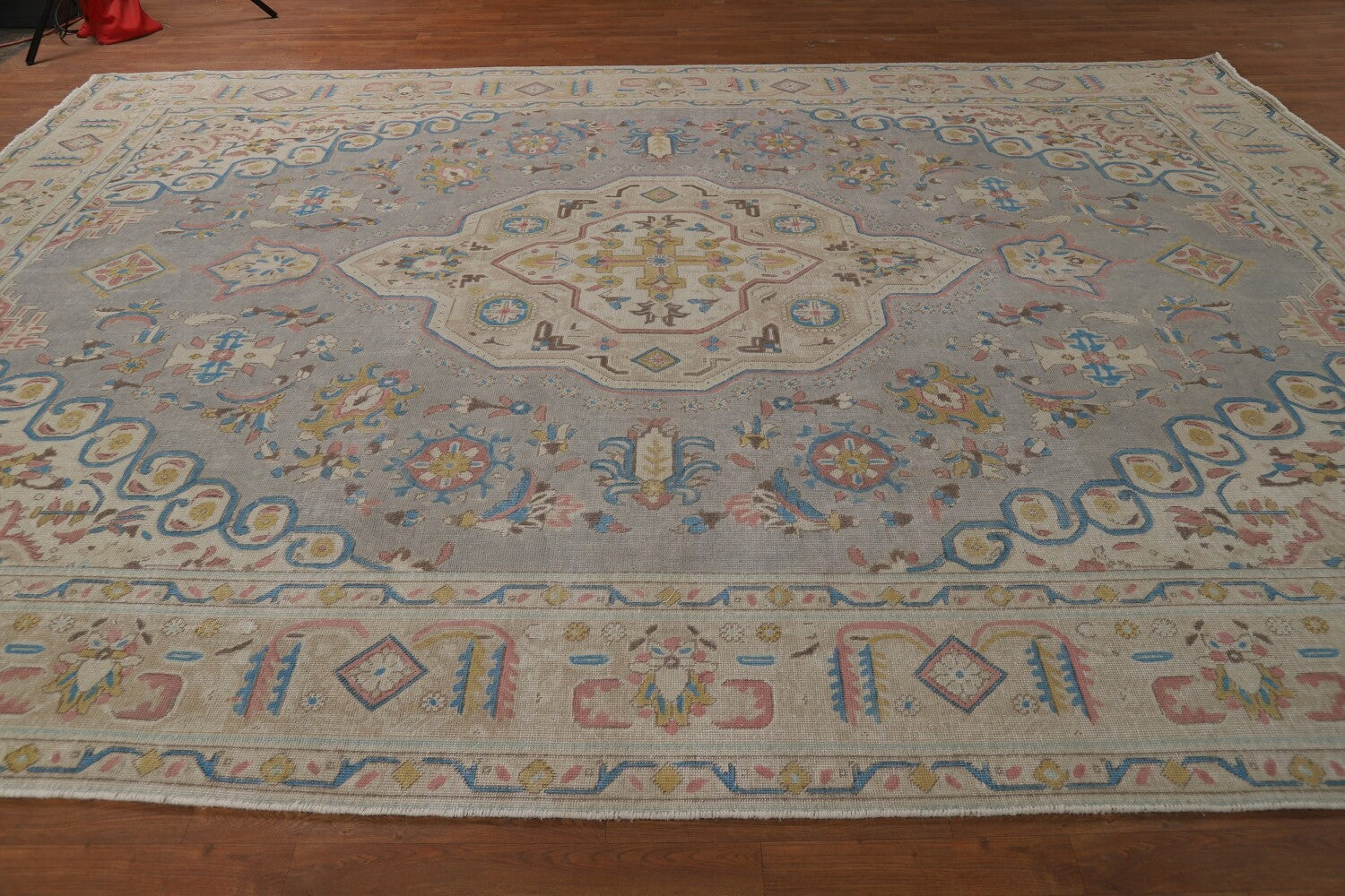 Gray Geometric Tabriz Persian Area Rug 10x13