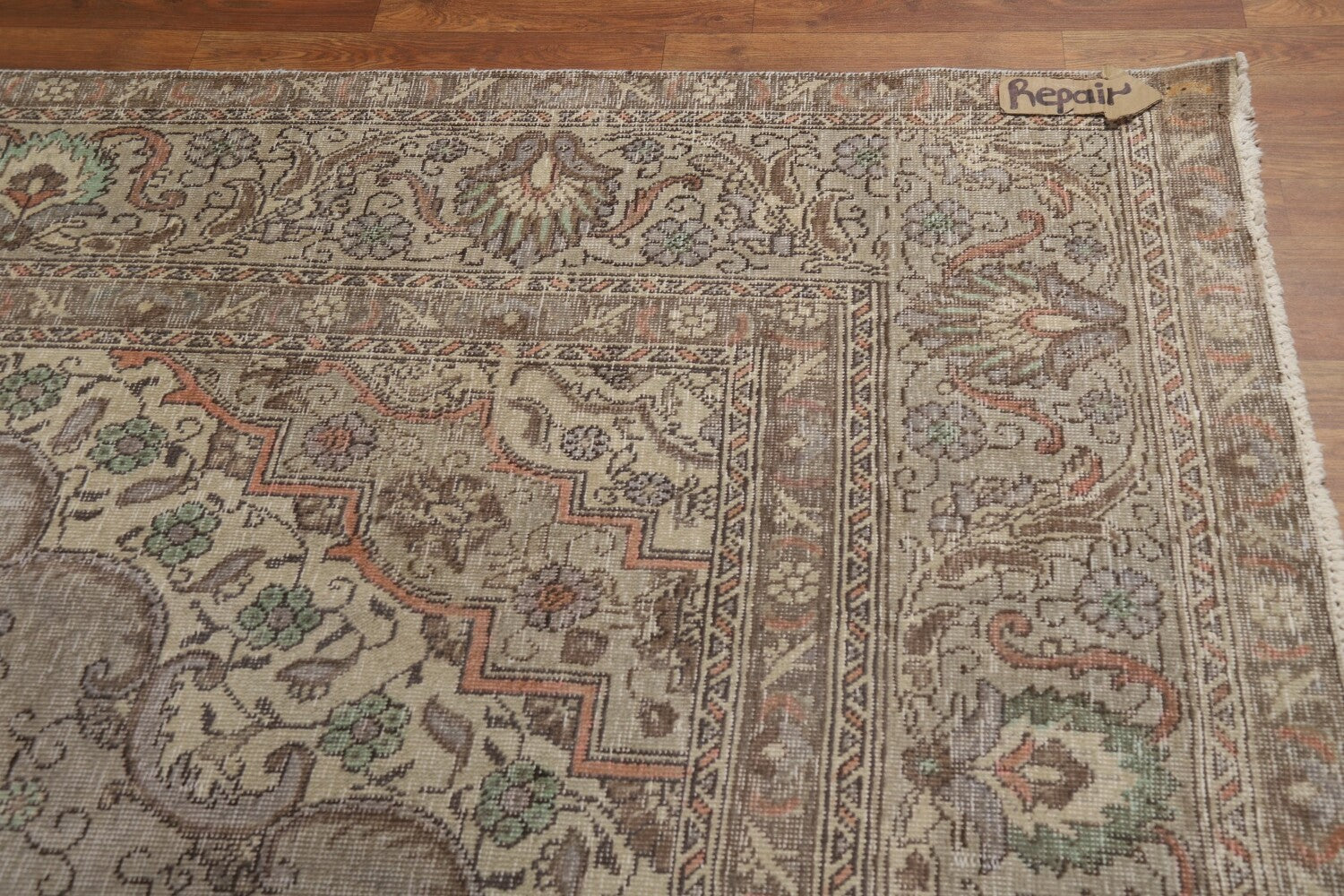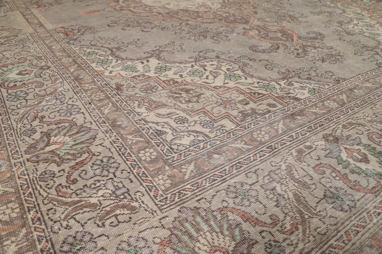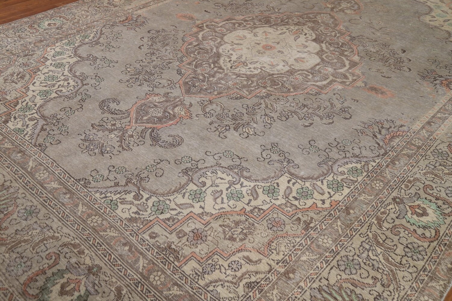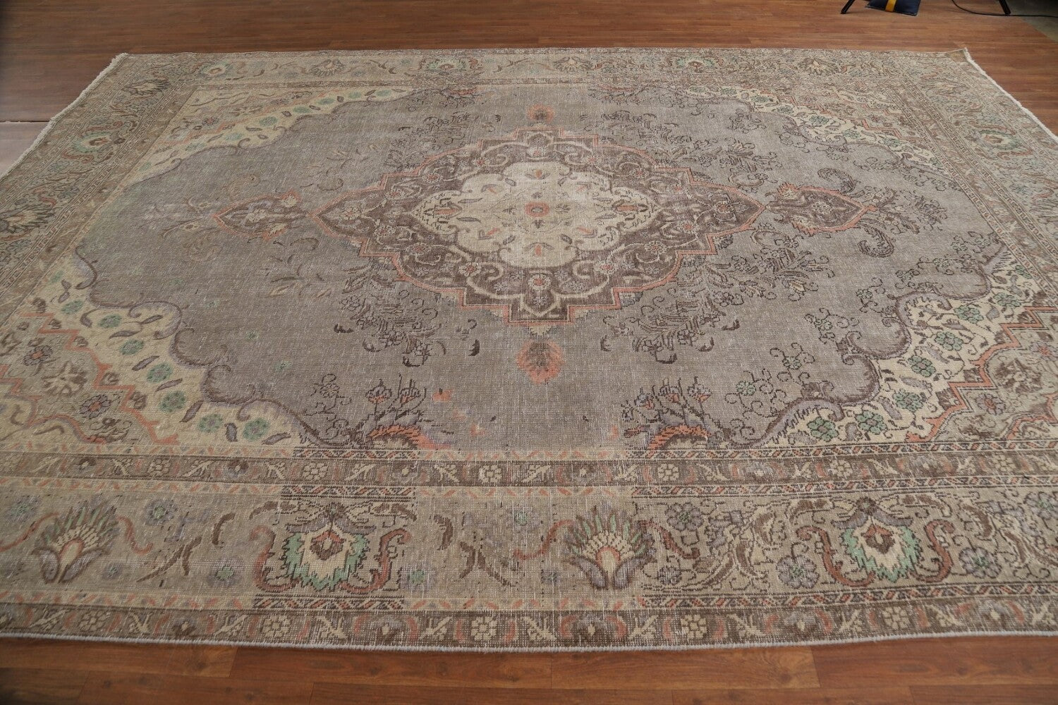 A Beautiful Genuine Persia ( Persia ) Tabriz rug is Hand Knotted by skillful weavers in Persia ( Persia ) with 100% Wool Material. This rug is in Very Good (Repair) condition. dimensions are 12' 9'' X 9' 1'' in foot and 389 X 277 in centimeter. the primary color is Greys & Charcoal.