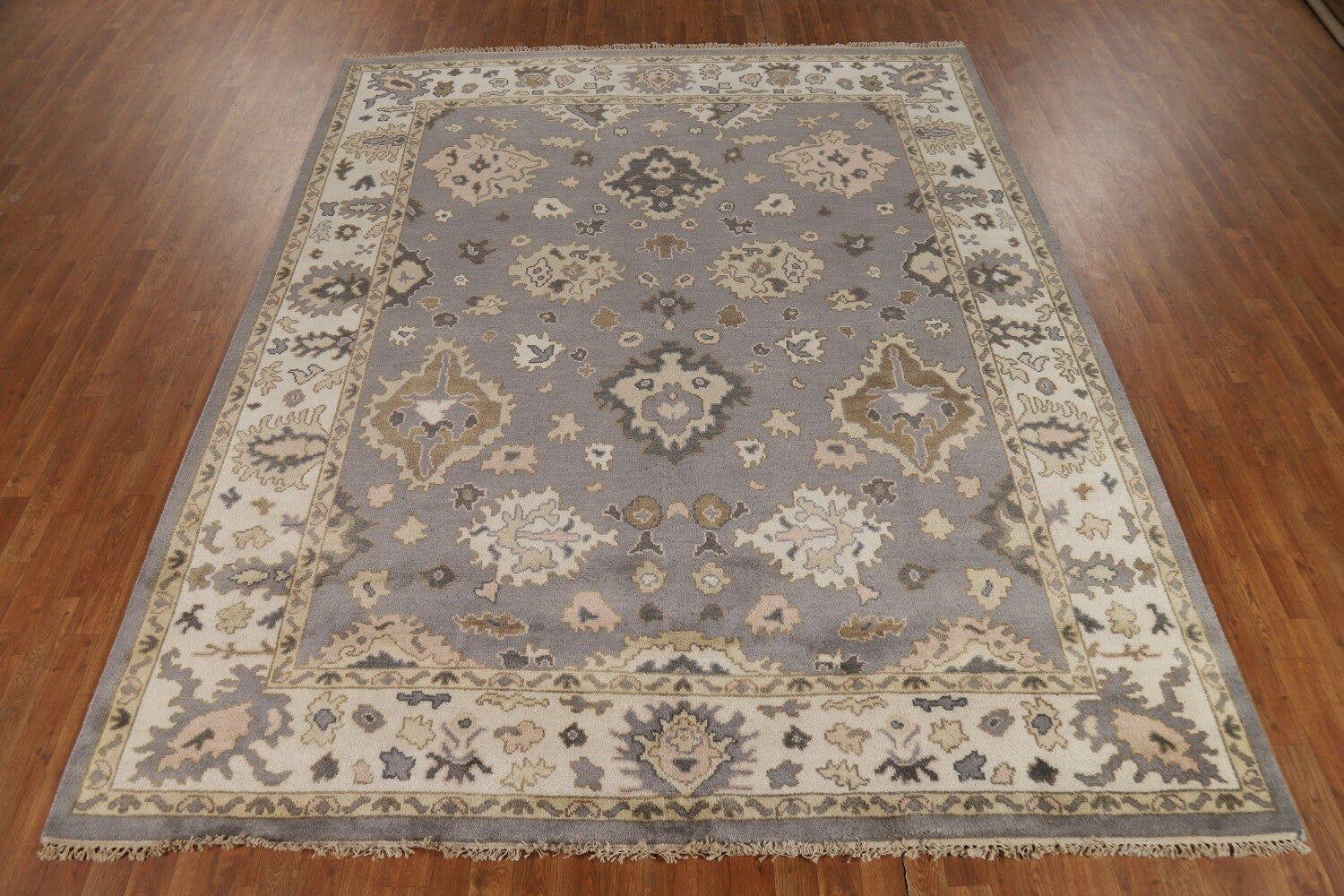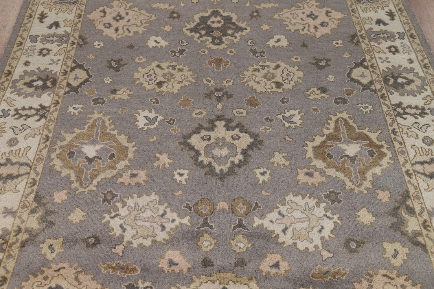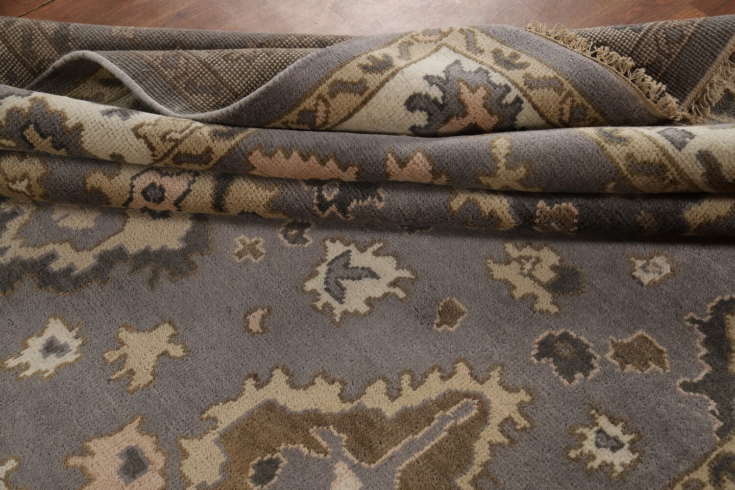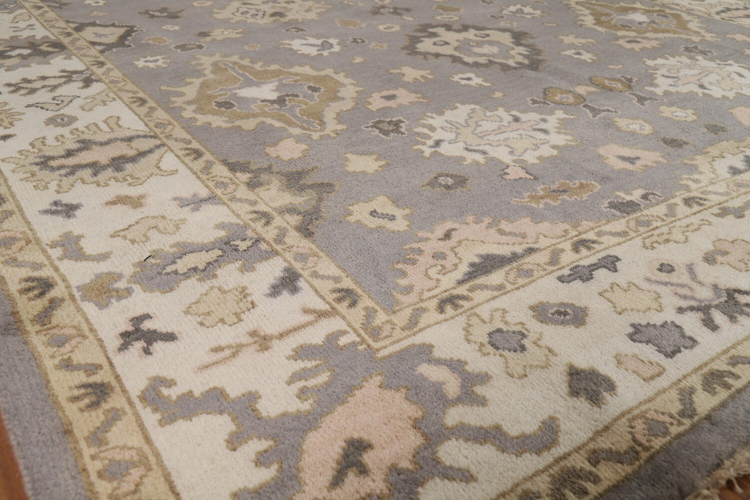 A Beautiful Genuine India Oushak rug is Hand Knotted by skillful weavers in India with 100% Wool Material. This rug is in New, First Quality condition. dimensions are 10' 1'' X 8' 4'' in foot and 307 X 254 in centimeter. the primary color is Greys & Charcoal.