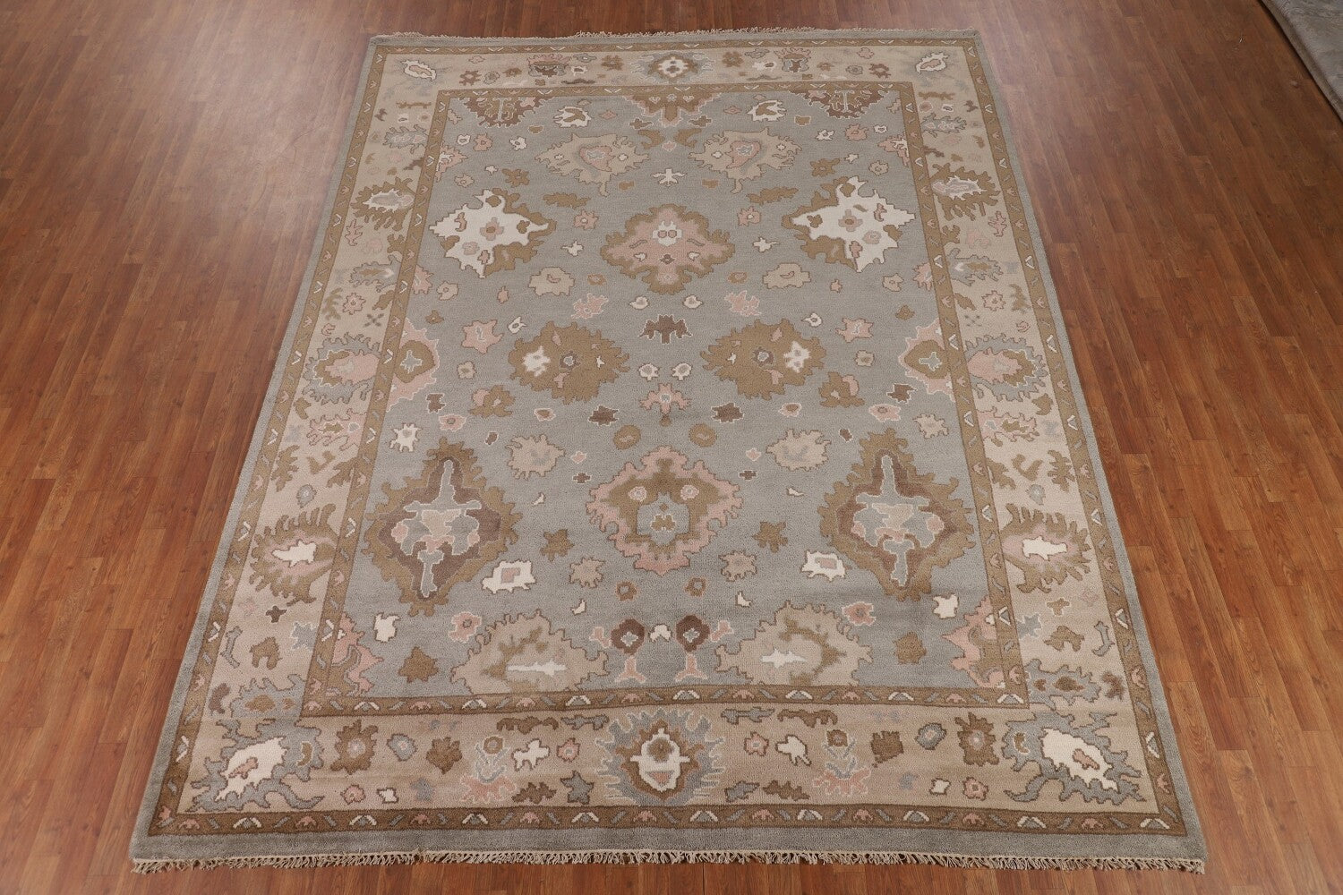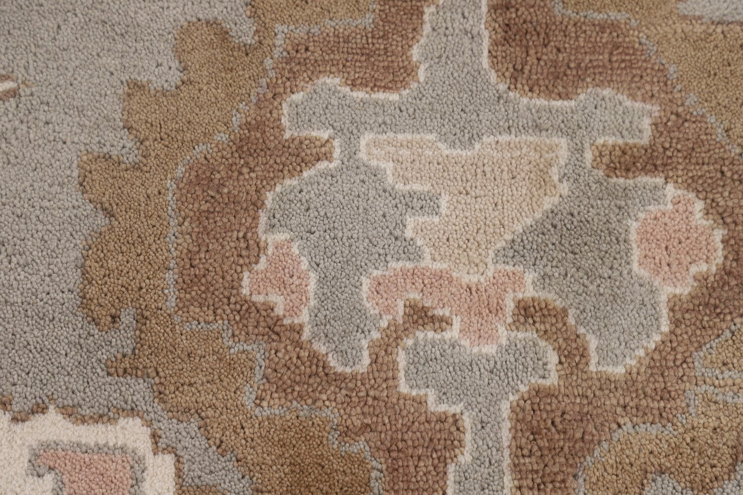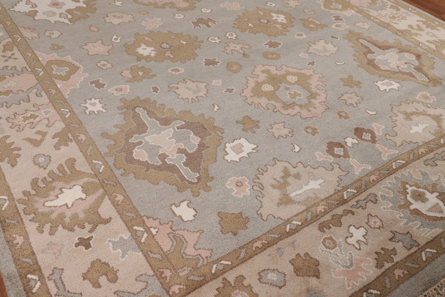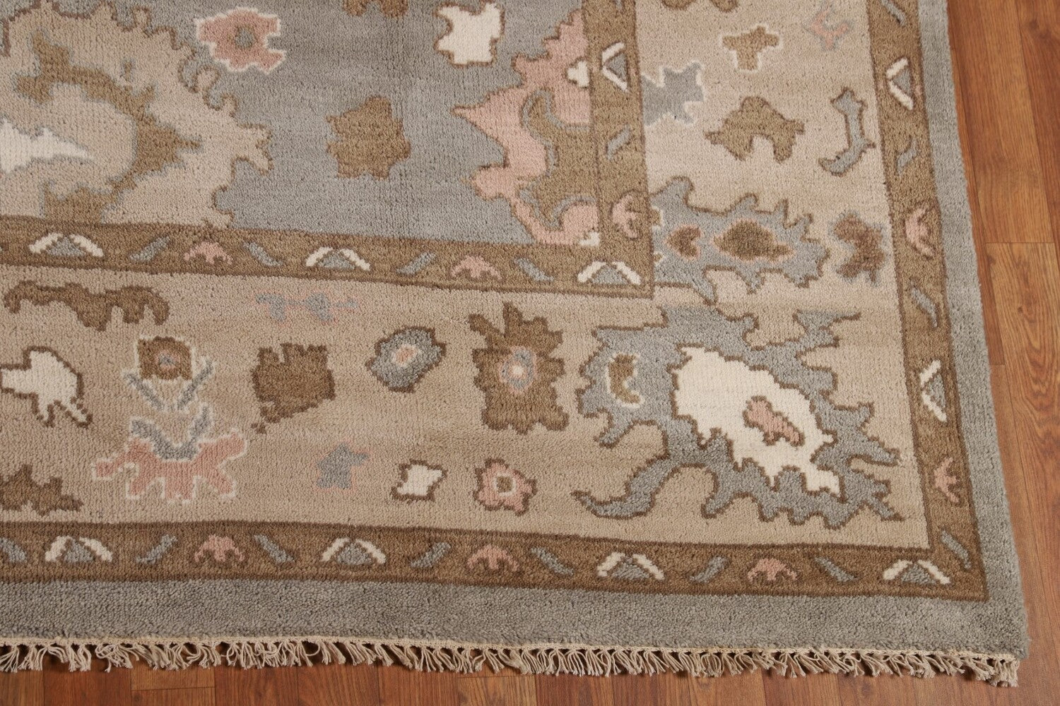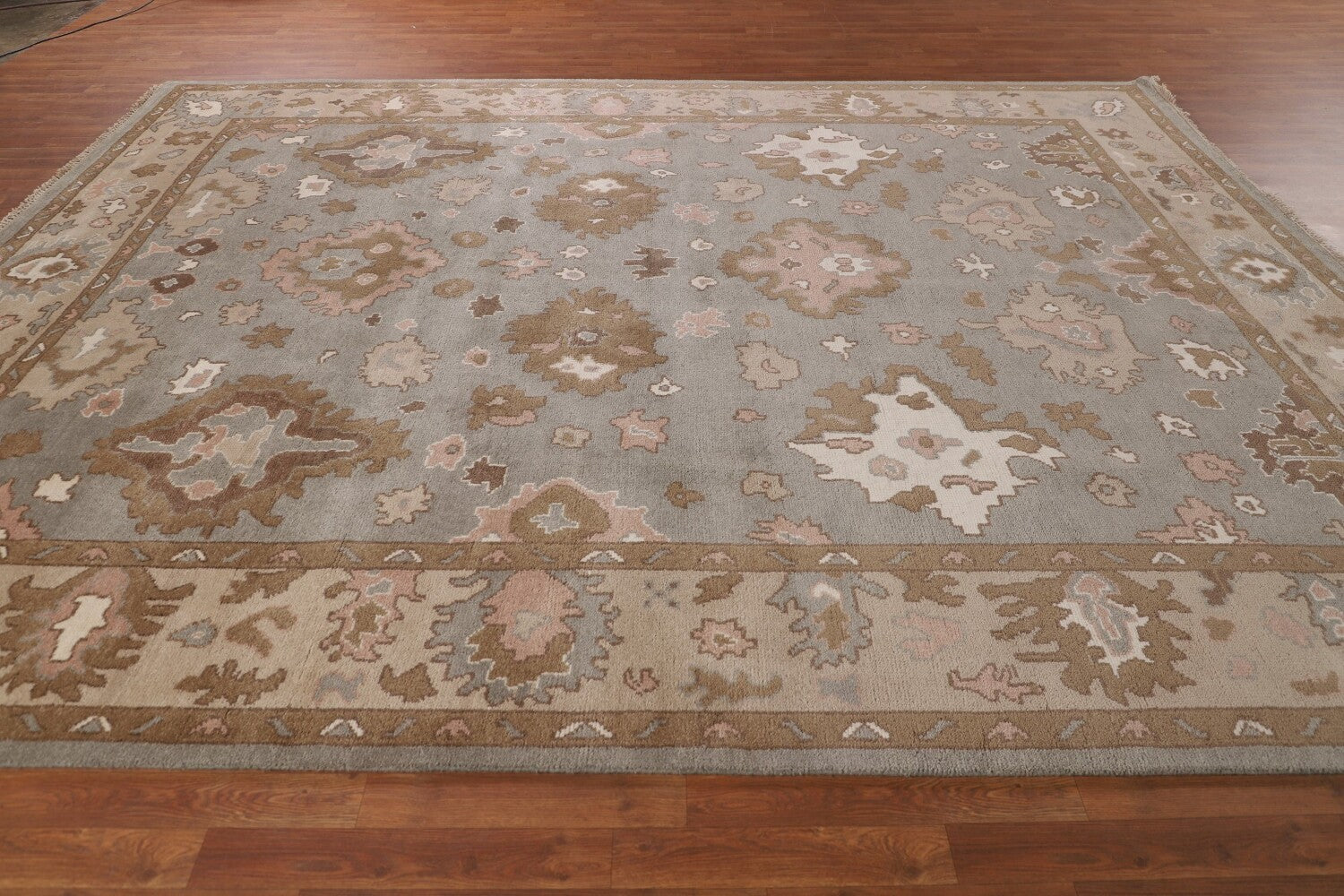 A Beautiful Genuine India Oushak rug is Hand Knotted by skillful weavers in India with 100% Wool Material. This rug is in New, First Quality condition. dimensions are 11' 7'' X 8' 9'' in foot and 353 X 267 in centimeter. the primary color is Greys & Charcoal.