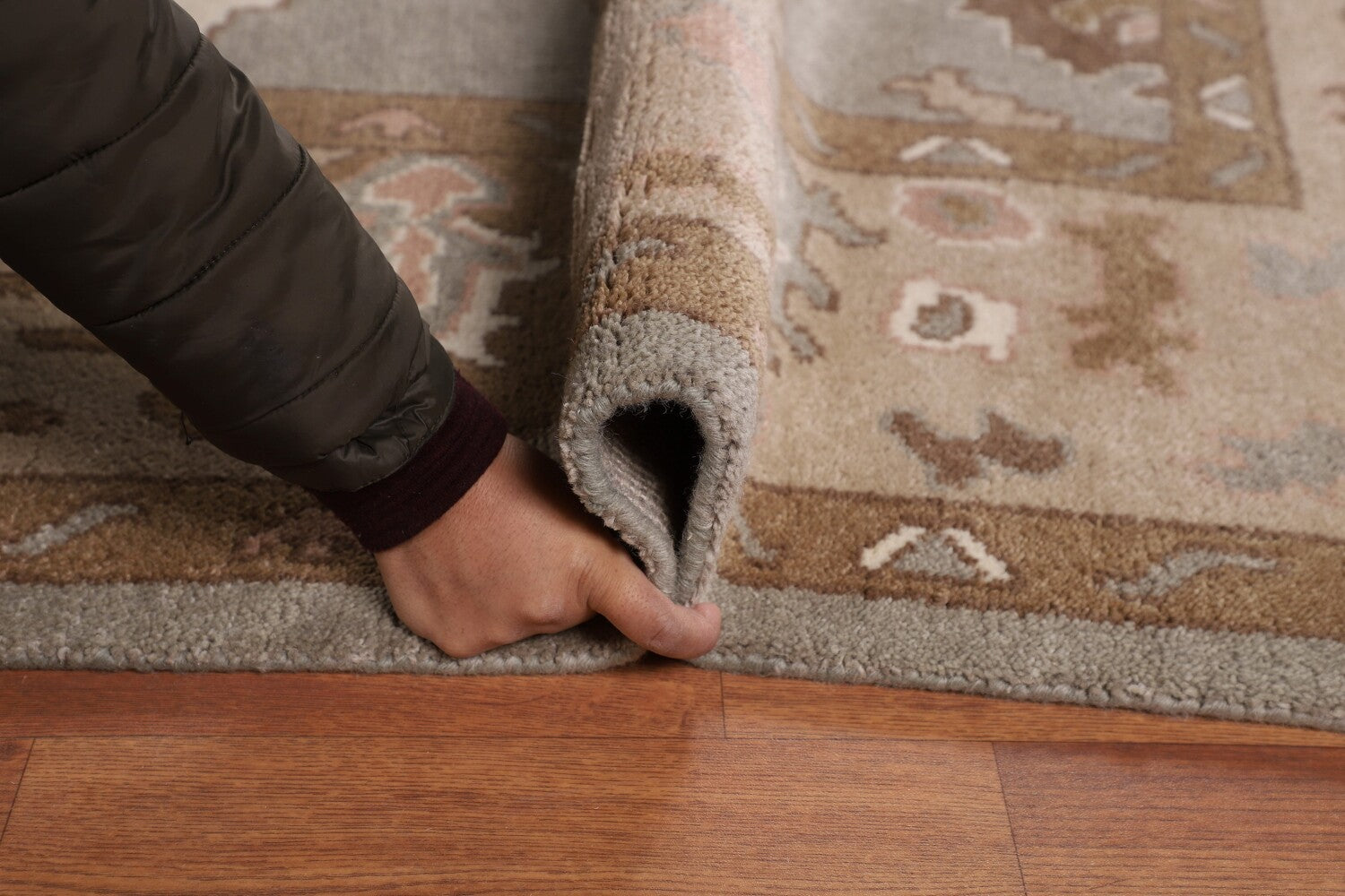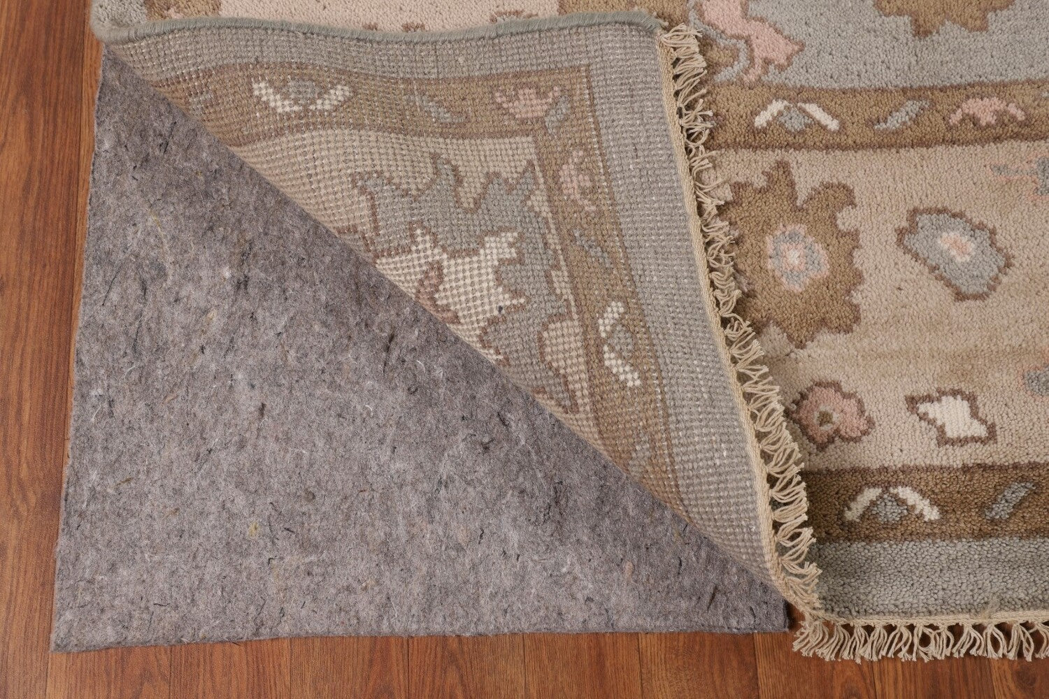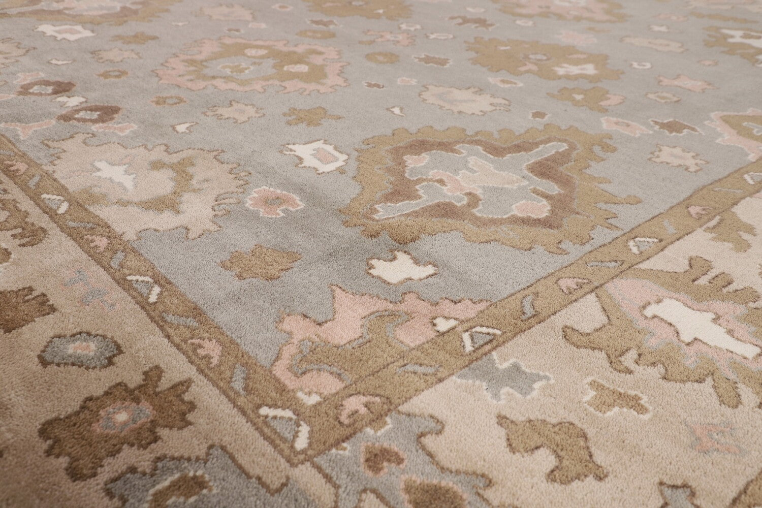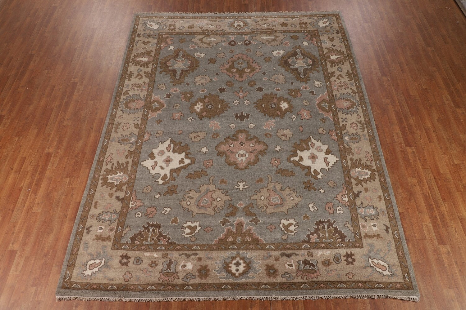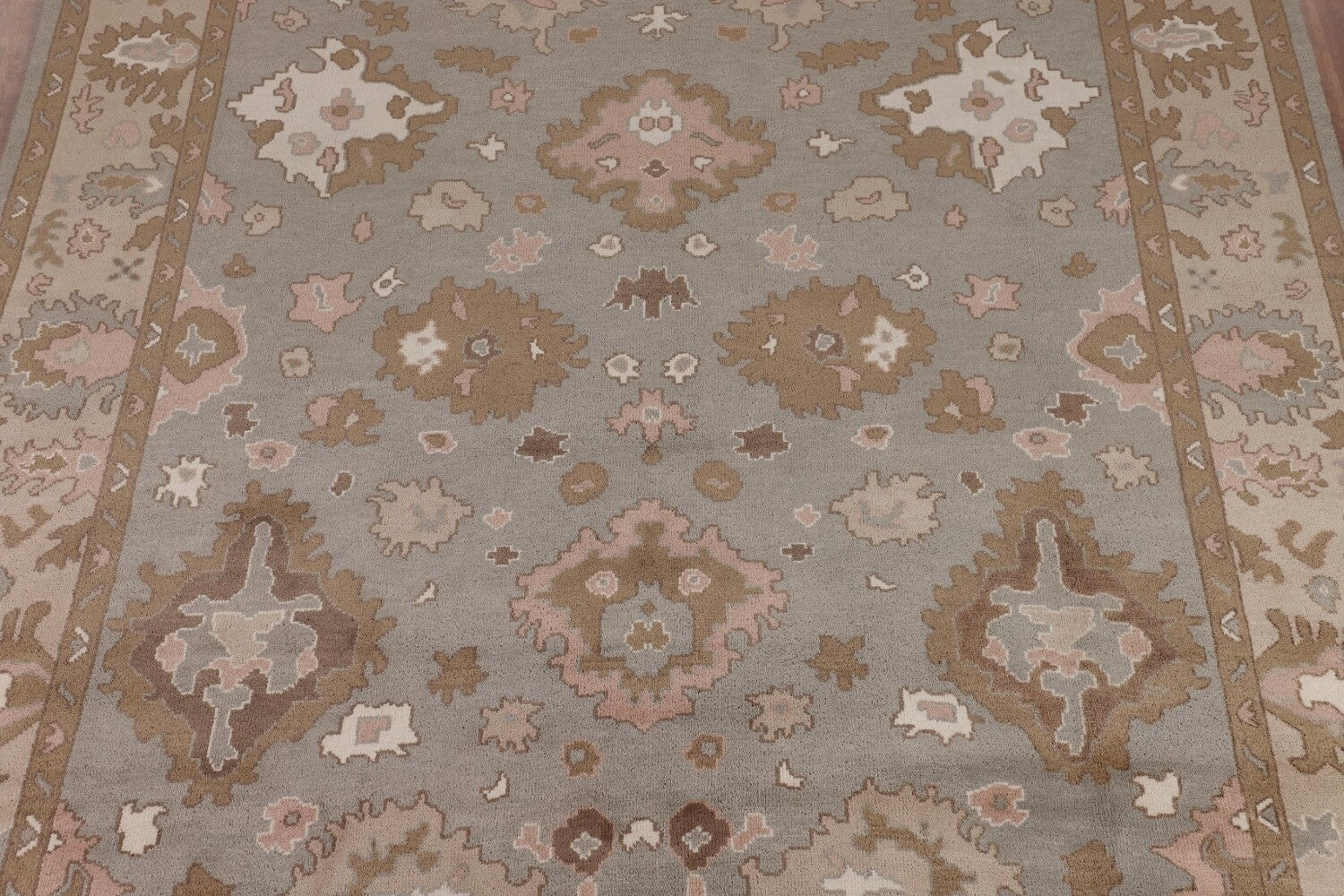 A Beautiful Genuine India Oushak rug is Hand Knotted by skillful weavers in India with 100% Wool Material. This rug is in New, First Quality condition. dimensions are 11' 7'' X 8' 9'' in foot and 353 X 267 in centimeter. the primary color is Greys & Charcoal.