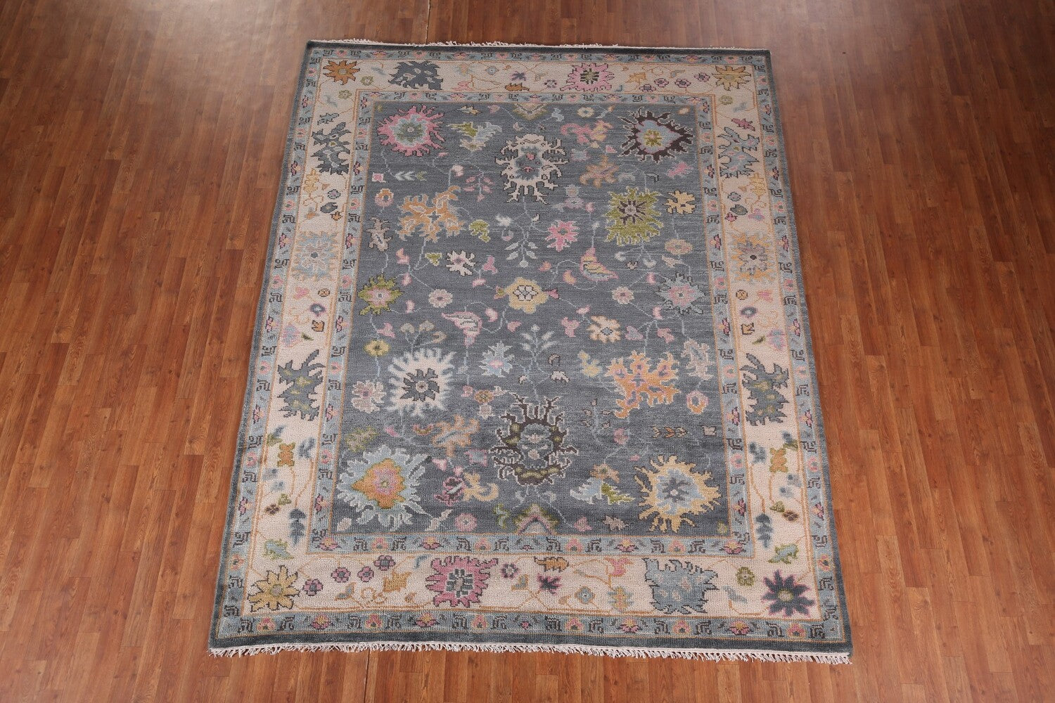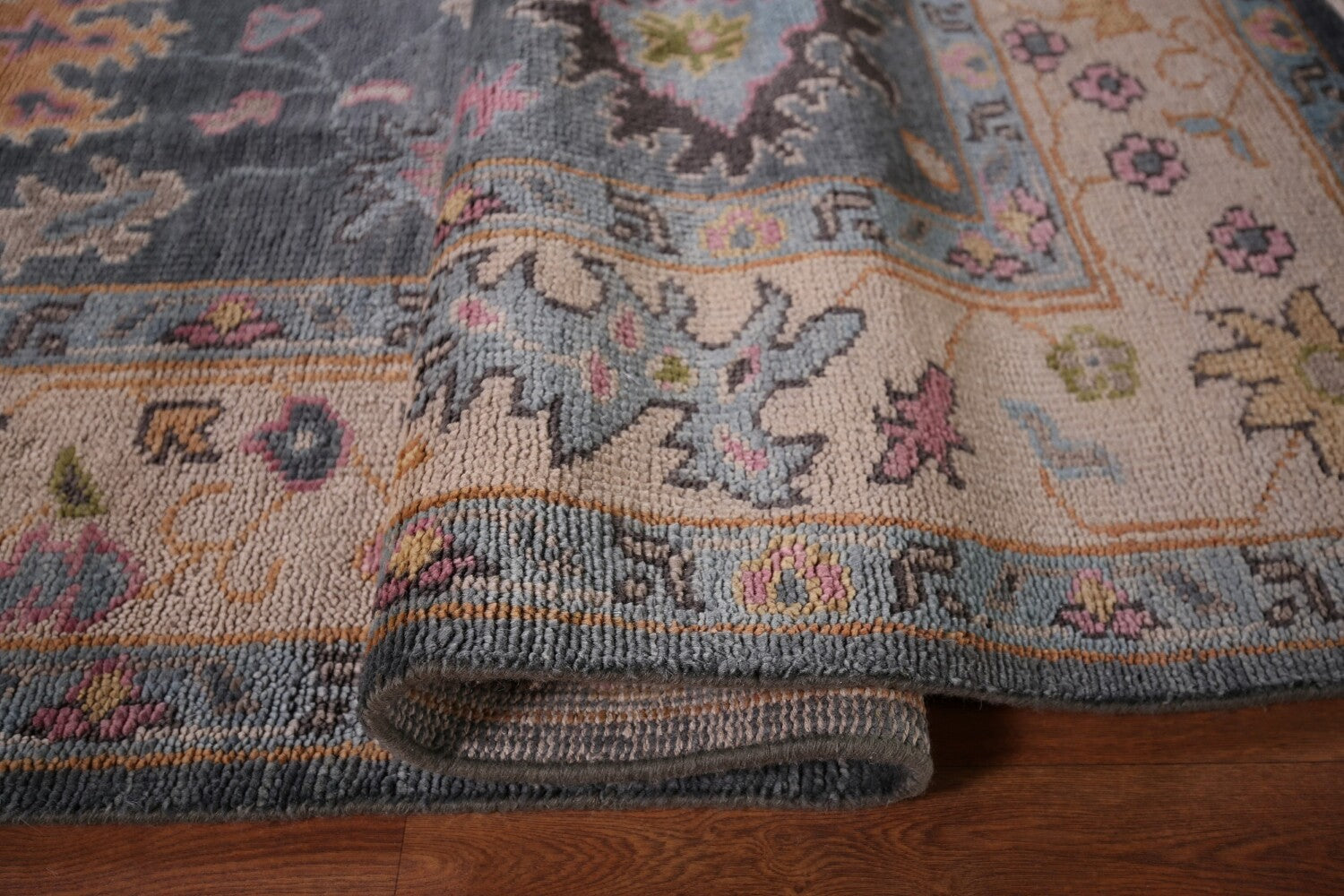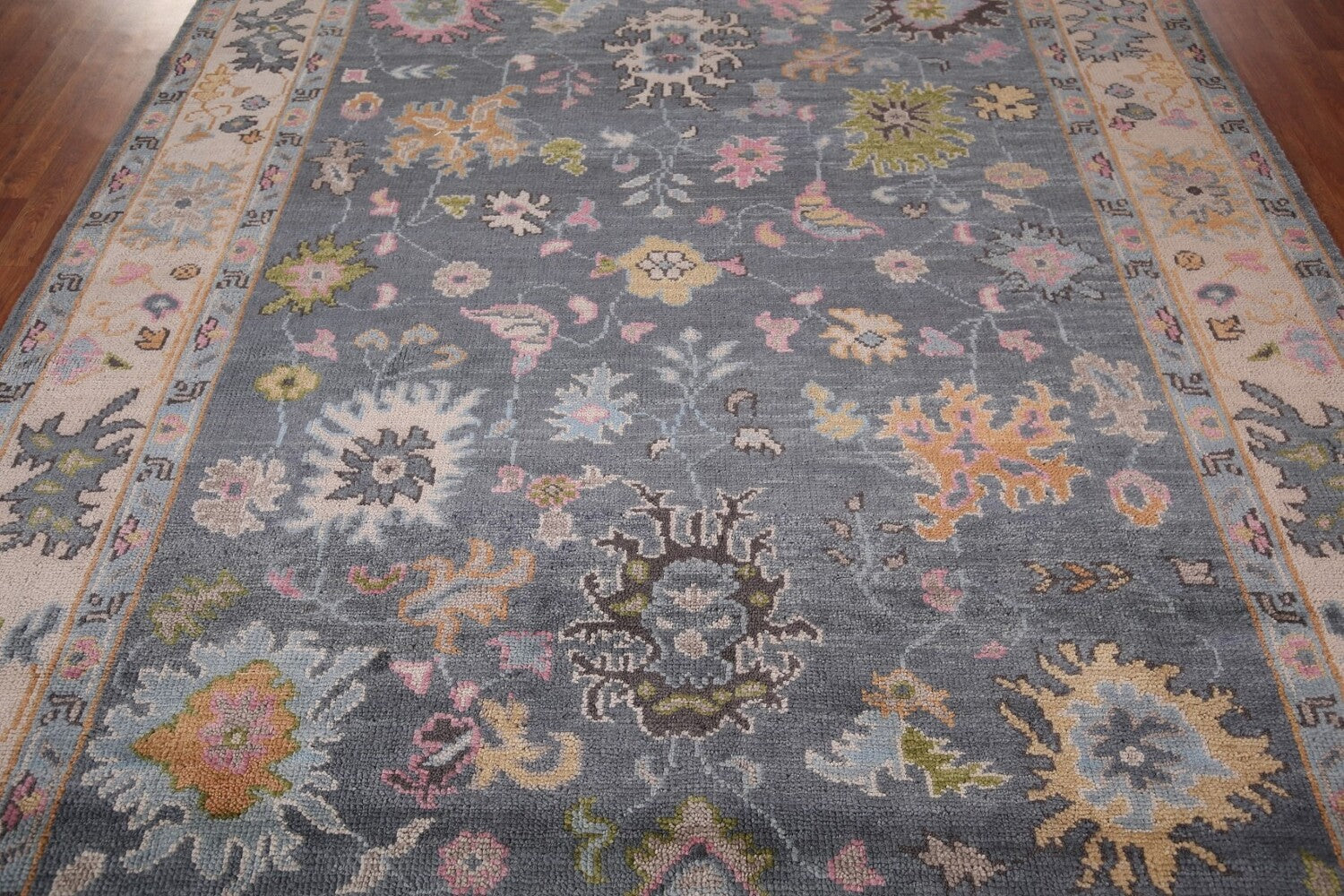 A Beautiful Genuine India Oushak rug is Hand Knotted by skillful weavers in India with 100% Wool Material. This rug is in New, First Quality condition. dimensions are 9' 10'' X 8' 0'' in foot and 300 X 244 in centimeter. the primary color is Greys & Charcoal.