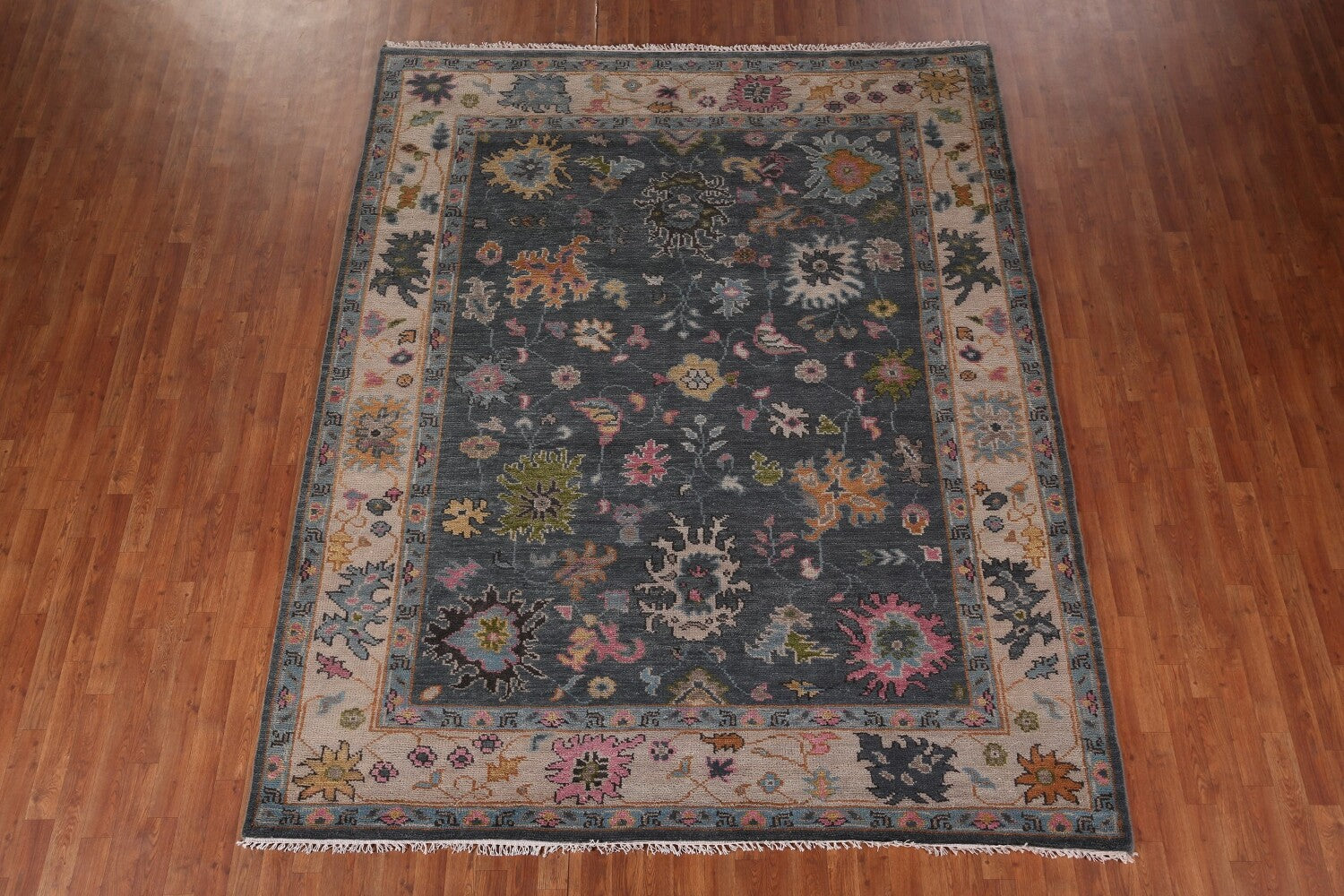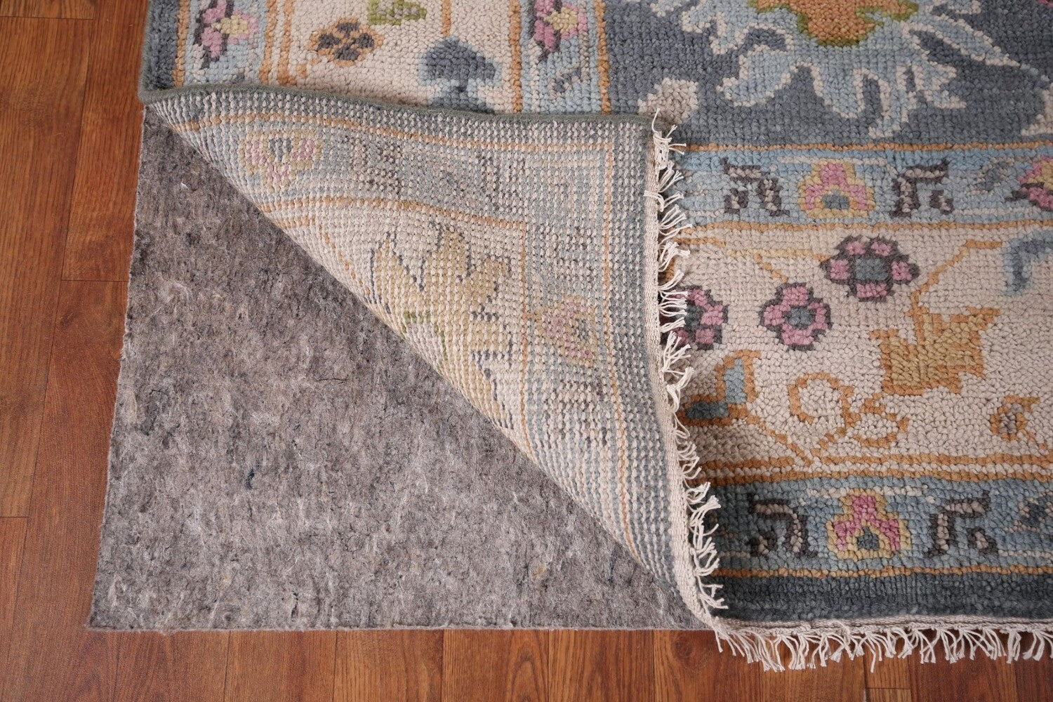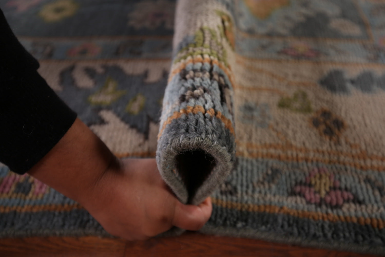 A Beautiful Genuine India Oushak rug is Hand Knotted by skillful weavers in India with 100% Wool Material. This rug is in New, First Quality condition. dimensions are 9' 10'' X 8' 0'' in foot and 300 X 244 in centimeter. the primary color is Greys & Charcoal.
