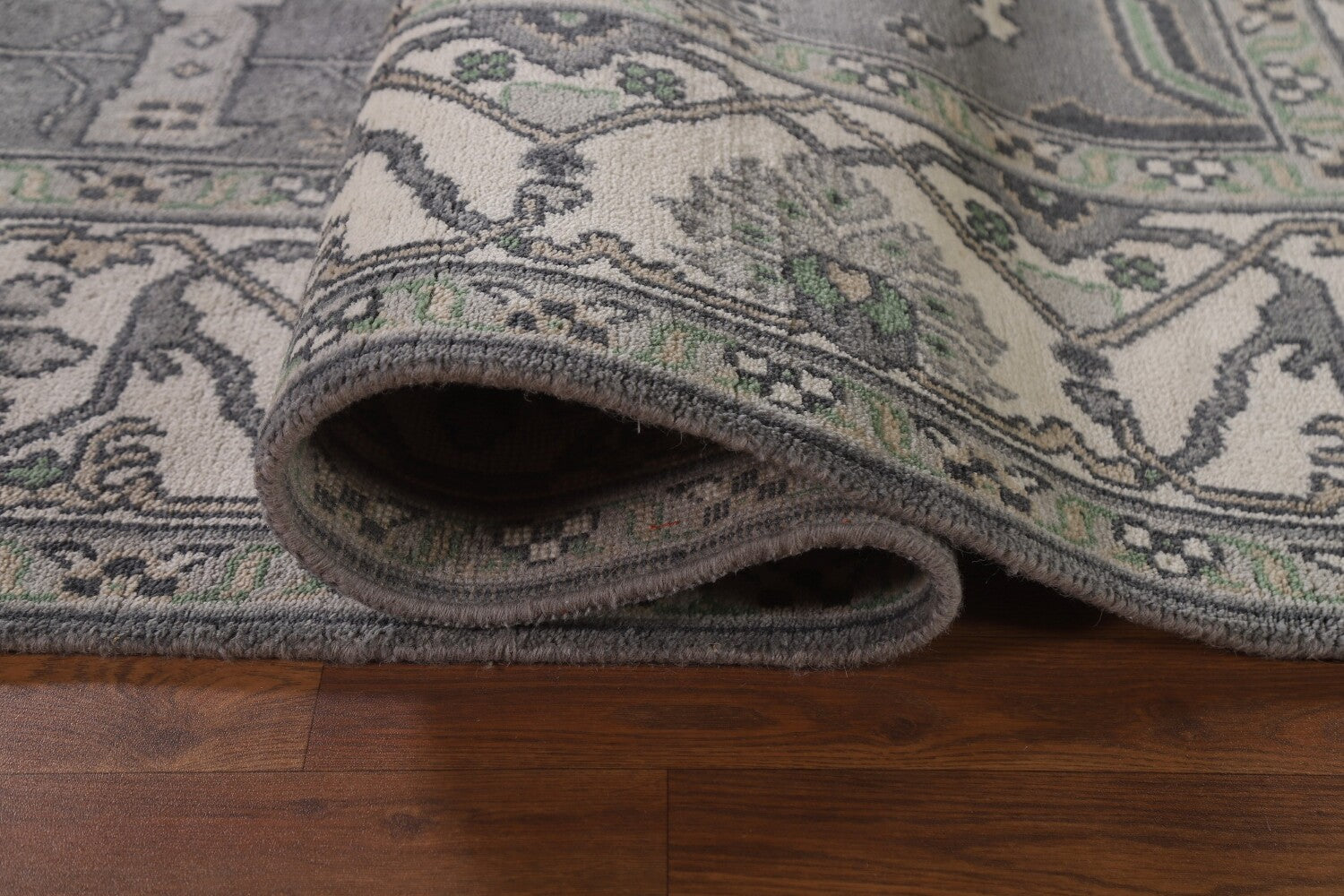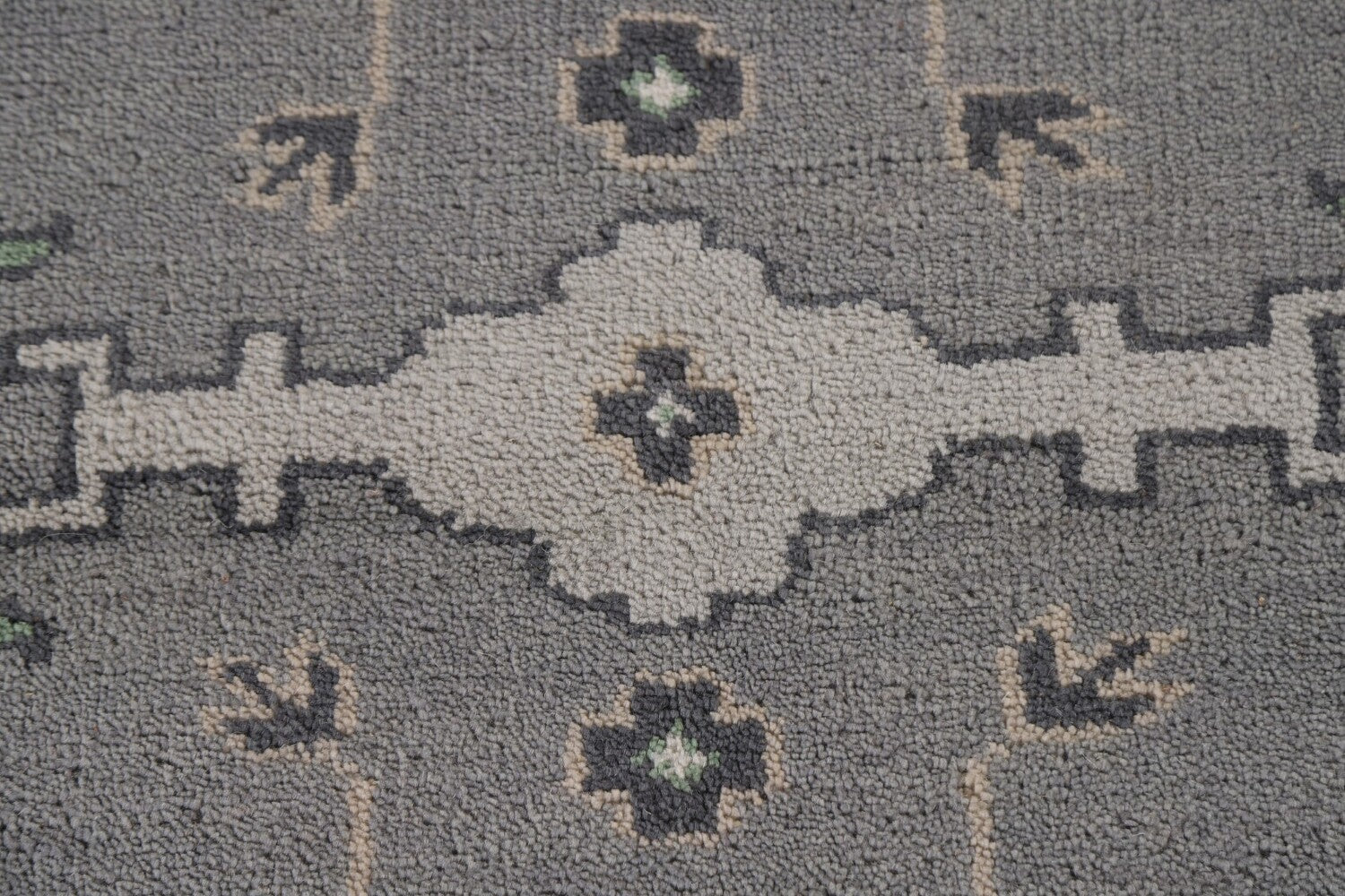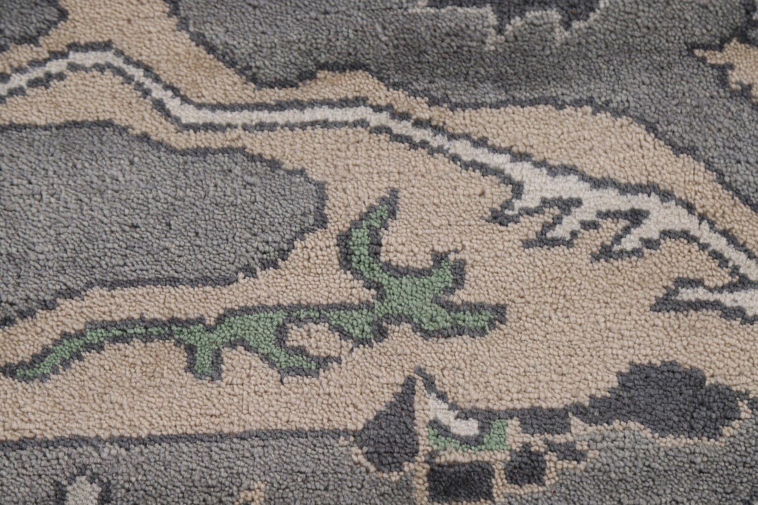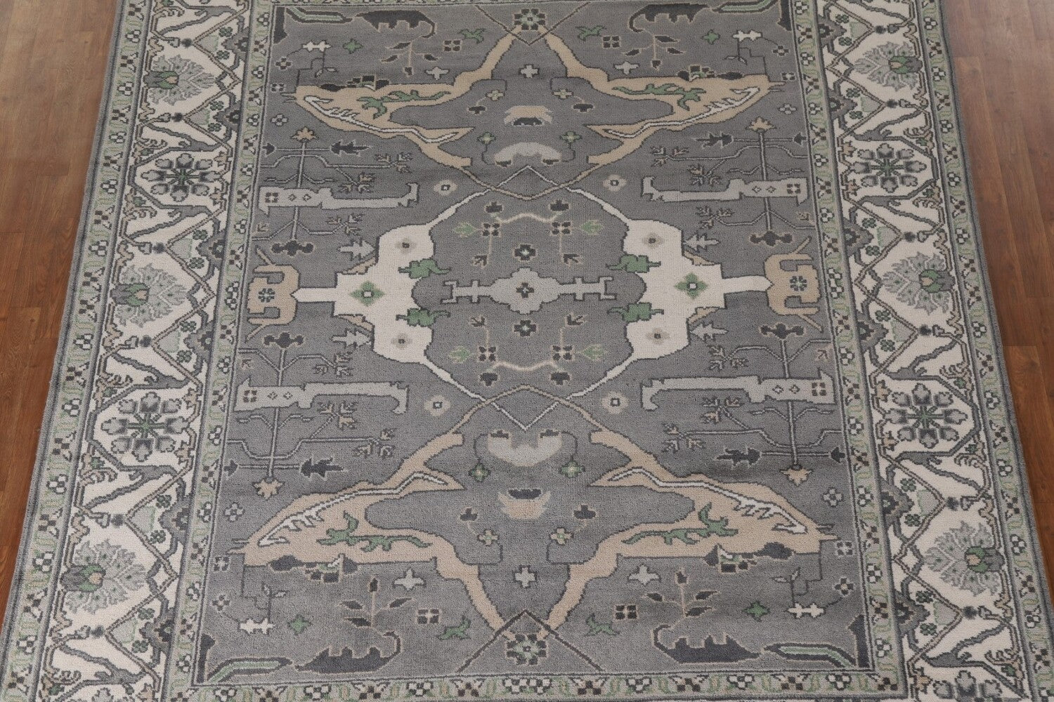A Beautiful Genuine India Oushak rug is Hand Knotted by skillful weavers in India with 100% Wool Material. This rug is in New, First Quality condition. dimensions are 9' 10'' X 8' 2'' in foot and 300 X 249 in centimeter. the primary color is Greys & Charcoal.