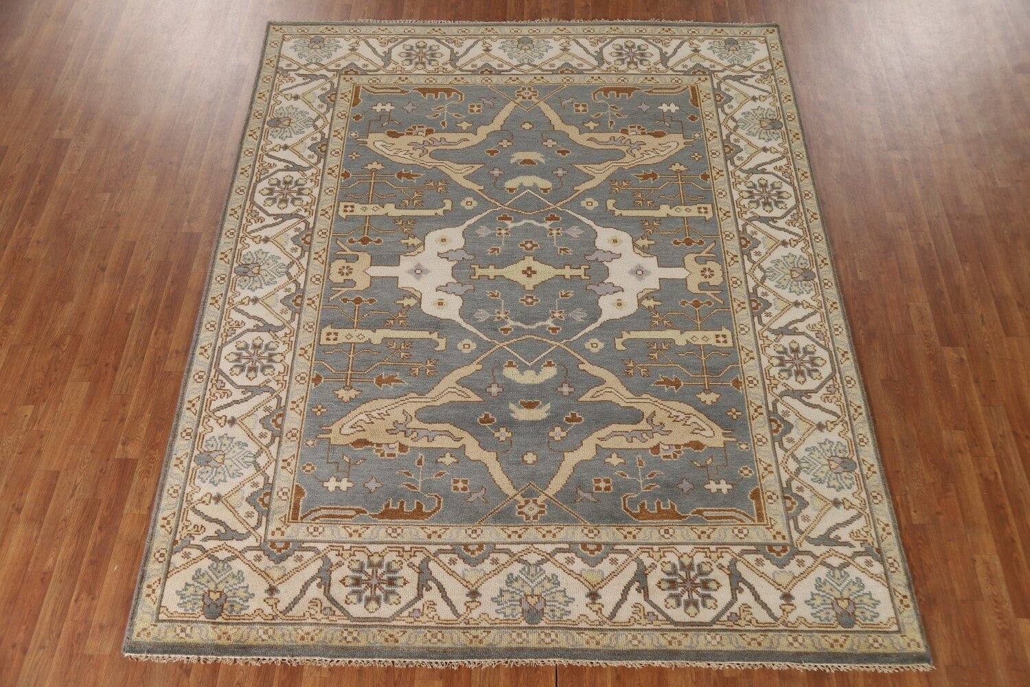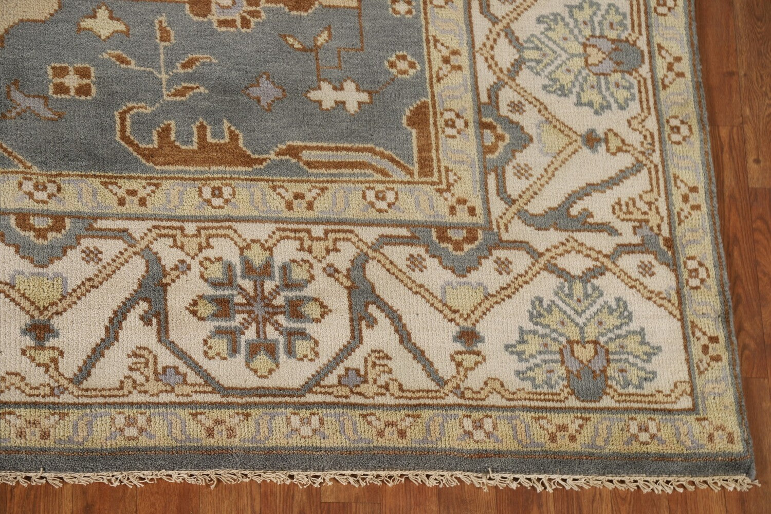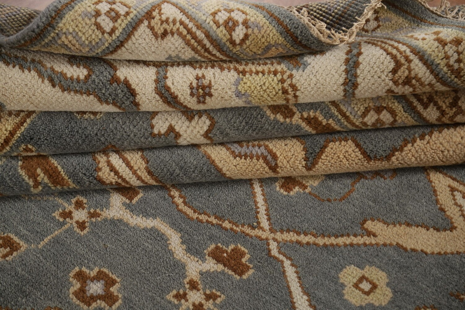 A Beautiful Genuine India Oushak rug is Hand Knotted by skillful weavers in India with 100% Wool Material. This rug is in New, First Quality condition. dimensions are 9' 8'' X 7' 11'' in foot and 295 X 241 in centimeter. the primary color is Greys & Charcoal.