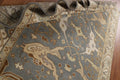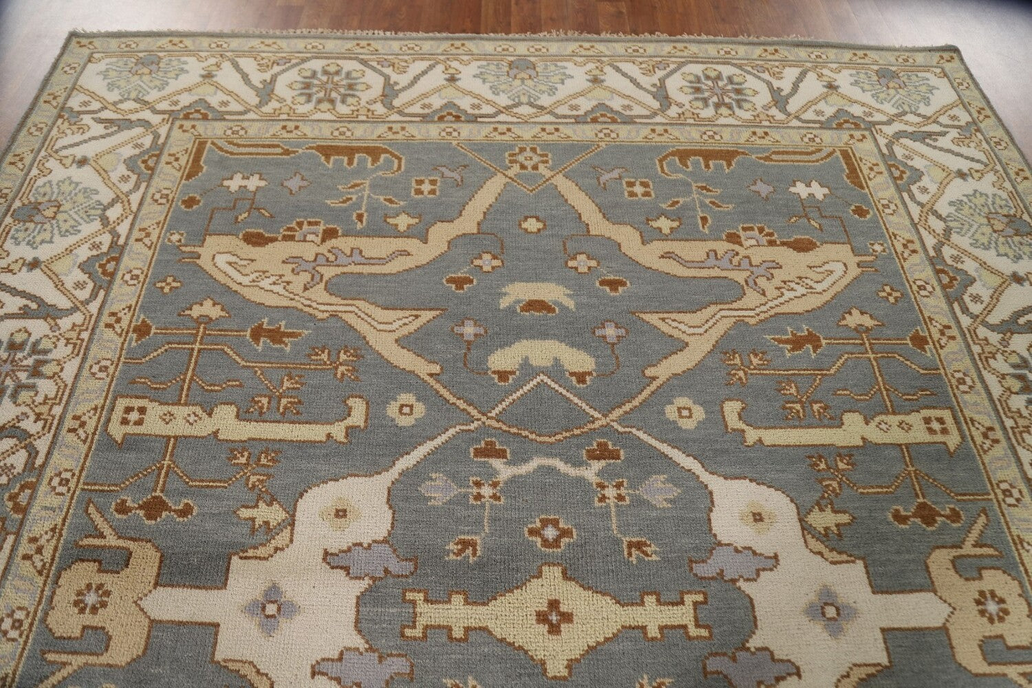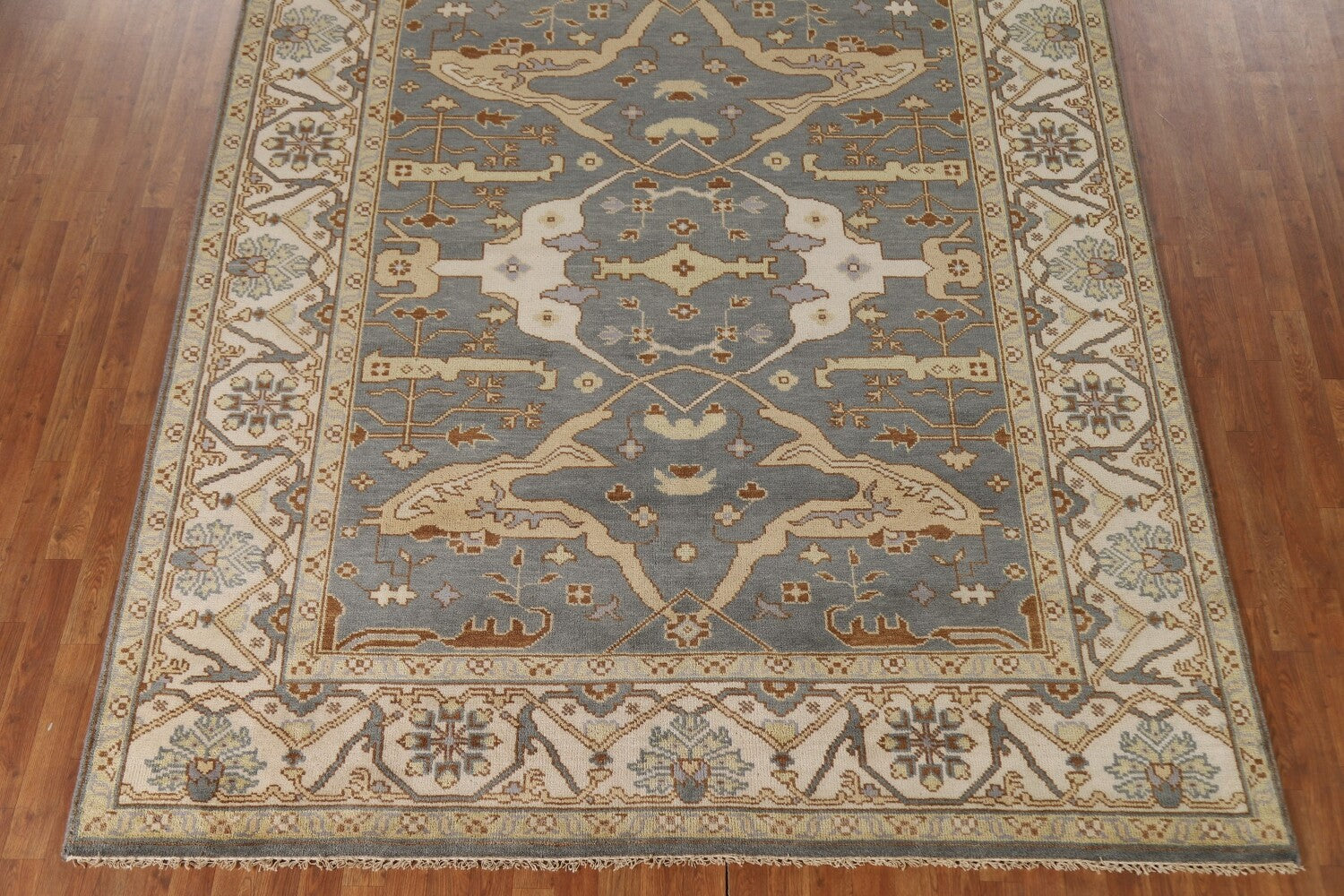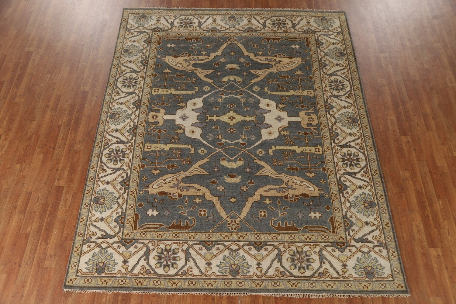 A Beautiful Genuine India Oushak rug is Hand Knotted by skillful weavers in India with 100% Wool Material. This rug is in New, First Quality condition. dimensions are 9' 8'' X 7' 11'' in foot and 295 X 241 in centimeter. the primary color is Greys & Charcoal.