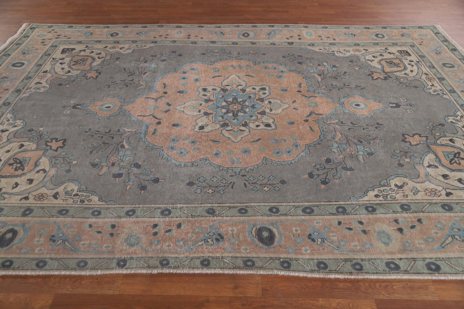 A Beautiful Genuine Persia ( Persia ) Tabriz rug is Hand Knotted by skillful weavers in Persia ( Persia ) with 100% Wool Material. This rug is in Very Good (Evenly Low Pile) condition. dimensions are 9' 7'' X 6' 9'' in foot and 292 X 206 in centimeter. the primary color is Greys & Charcoal.