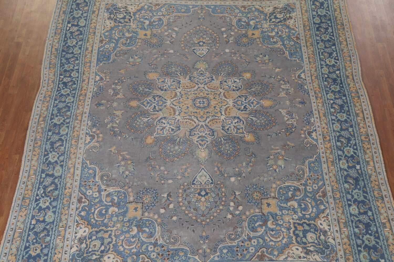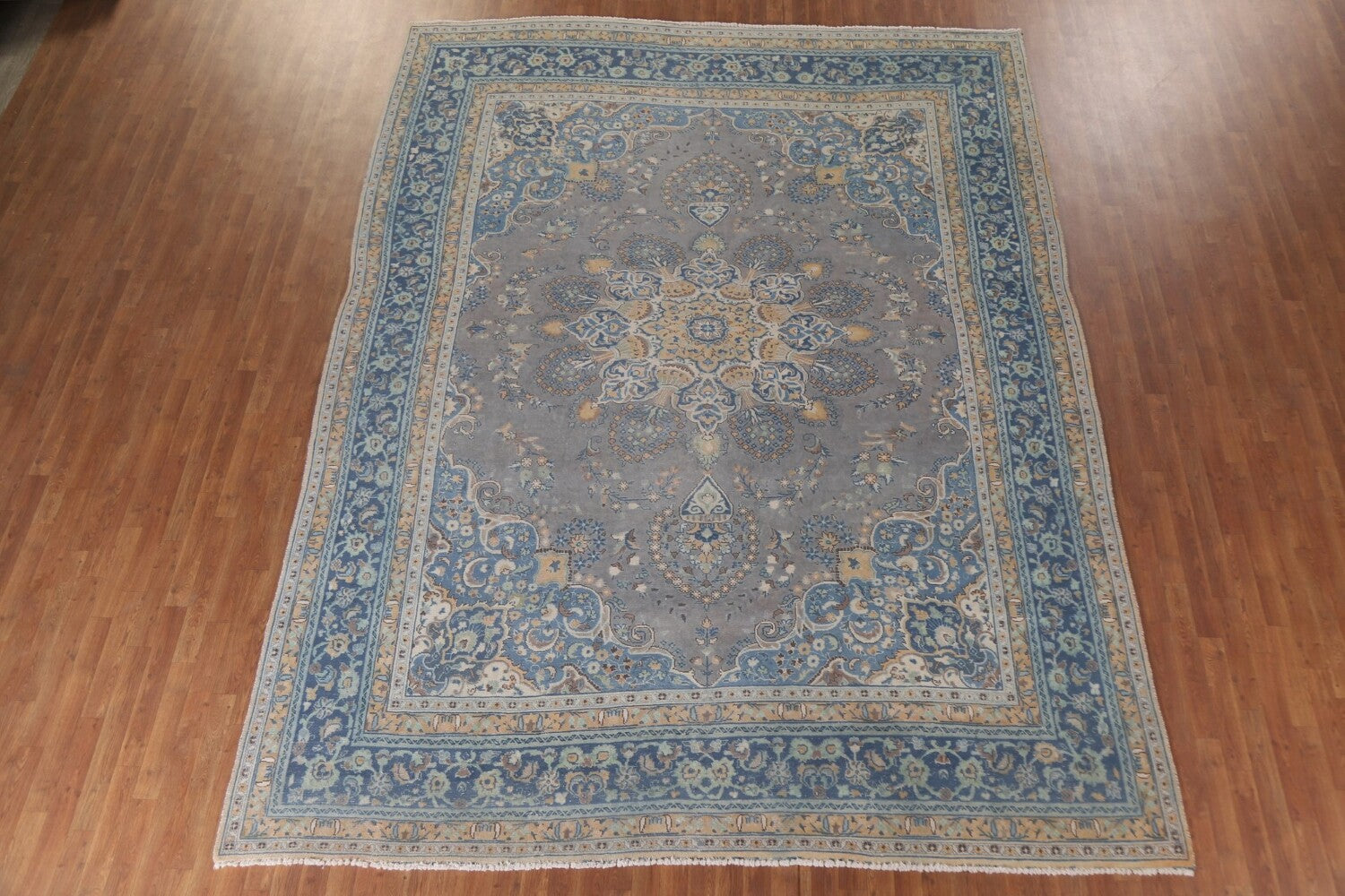 A Beautiful Genuine Persia ( Persia ) Mashad rug is Hand Knotted by skillful weavers in Persia ( Persia ) with 100% Wool Material. This rug is in Very Good (Evenly Low Pile) condition. dimensions are 12' 10'' X 9' 10'' in foot and 391 X 300 in centimeter. the primary color is Greys & Charcoal.