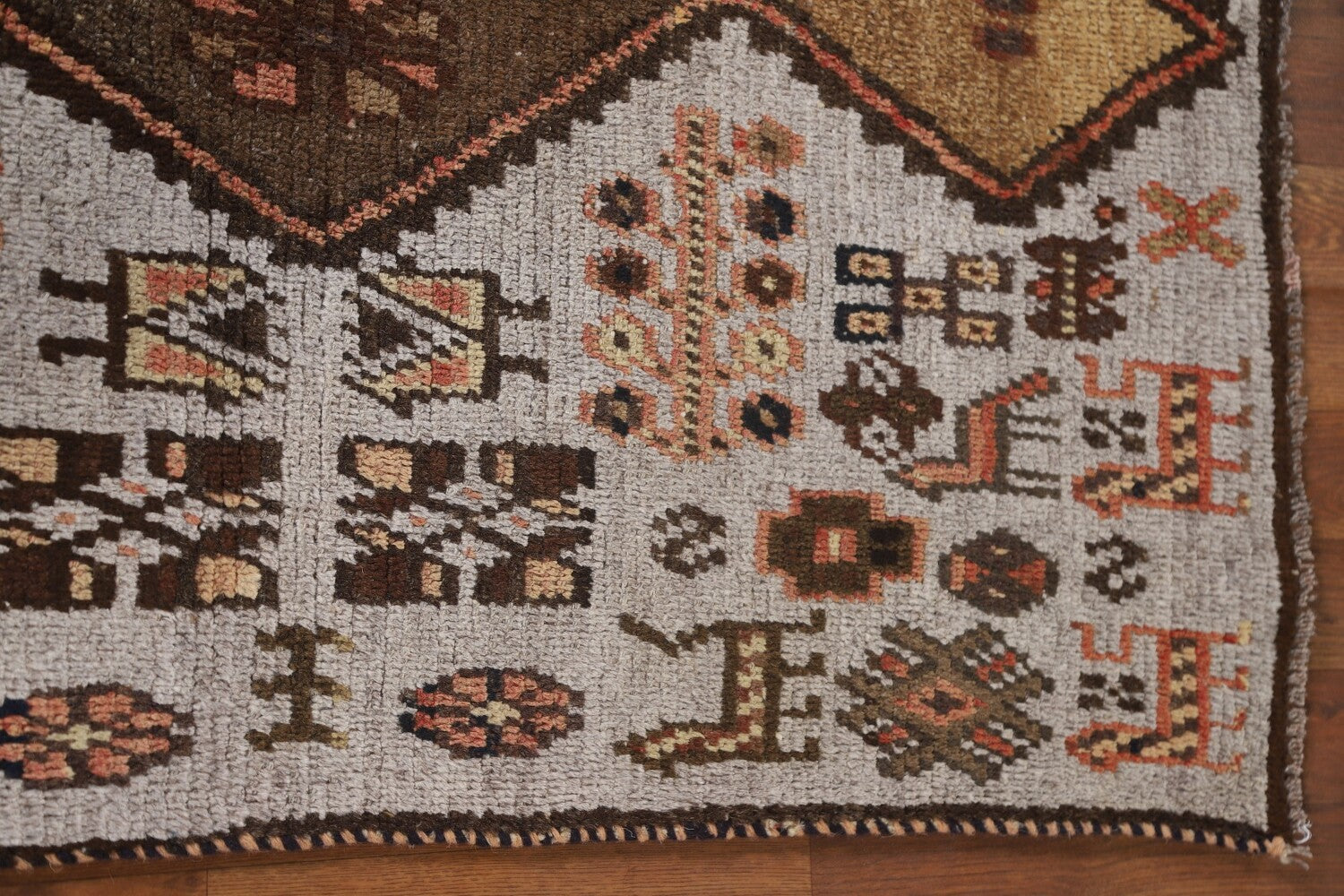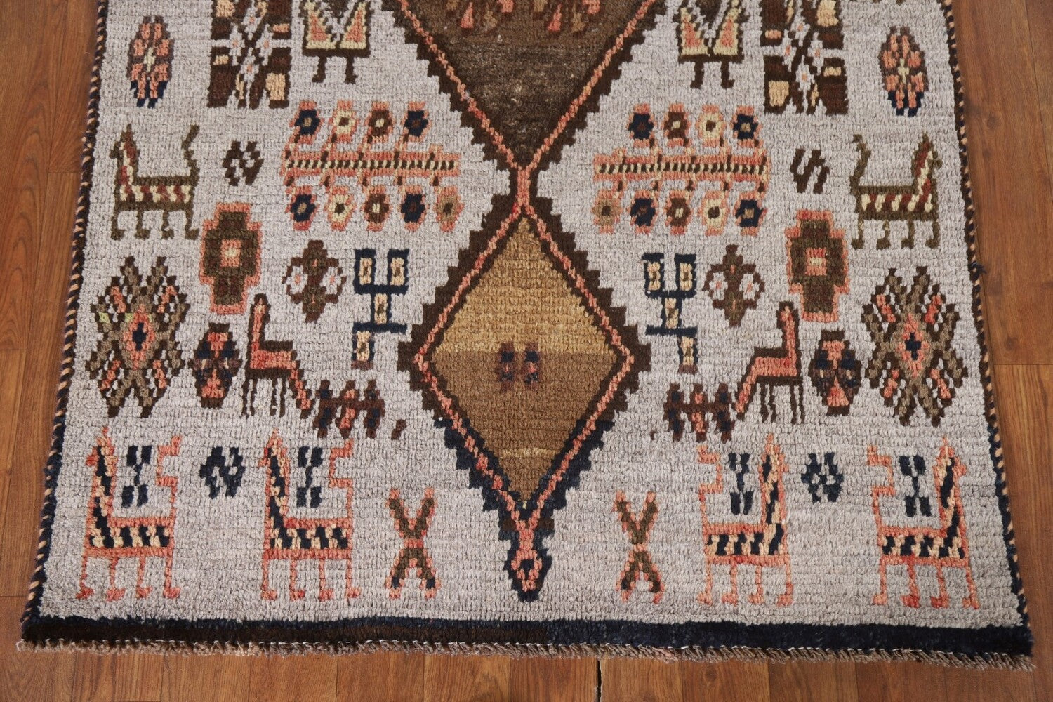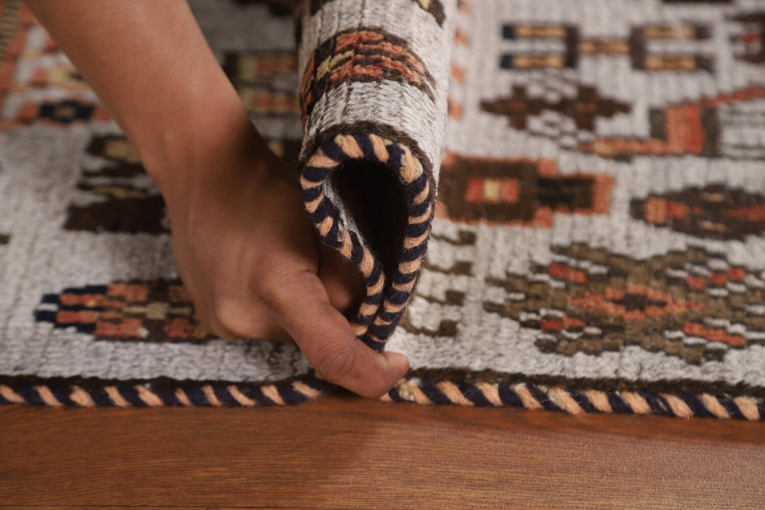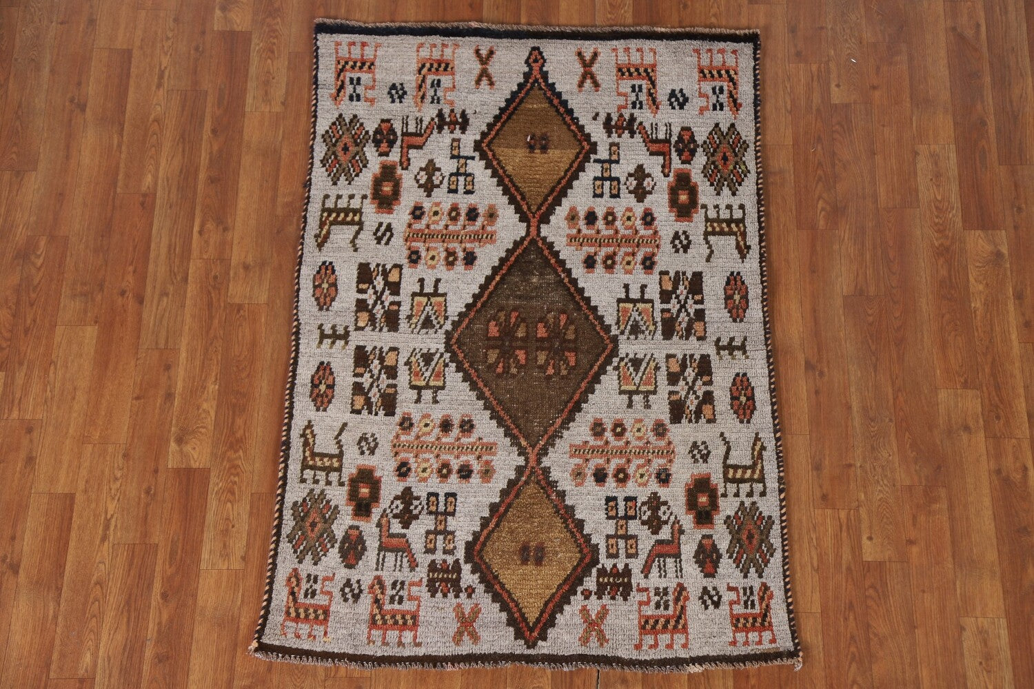 A Beautiful Genuine Persia ( Persia ) Gabbeh rug is Hand Knotted by skillful weavers in Persia ( Persia ) with 100% Wool Material. This rug is in Very Good (Low Pile-Abrash) condition. dimensions are 4' 7'' X 3' 2'' in foot and 140 X 97 in centimeter. the primary color is Greys & Charcoal.