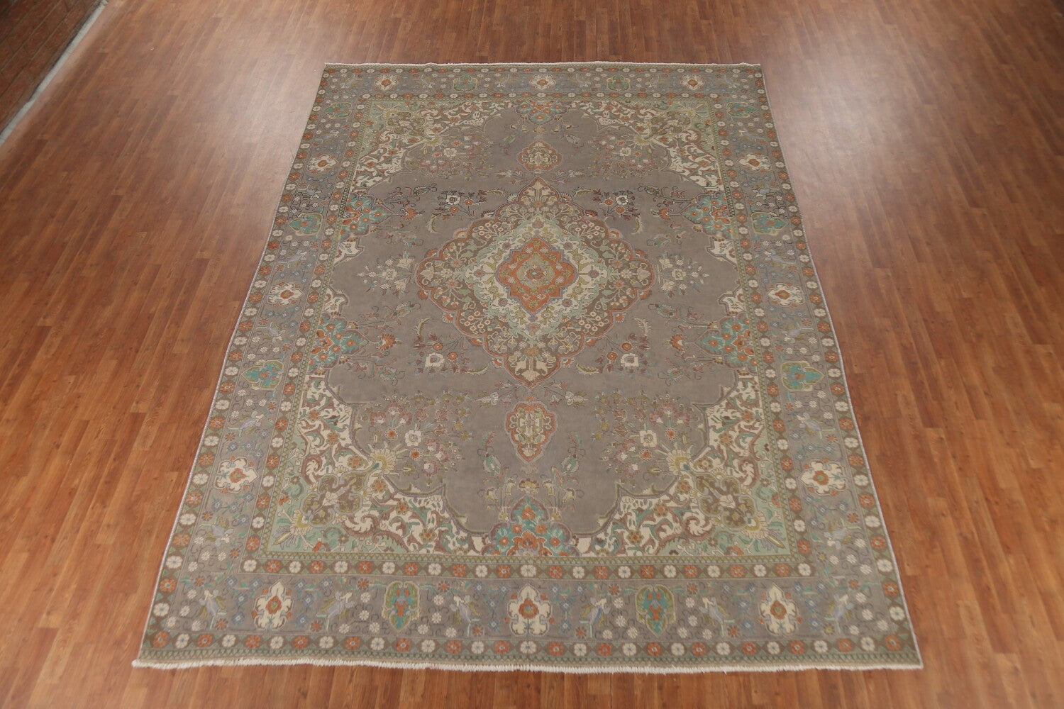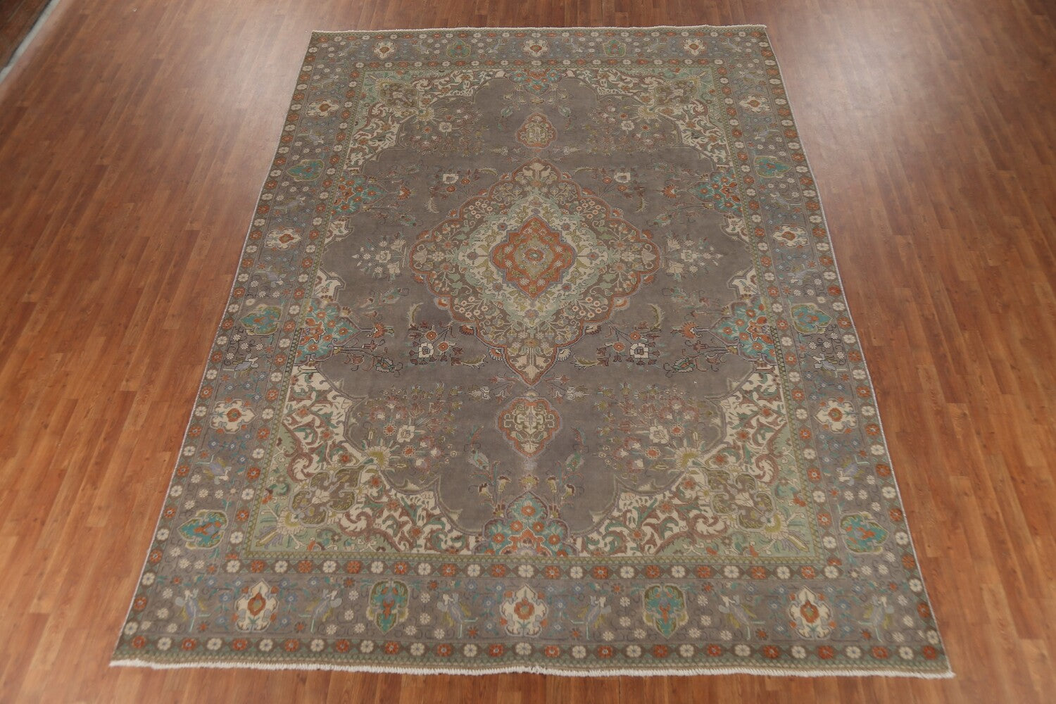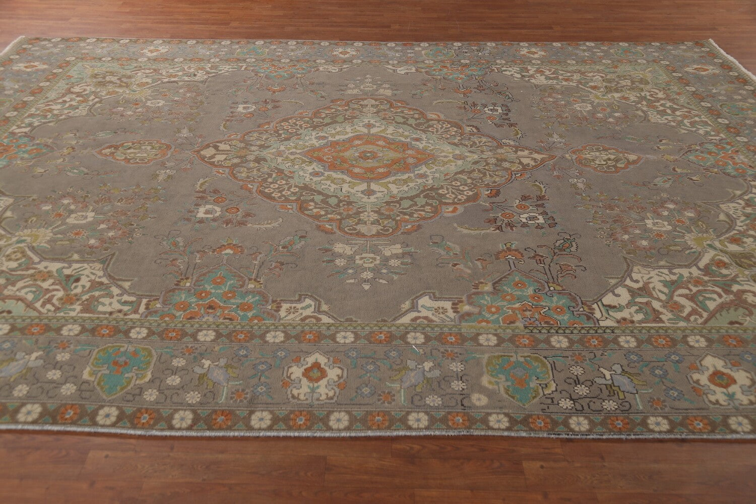 Gray Wool Distressed Tabriz Persian Area Rug 10x13