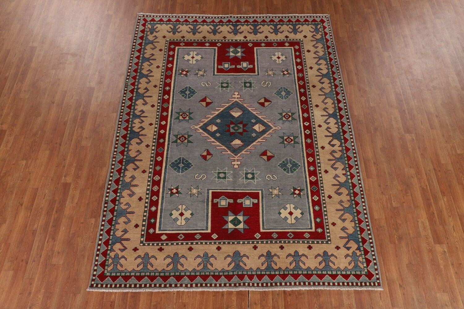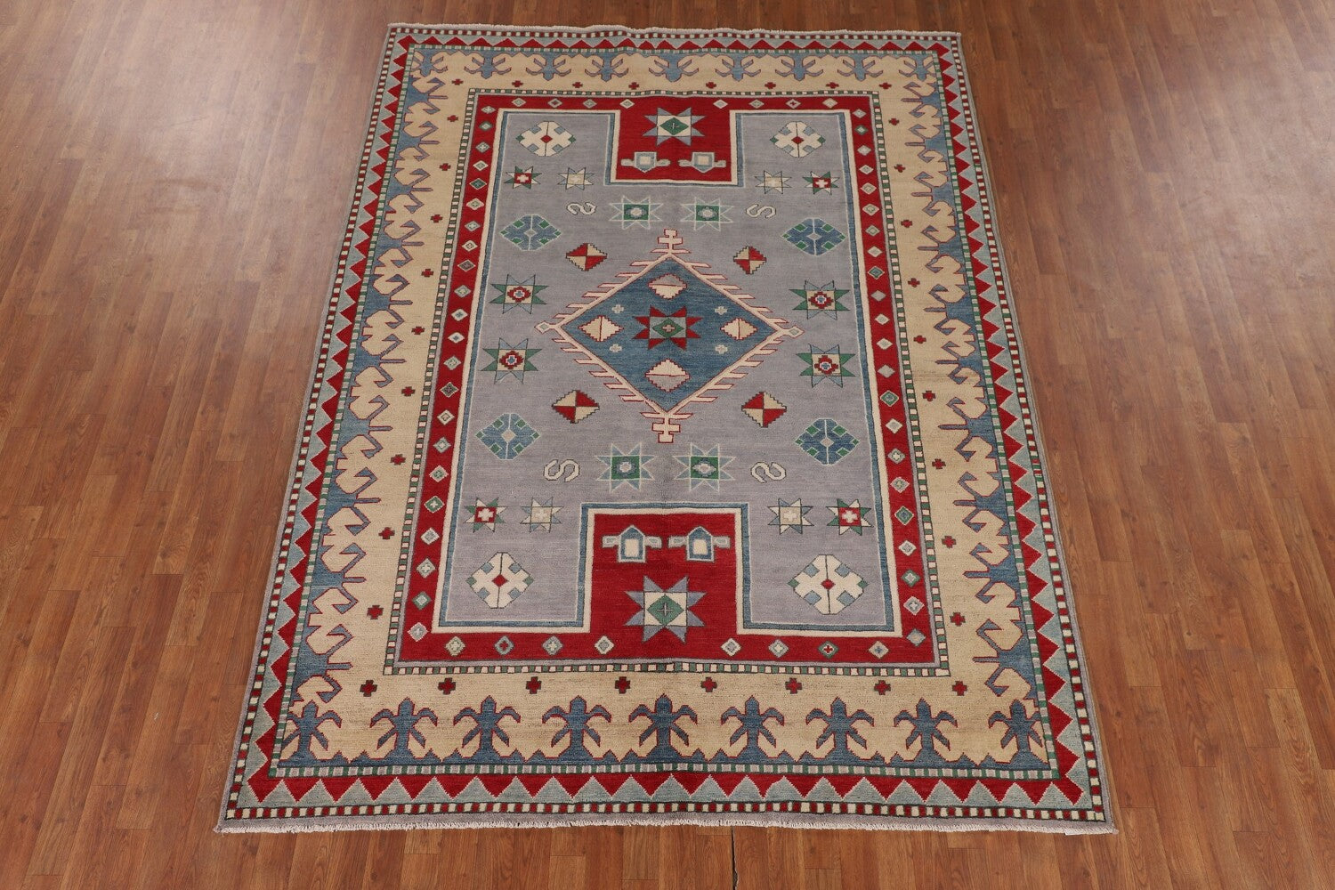 Gray Wool Kazak Oriental Area Rug 7x9
