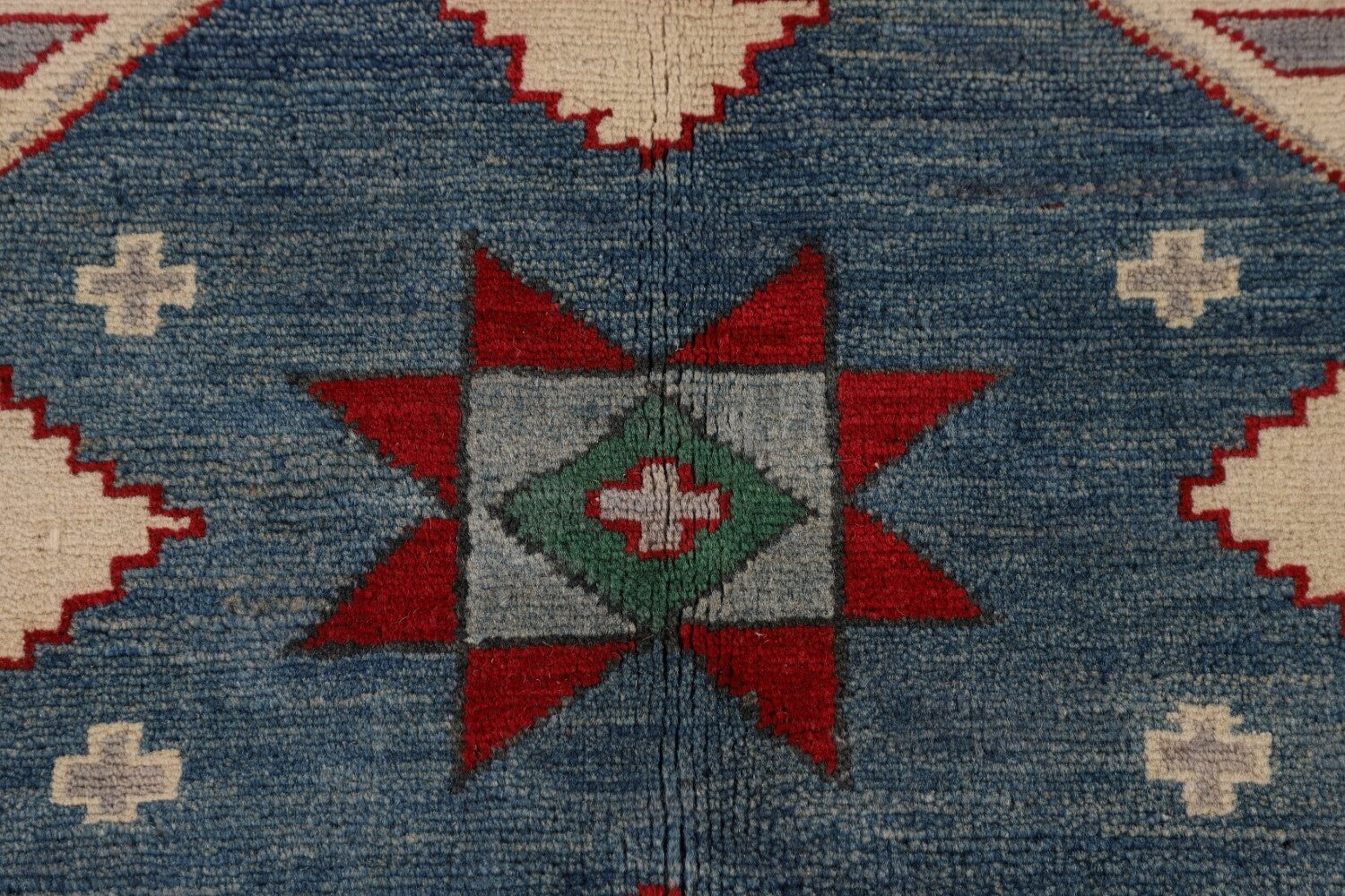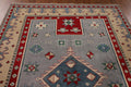 A Beautiful Genuine Pakistan Kazak rug is Hand Knotted by skillful weavers in Pakistan with 100% Wool Material. This rug is in New, First Quality condition. dimensions are 9' 3'' X 6' 11'' in foot and 282 X 211 in centimeter. the primary color is Greys & Charcoal.