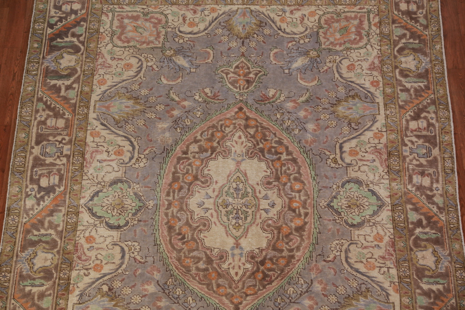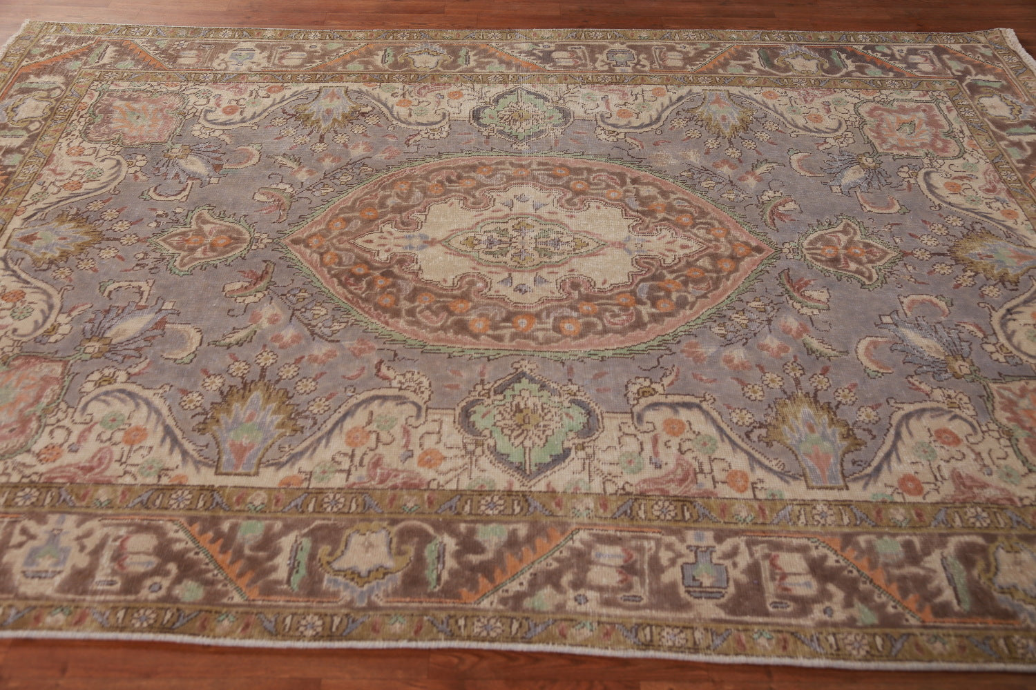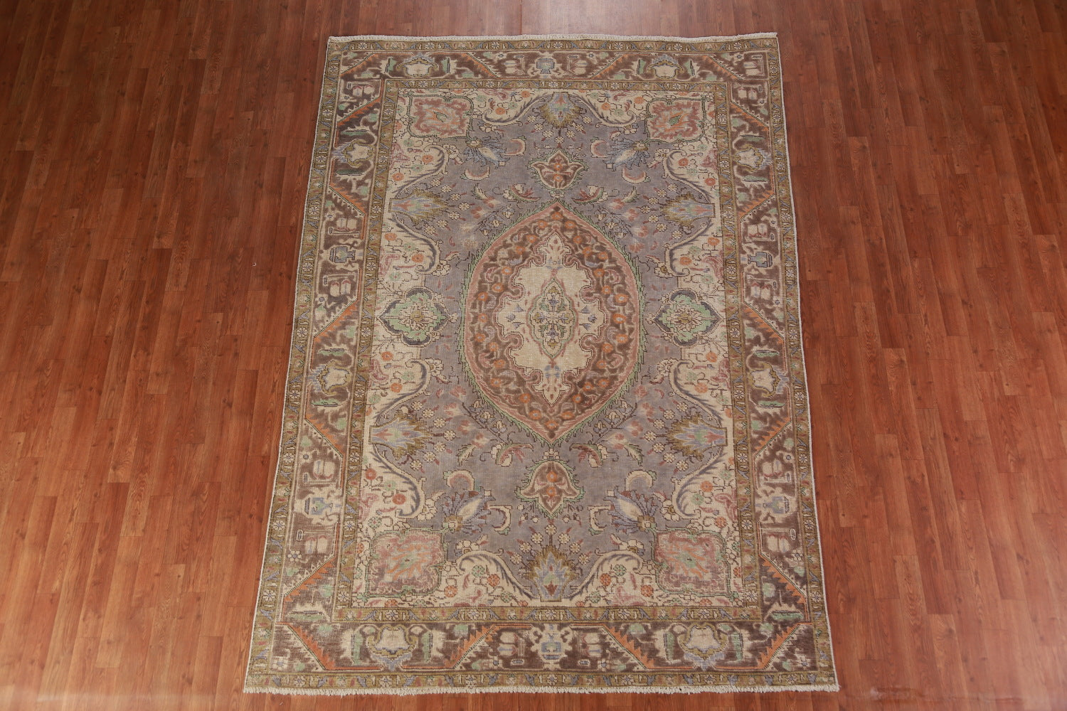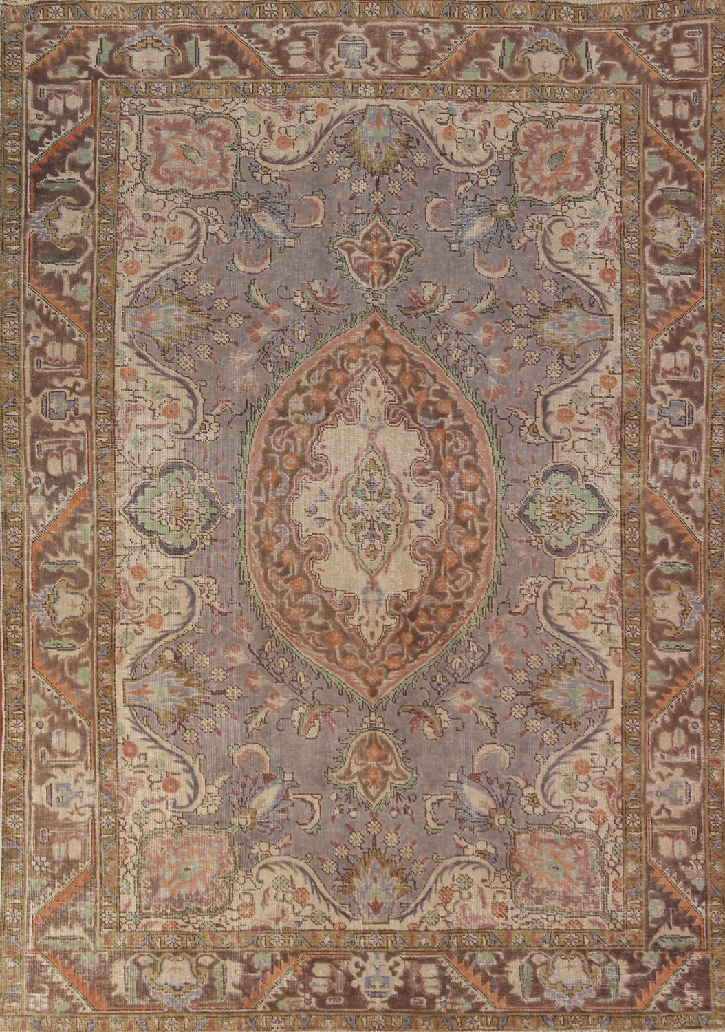 Gray Wool Medallion Tabriz Persian Area Rug 7x9