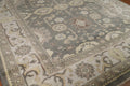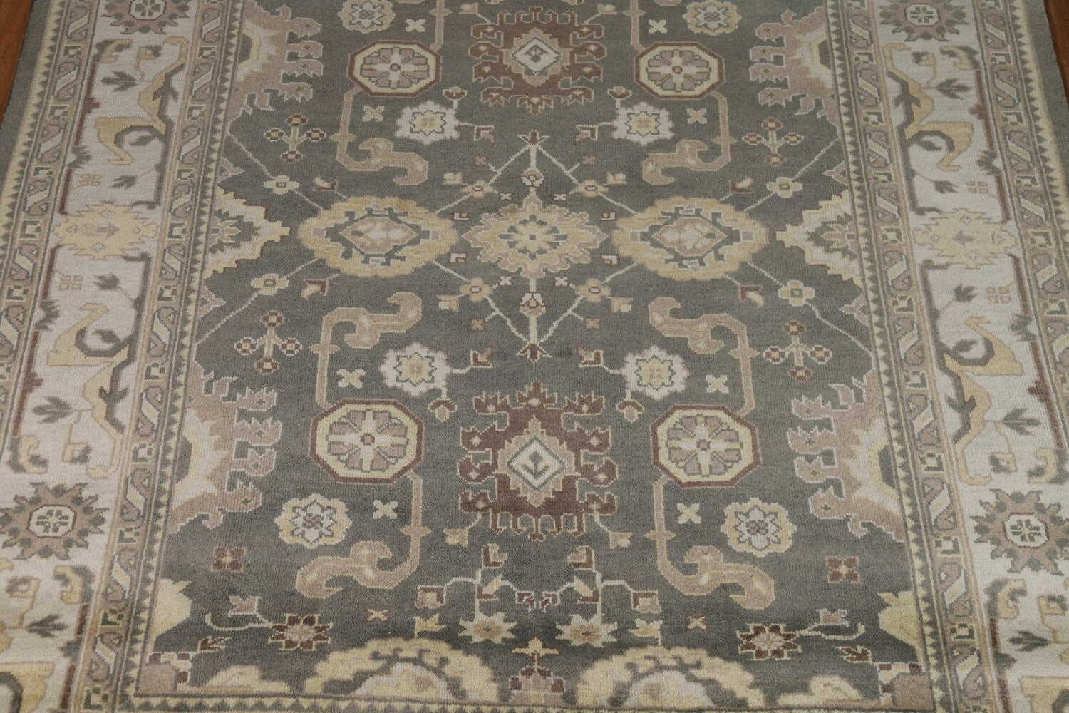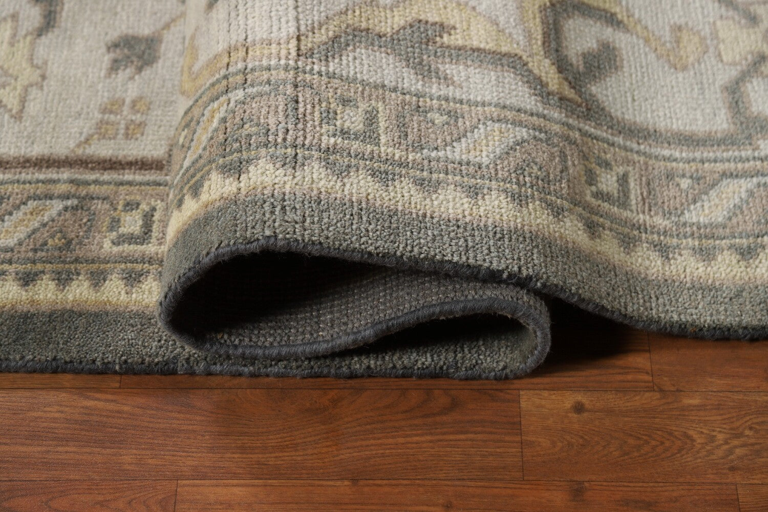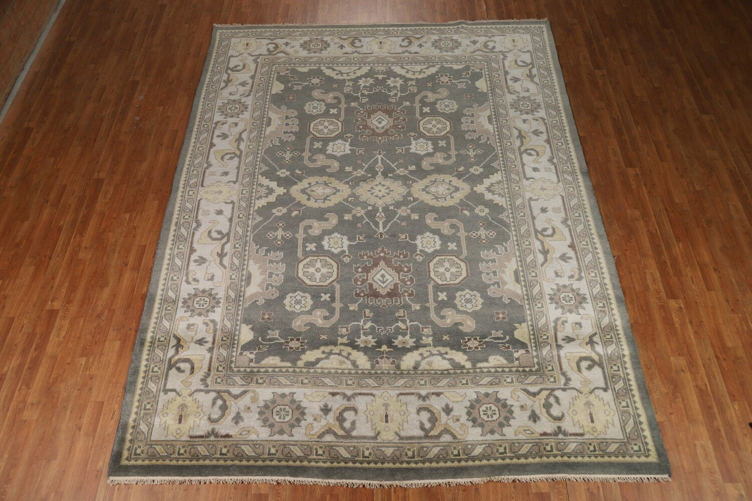 A Beautiful Genuine India Oushak rug is Hand Knotted by skillful weavers in India with 100% Wool Material. This rug is in New, First Quality condition. dimensions are 11' 8'' X 9' 0'' in foot and 356 X 274 in centimeter. the primary color is Greys & Charcoal.