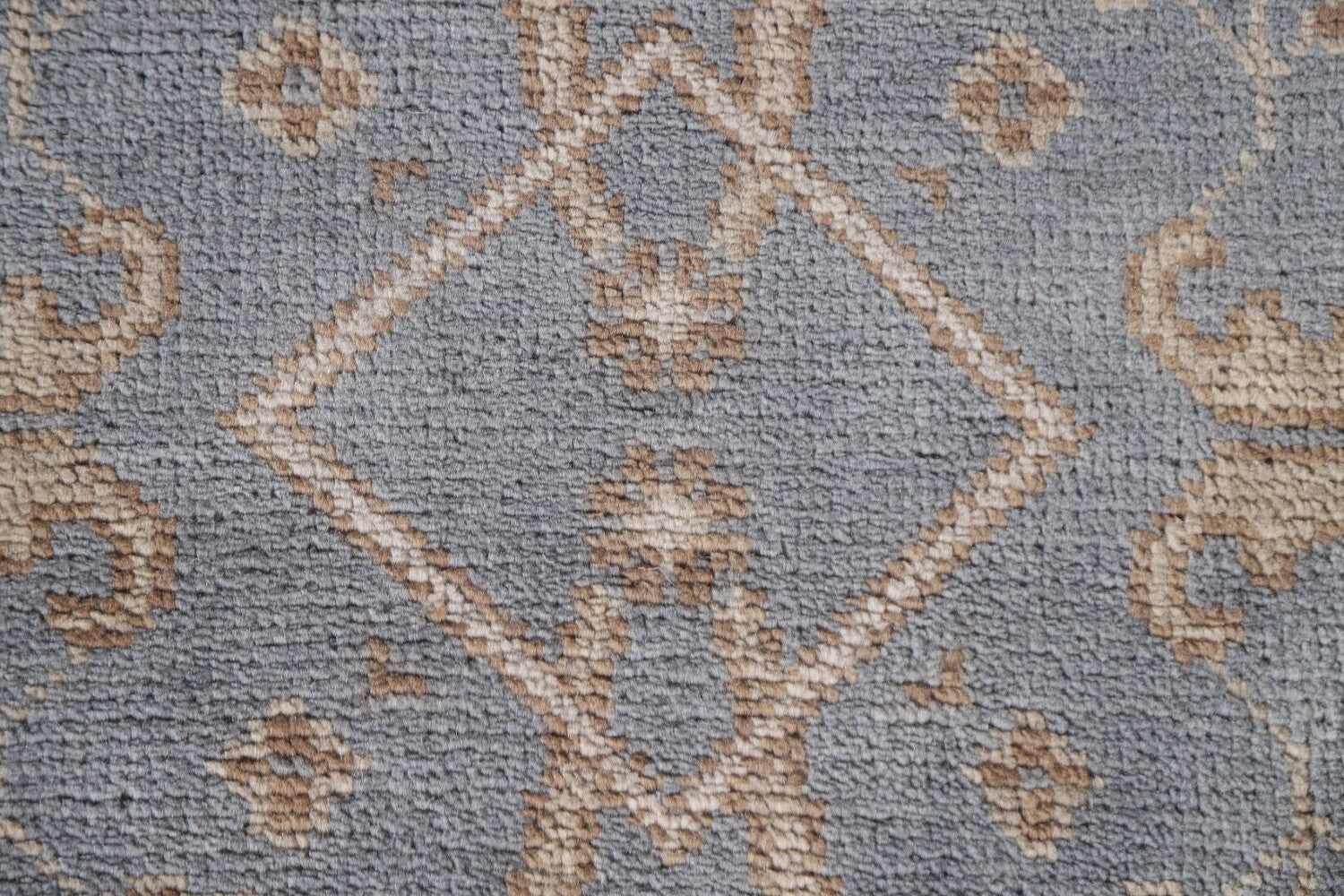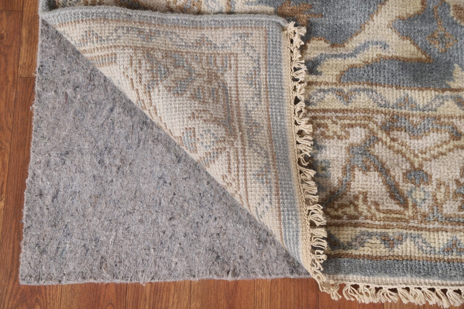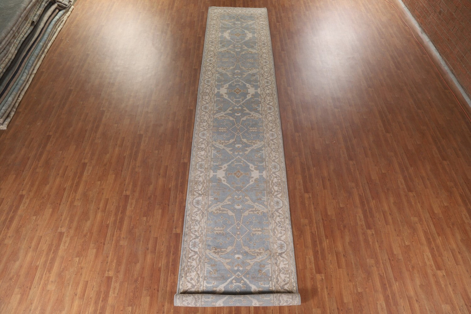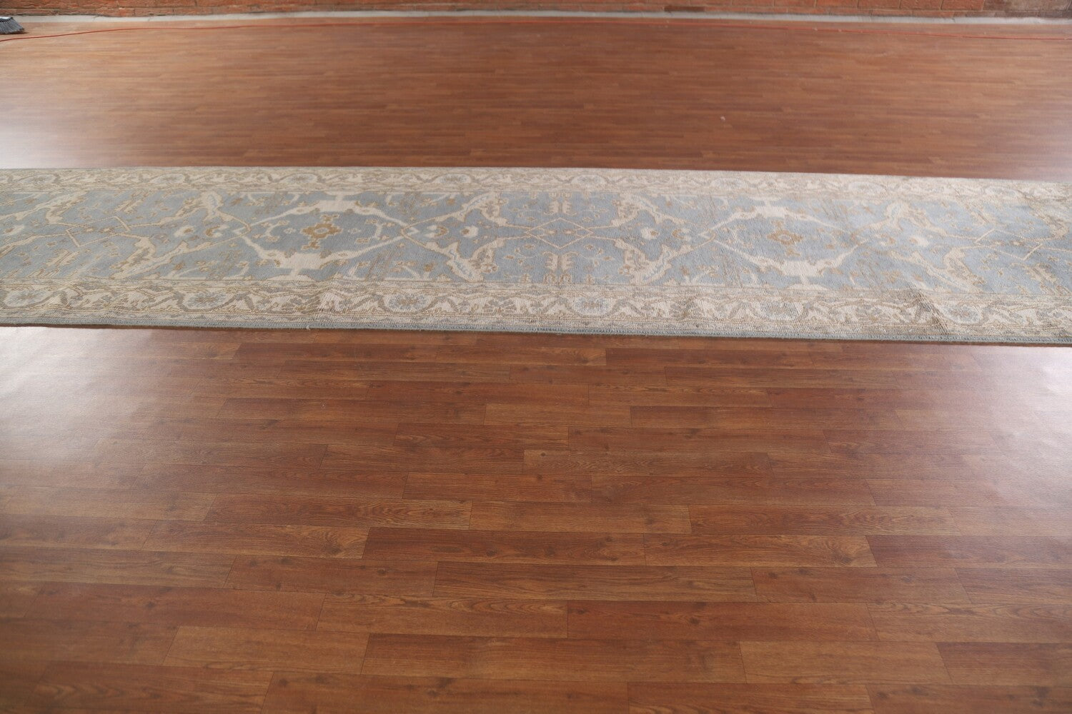 A Beautiful Genuine India Oushak rug is Hand Knotted by skillful weavers in India with 100% Wool Material. This rug is in New, First Quality condition. dimensions are 21' 7'' X 4' 0'' in foot and 658 X 122 in centimeter. the primary color is Navy Blue & Blues.