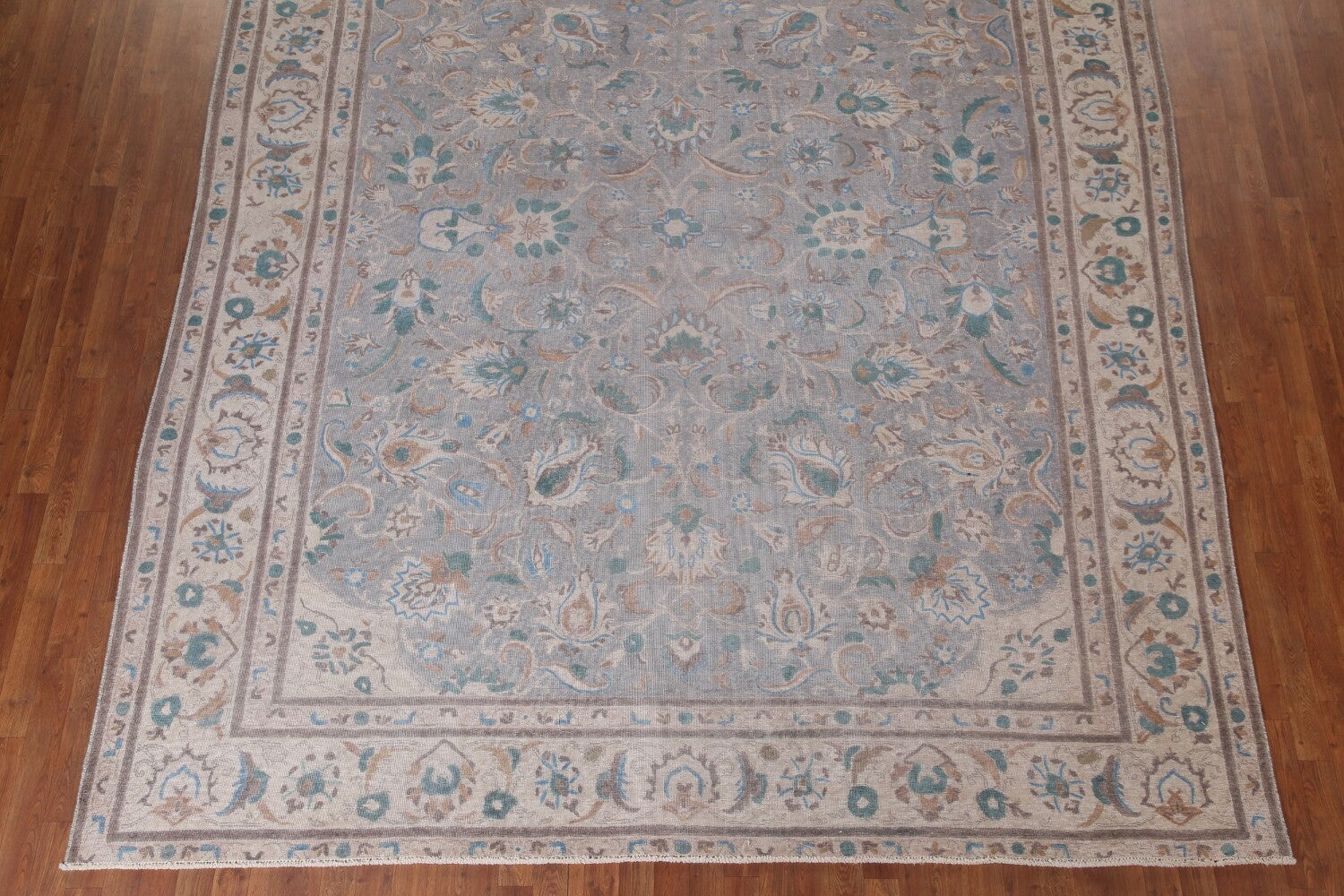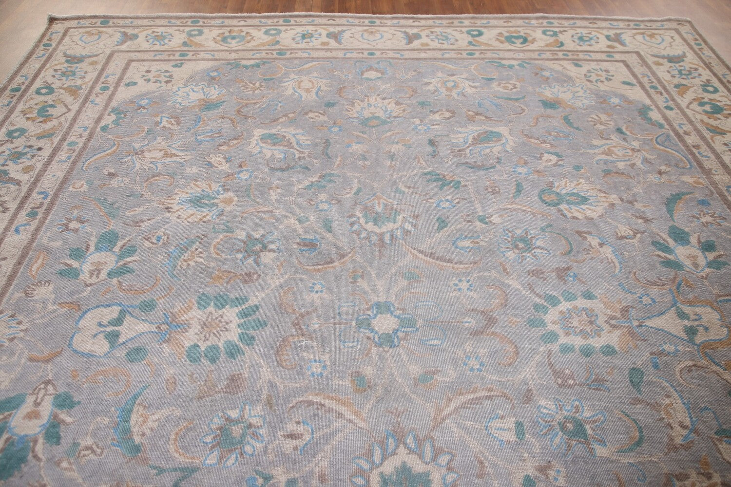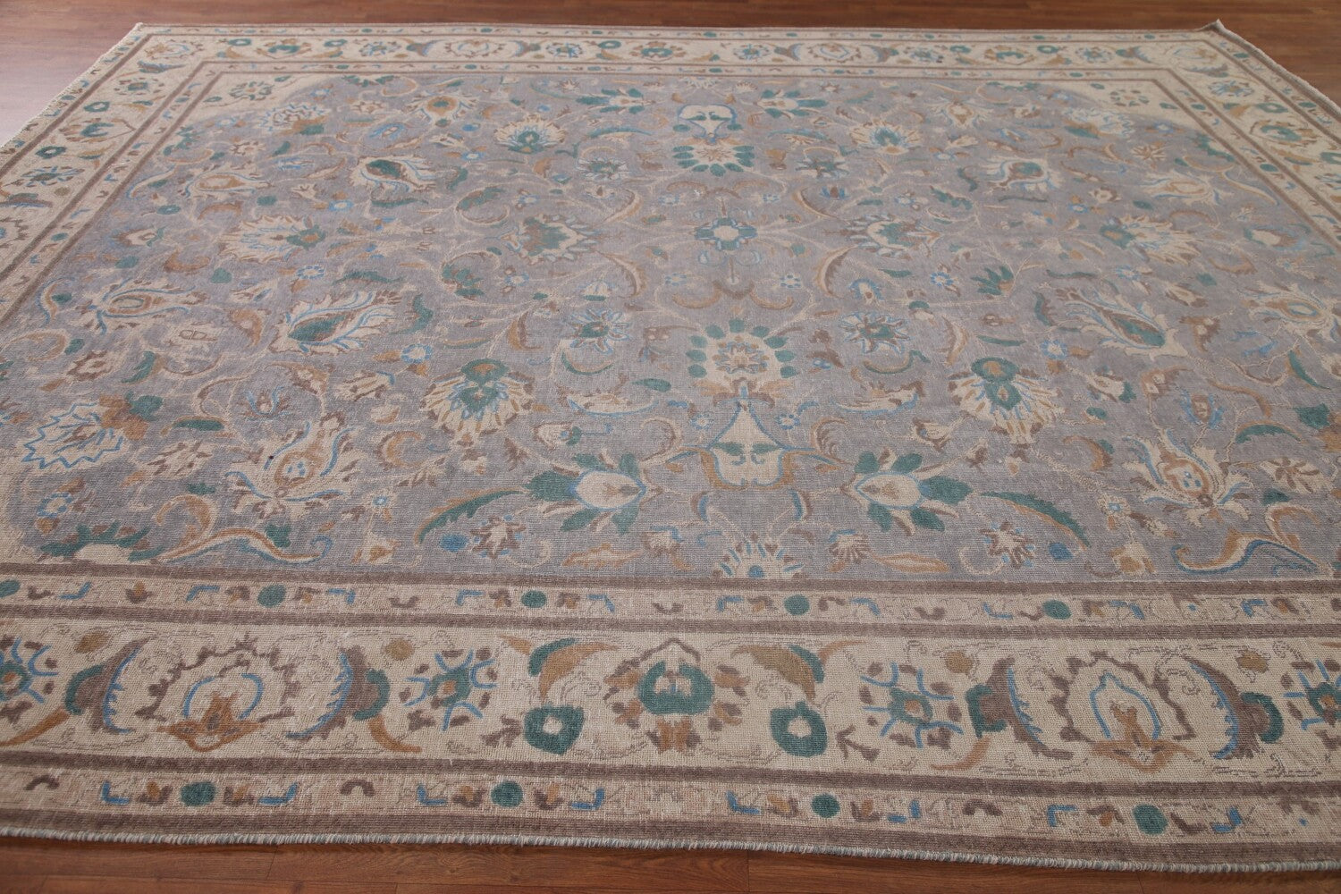 A Beautiful Genuine Persia ( Persia ) Tabriz rug is Hand Knotted by skillful weavers in Persia ( Persia ) with 100% Wool Material. This rug is in Very Good (Low Pile) condition. dimensions are 11' 11'' X 9' 8'' in foot and 363 X 295 in centimeter. the primary color is Greys & Charcoal.