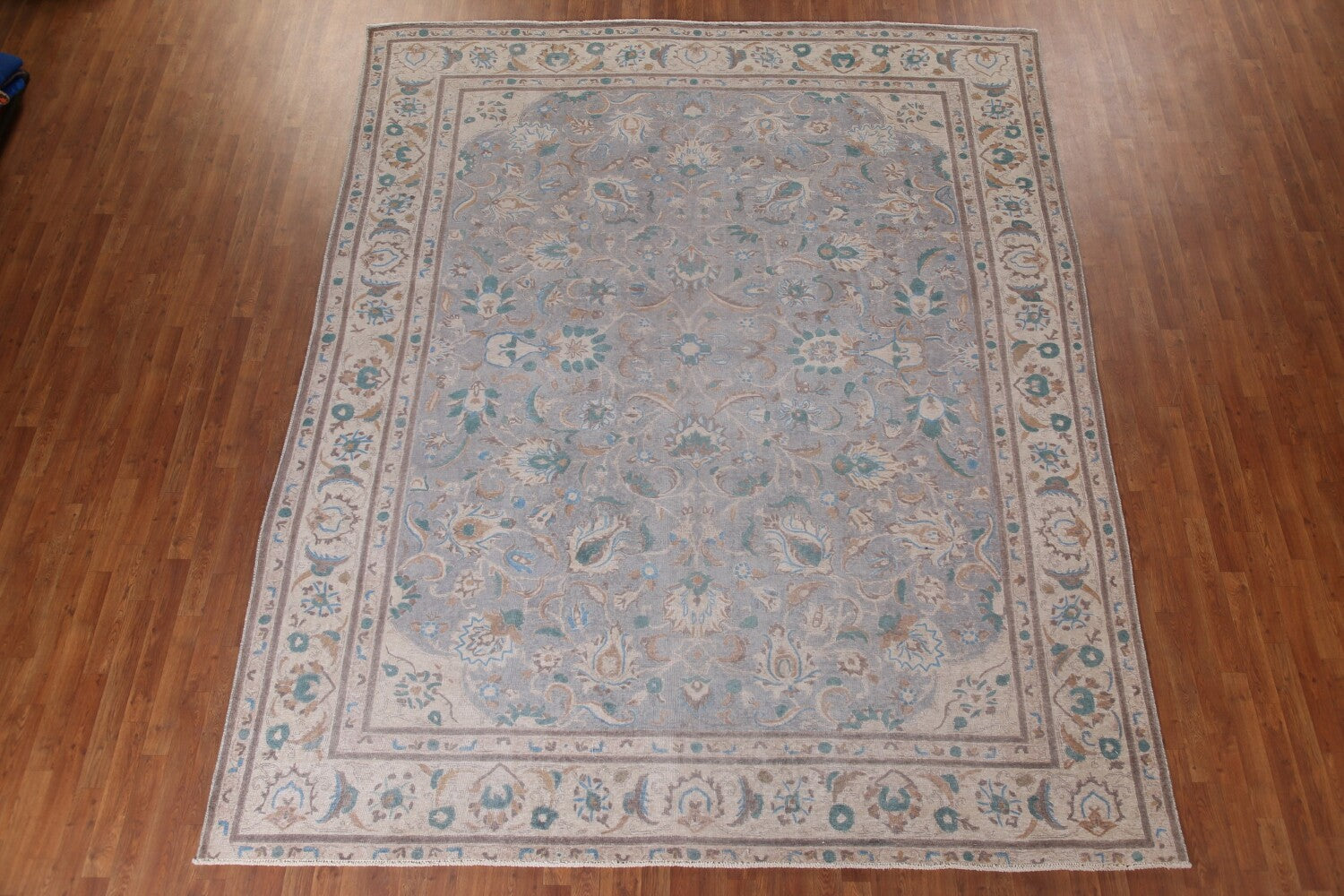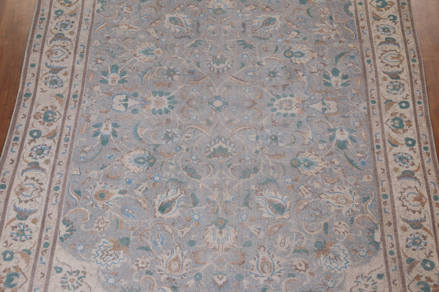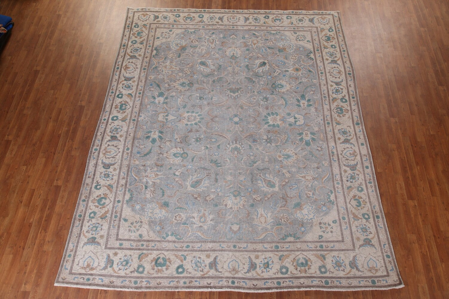 A Beautiful Genuine Persia ( Persia ) Tabriz rug is Hand Knotted by skillful weavers in Persia ( Persia ) with 100% Wool Material. This rug is in Very Good (Low Pile) condition. dimensions are 11' 11'' X 9' 8'' in foot and 363 X 295 in centimeter. the primary color is Greys & Charcoal.