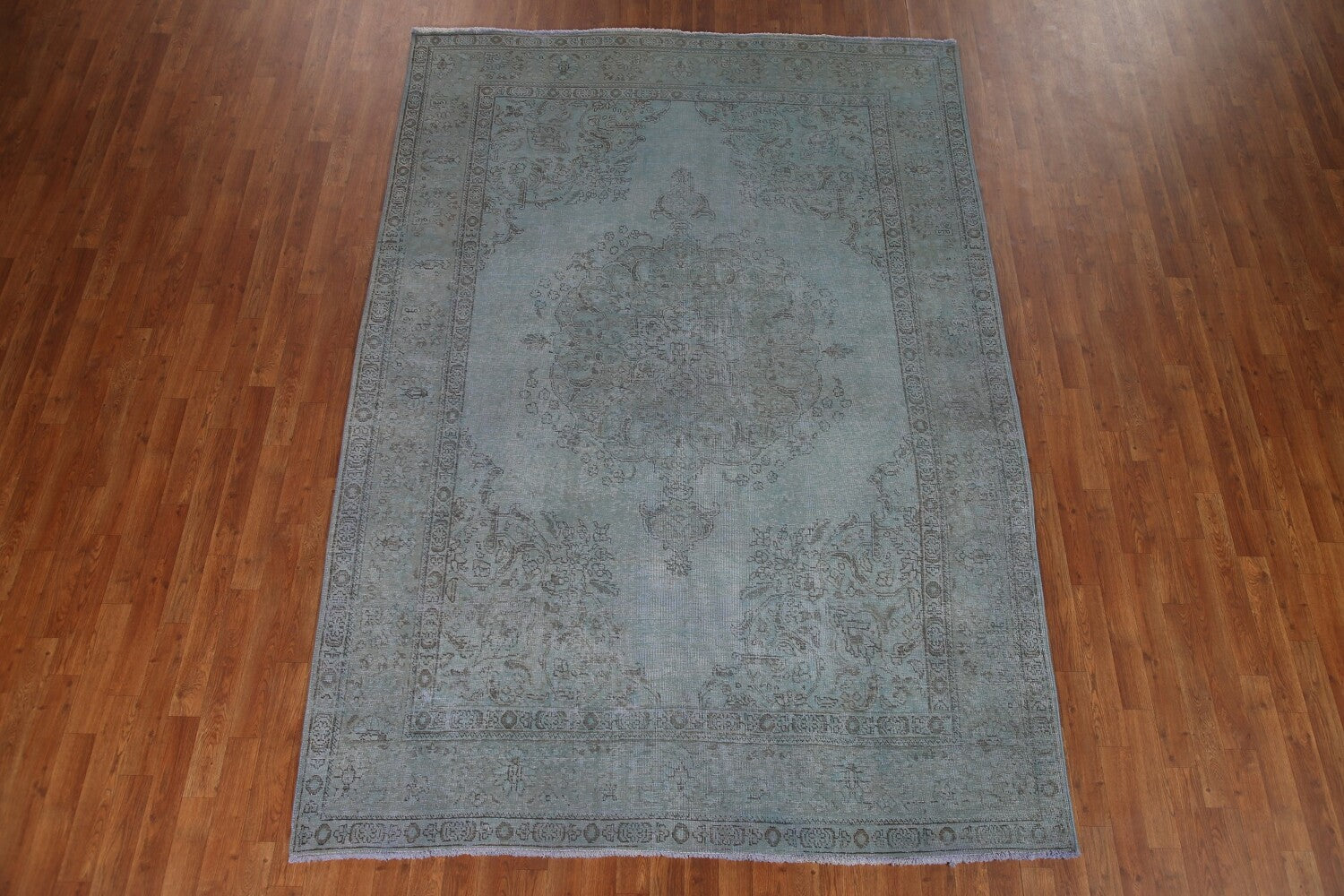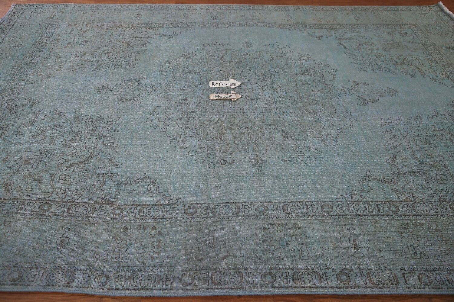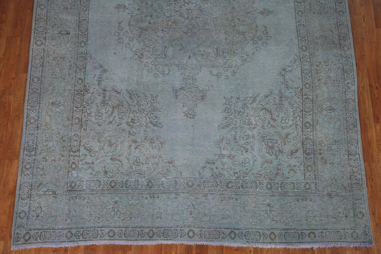 A Beautiful Genuine Persia ( Persia ) Tabriz rug is Hand Knotted by skillful weavers in Persia ( Persia ) with 100% Wool Material. This rug is in Very Good (Low Pile) condition. dimensions are 9' 6'' X 6' 8'' in foot and 290 X 203 in centimeter. the primary color is Green.