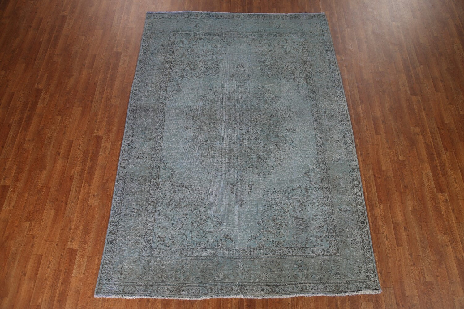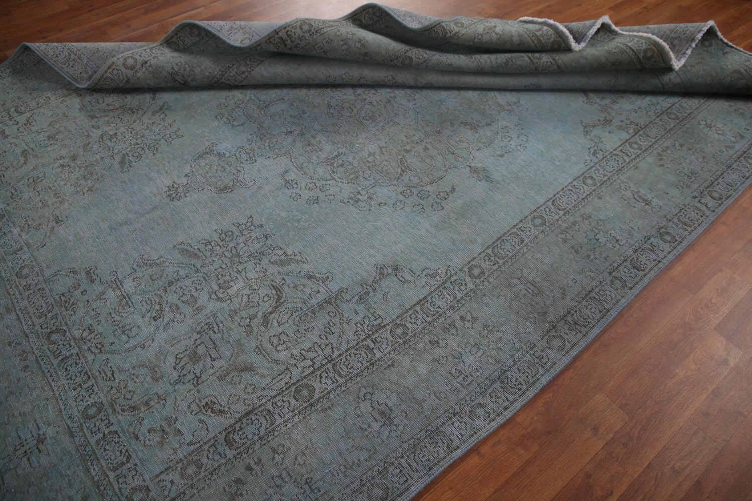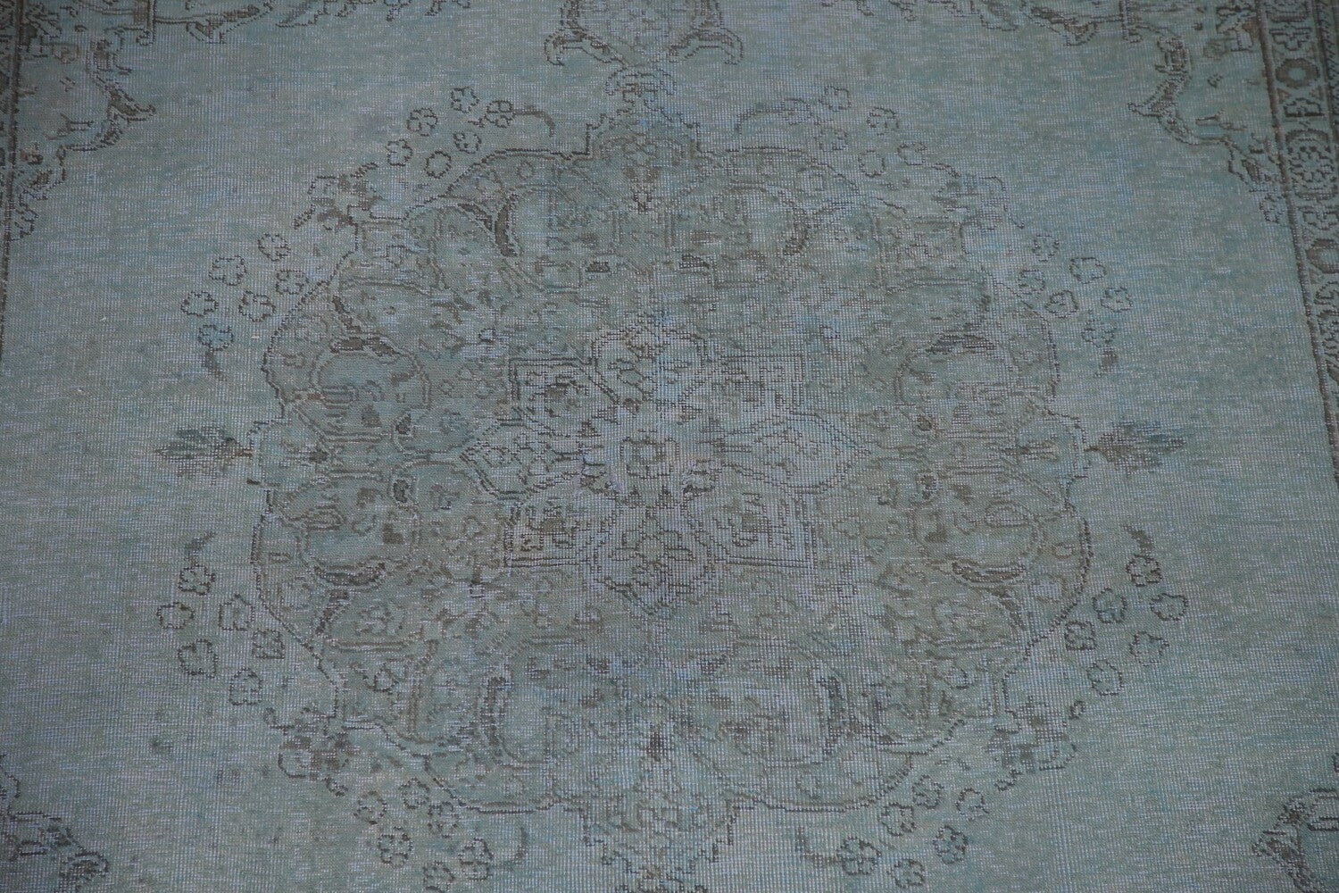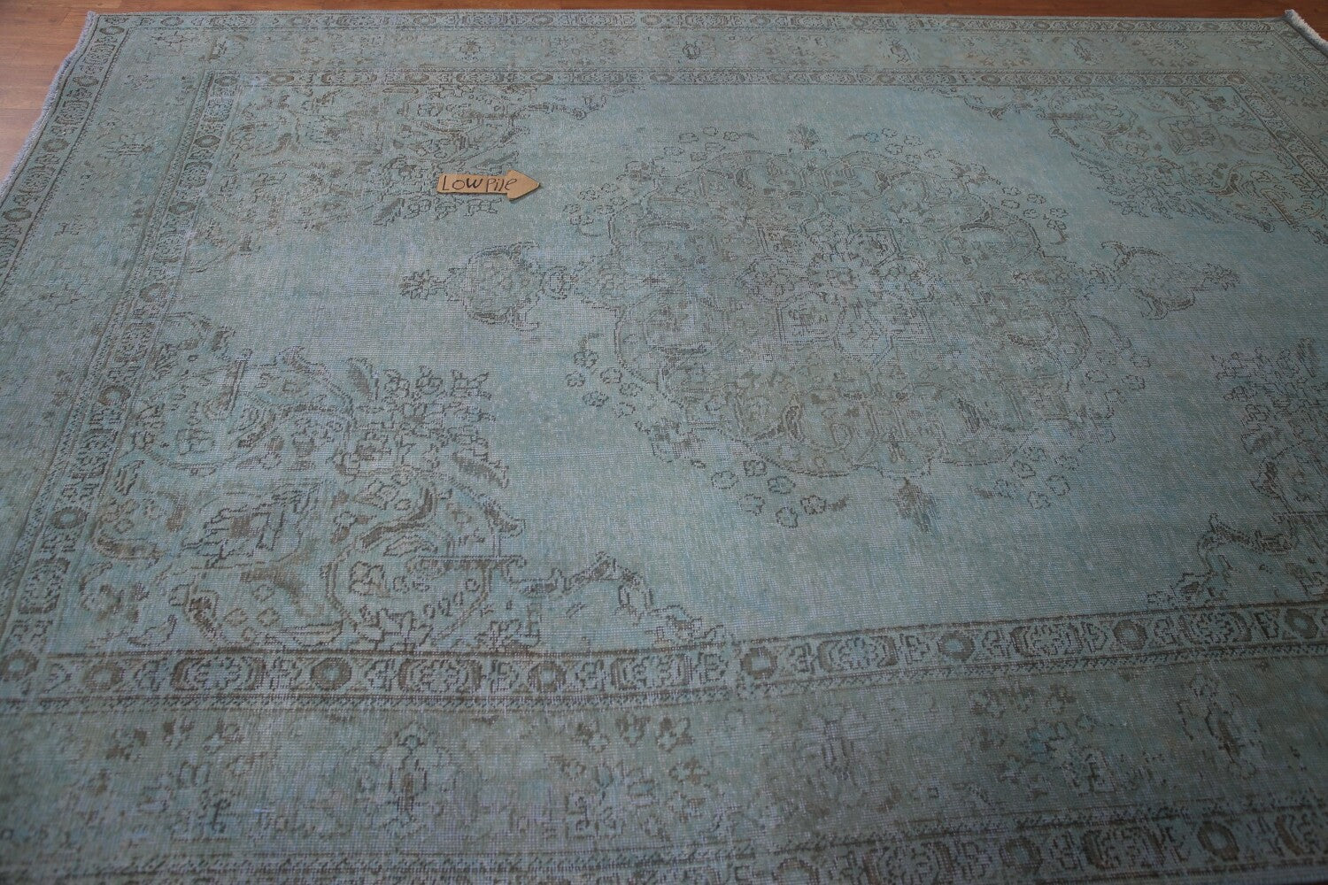 A Beautiful Genuine Persia ( Persia ) Tabriz rug is Hand Knotted by skillful weavers in Persia ( Persia ) with 100% Wool Material. This rug is in Very Good (Low Pile) condition. dimensions are 9' 6'' X 6' 8'' in foot and 290 X 203 in centimeter. the primary color is Green.