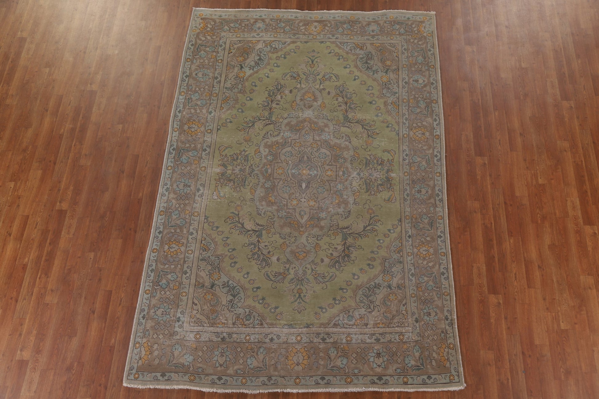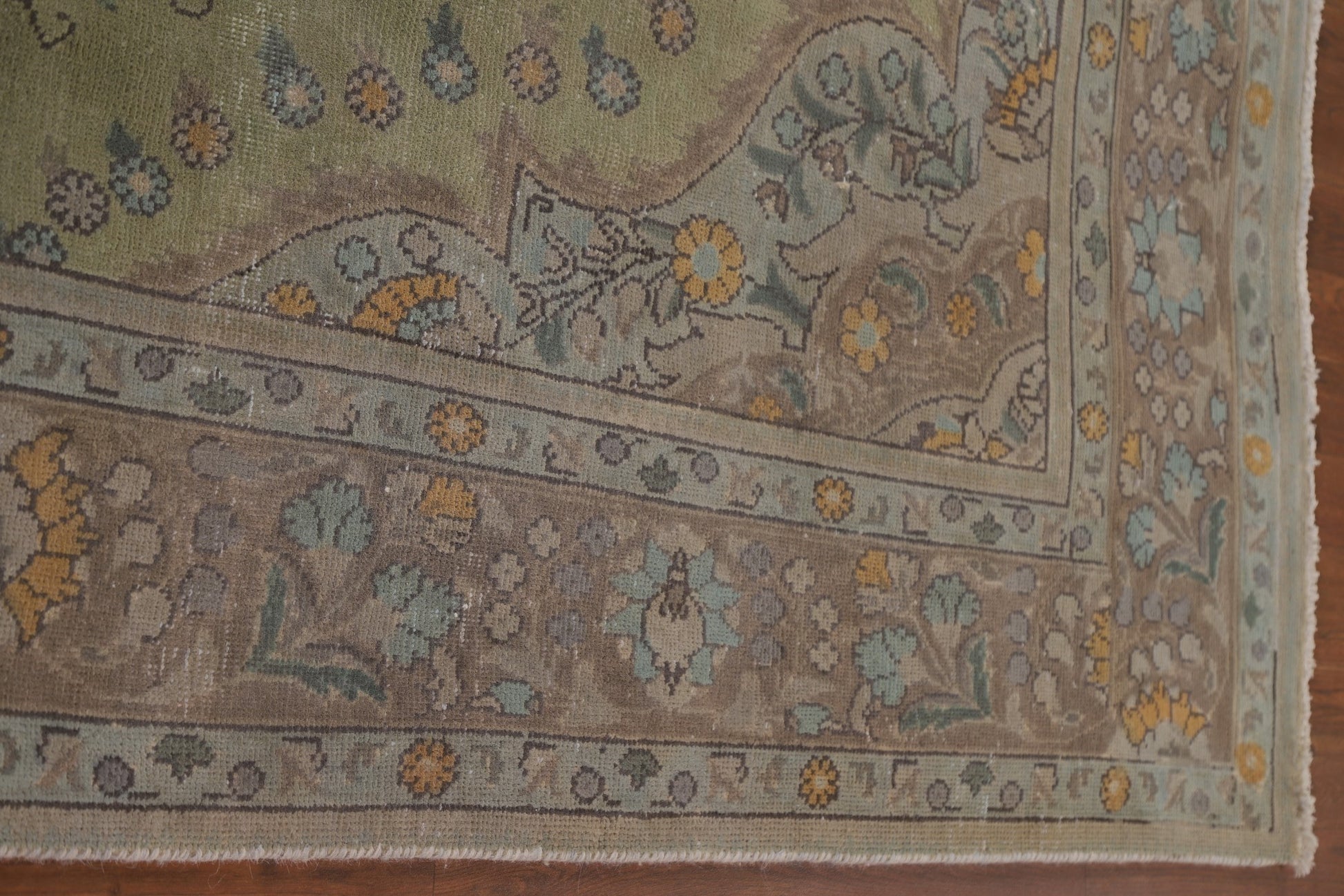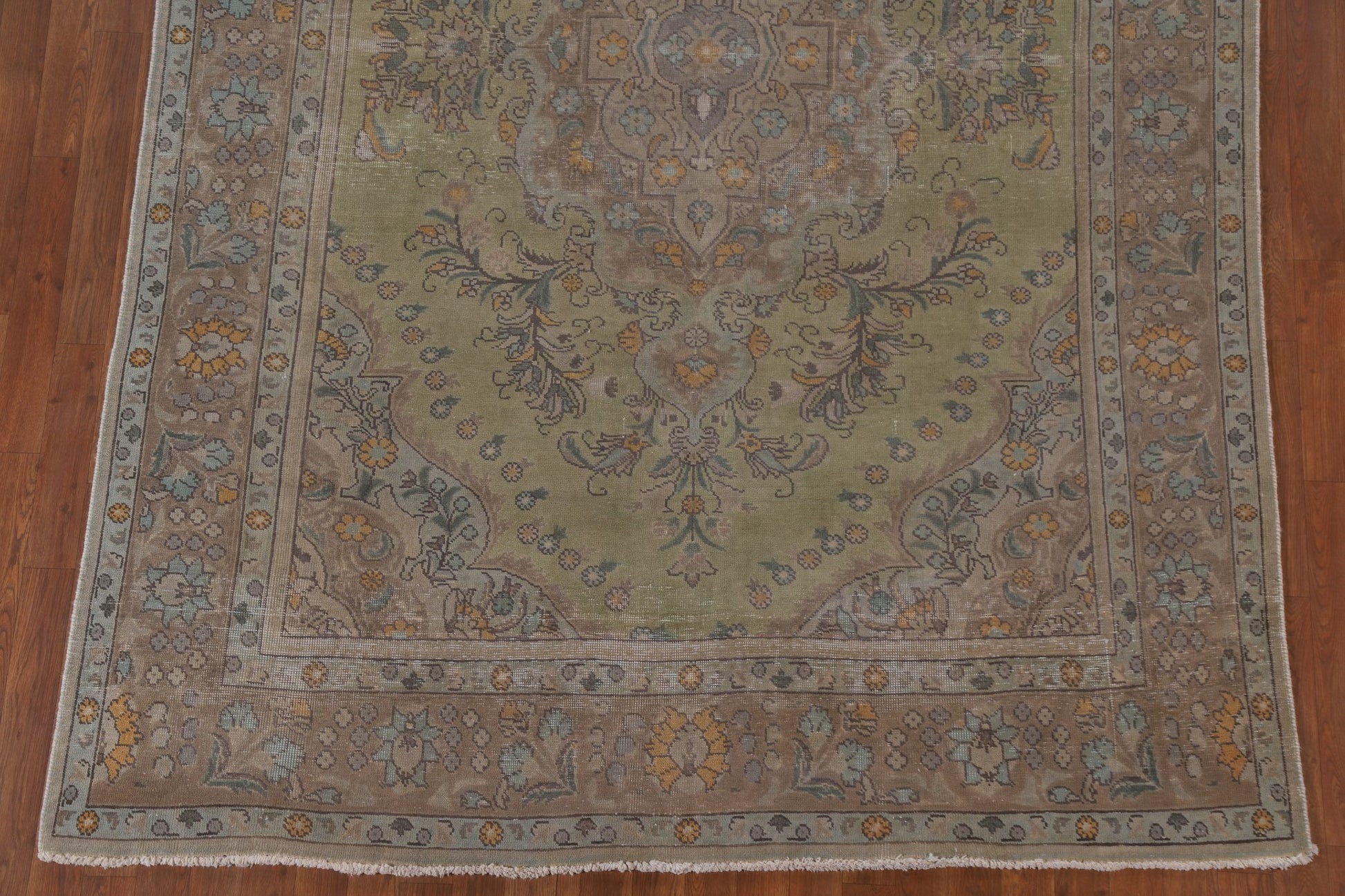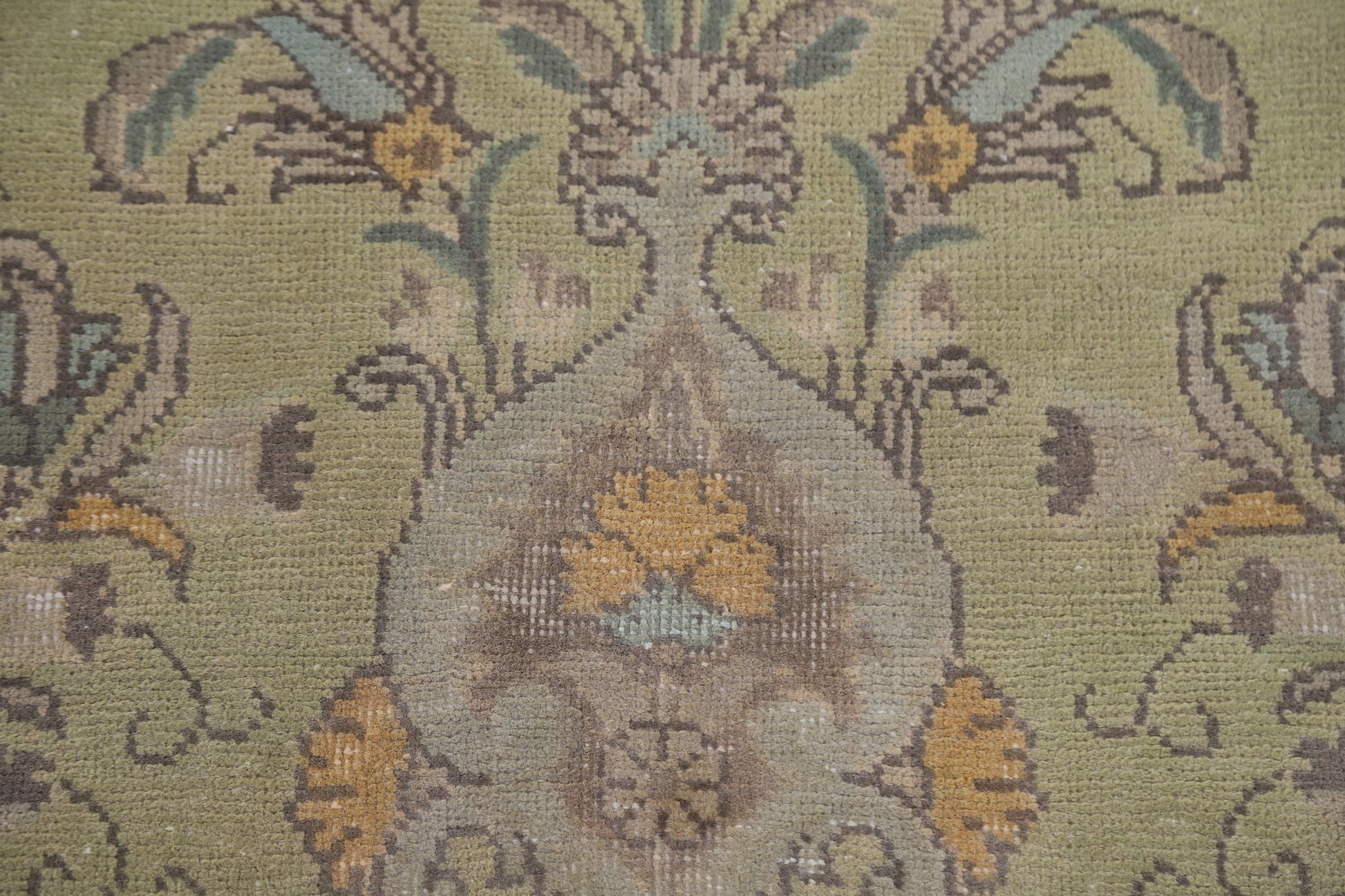 A Beautiful Genuine Persia ( Persia ) Tabriz rug is Hand Knotted by skillful weavers in Persia ( Persia ) with 100% Wool Material. This rug is in Very Good (Evenly Low Pile) condition. dimensions are 9' 8'' X 6' 6'' in foot and 295 X 198 in centimeter. the primary color is Green.