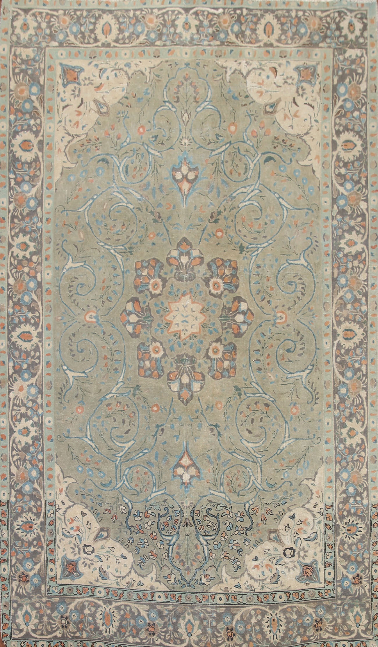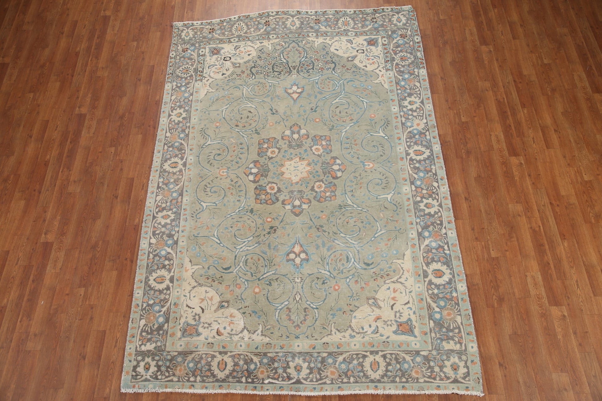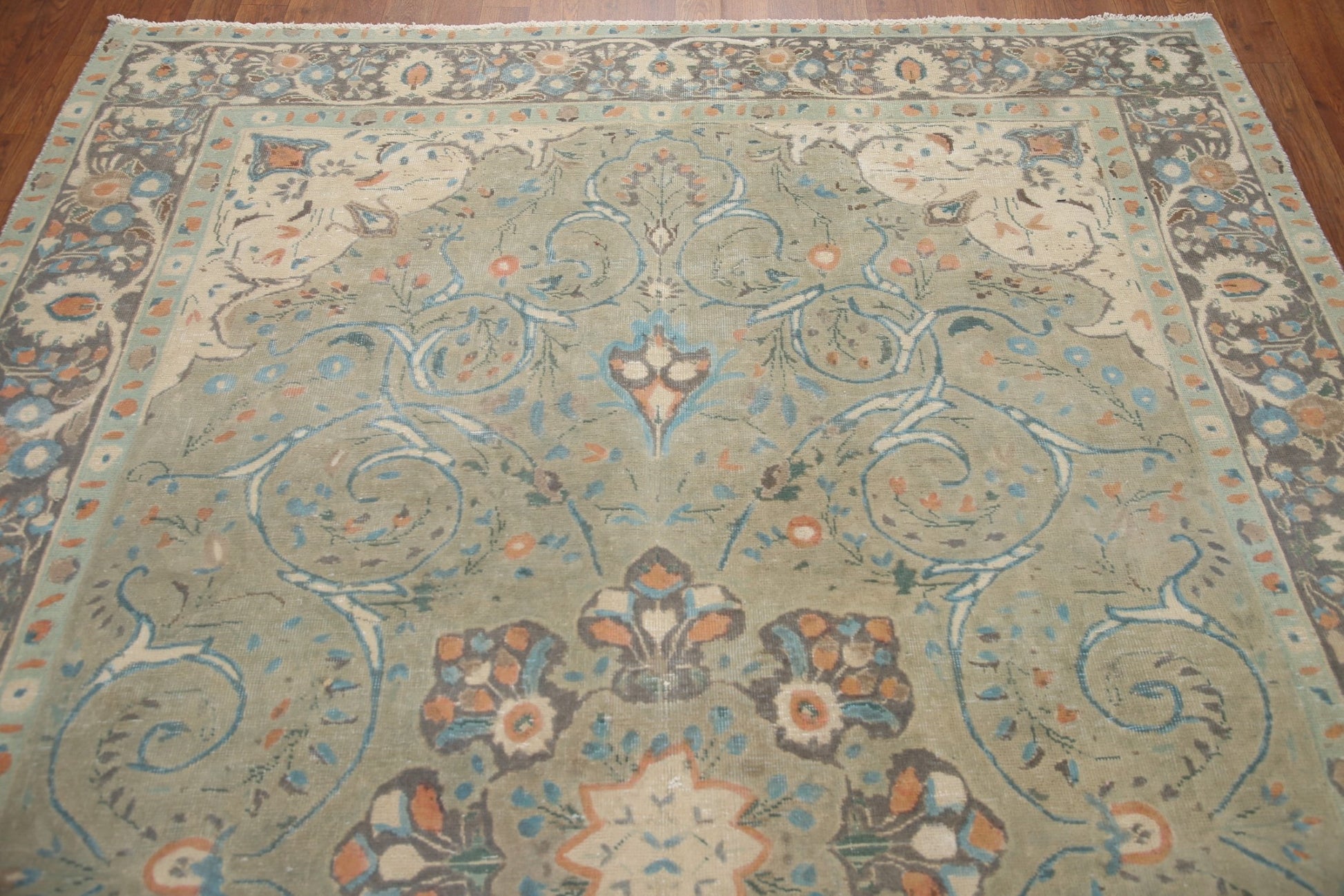 A Beautiful Genuine Persia ( Persia ) Tabriz rug is Hand Knotted by skillful weavers in Persia ( Persia ) with 100% Wool Material. This rug is in Very Good (Evenly Low Pile) condition. dimensions are 9' 5'' X 6' 2'' in foot and 287 X 188 in centimeter. the primary color is Green.