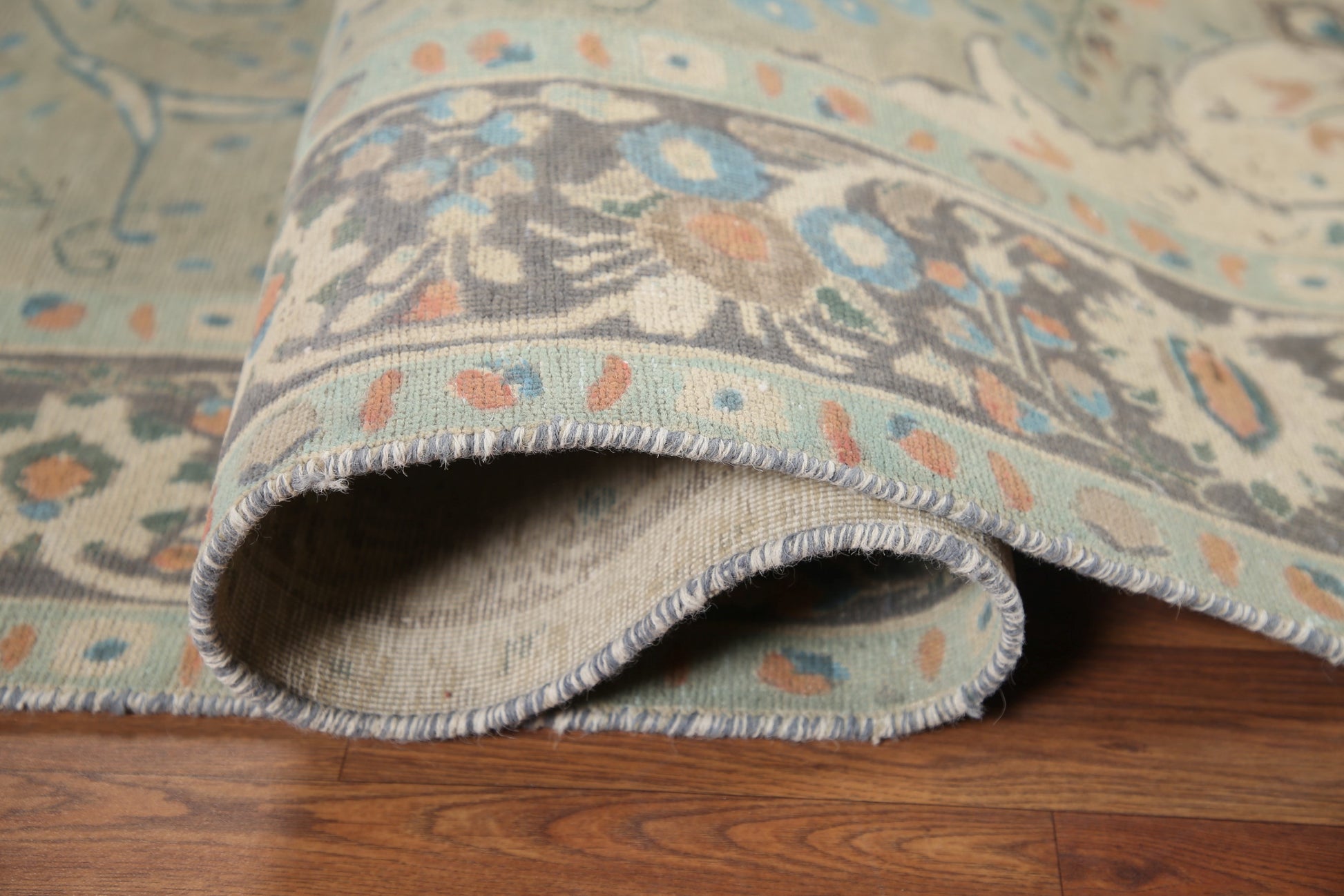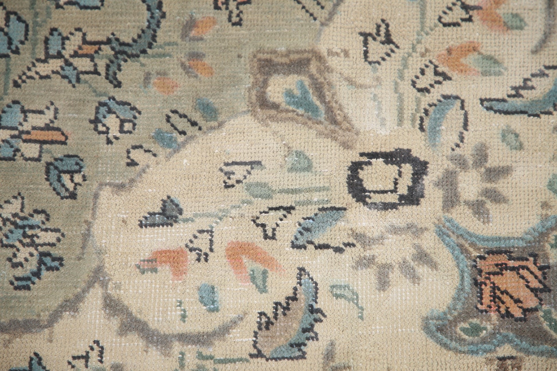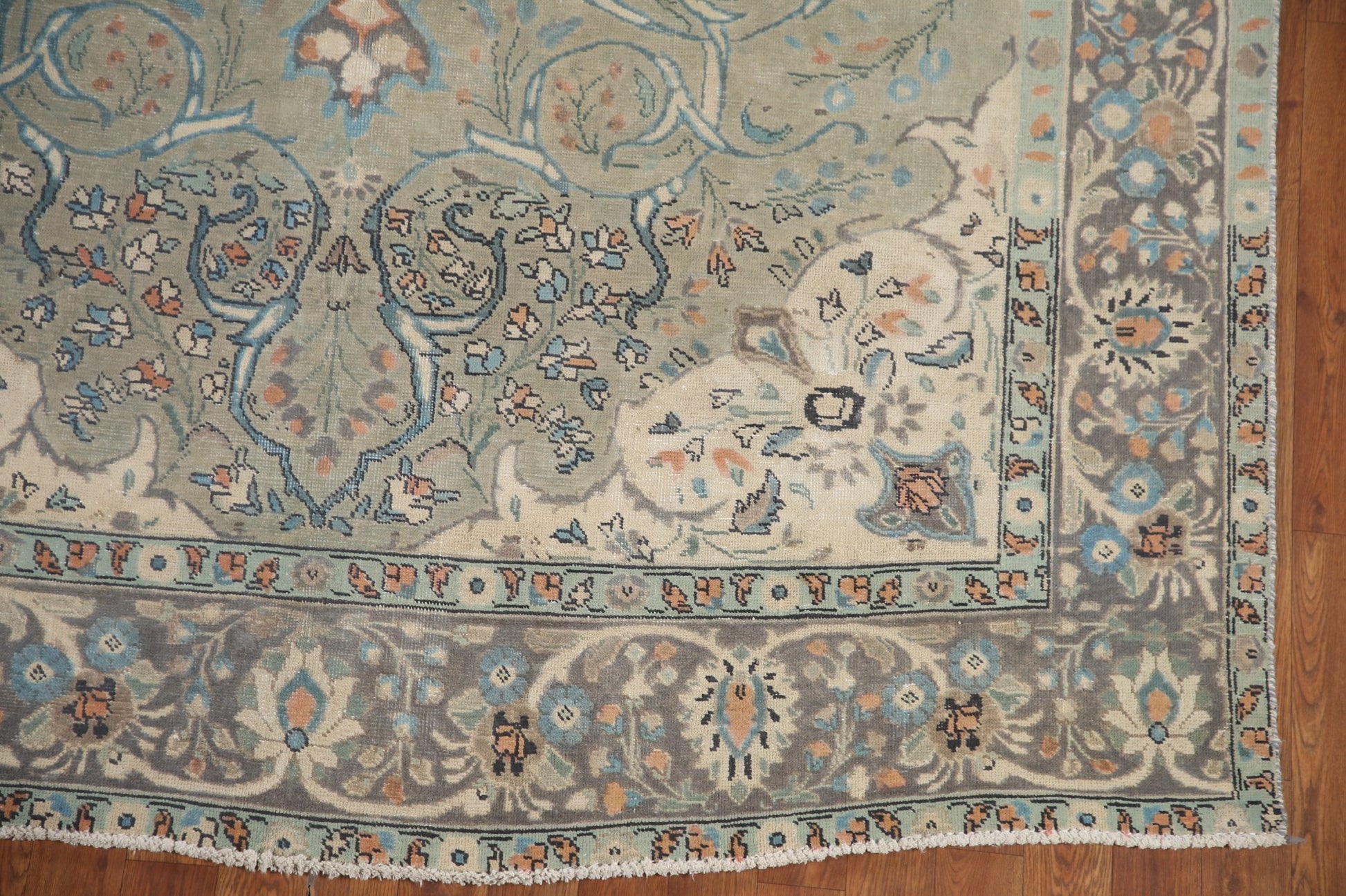 A Beautiful Genuine Persia ( Persia ) Tabriz rug is Hand Knotted by skillful weavers in Persia ( Persia ) with 100% Wool Material. This rug is in Very Good (Evenly Low Pile) condition. dimensions are 9' 5'' X 6' 2'' in foot and 287 X 188 in centimeter. the primary color is Green.